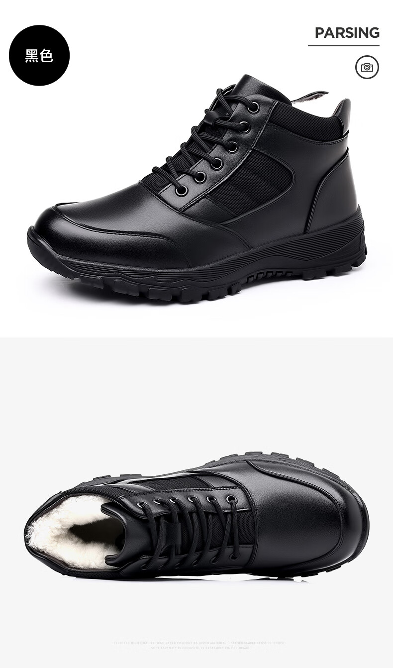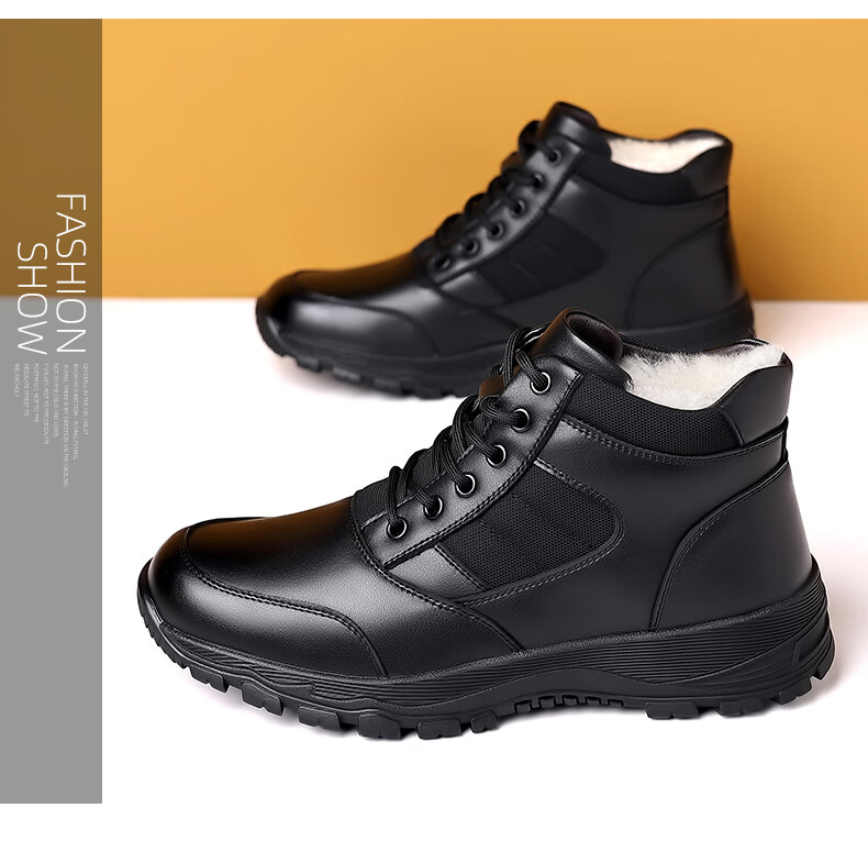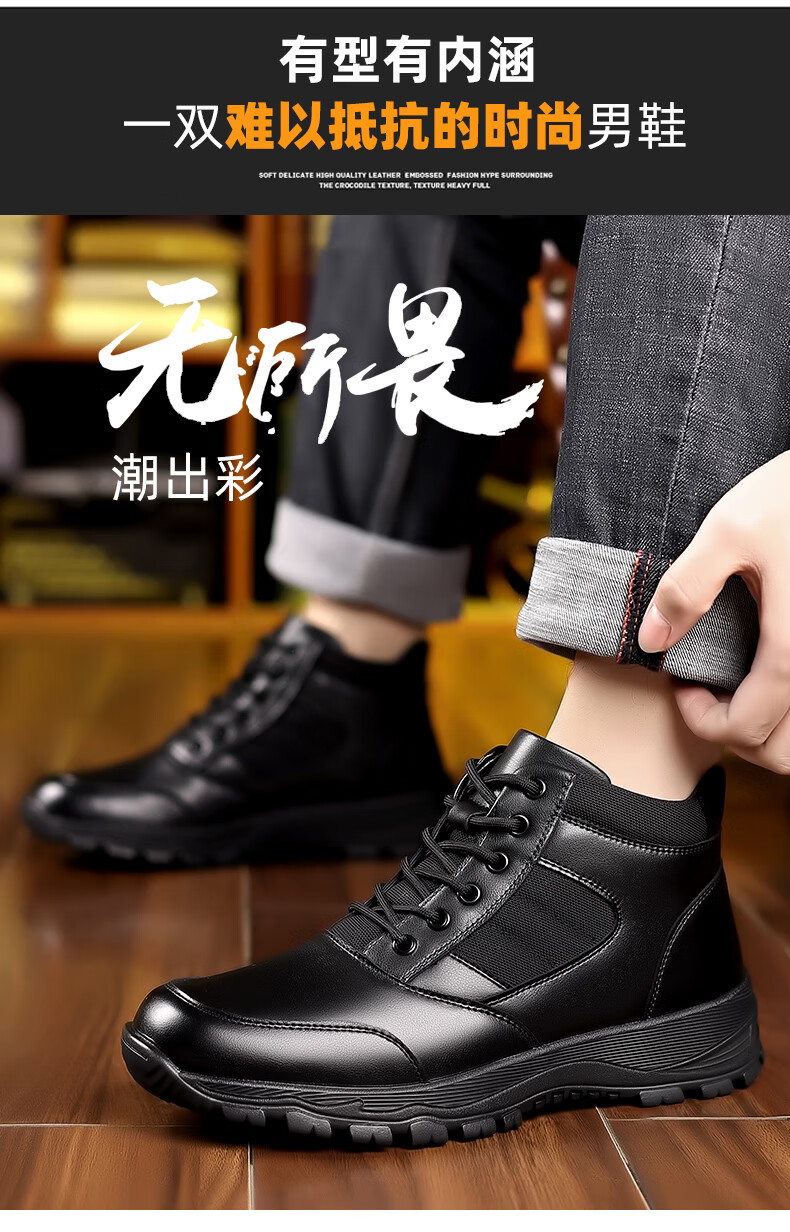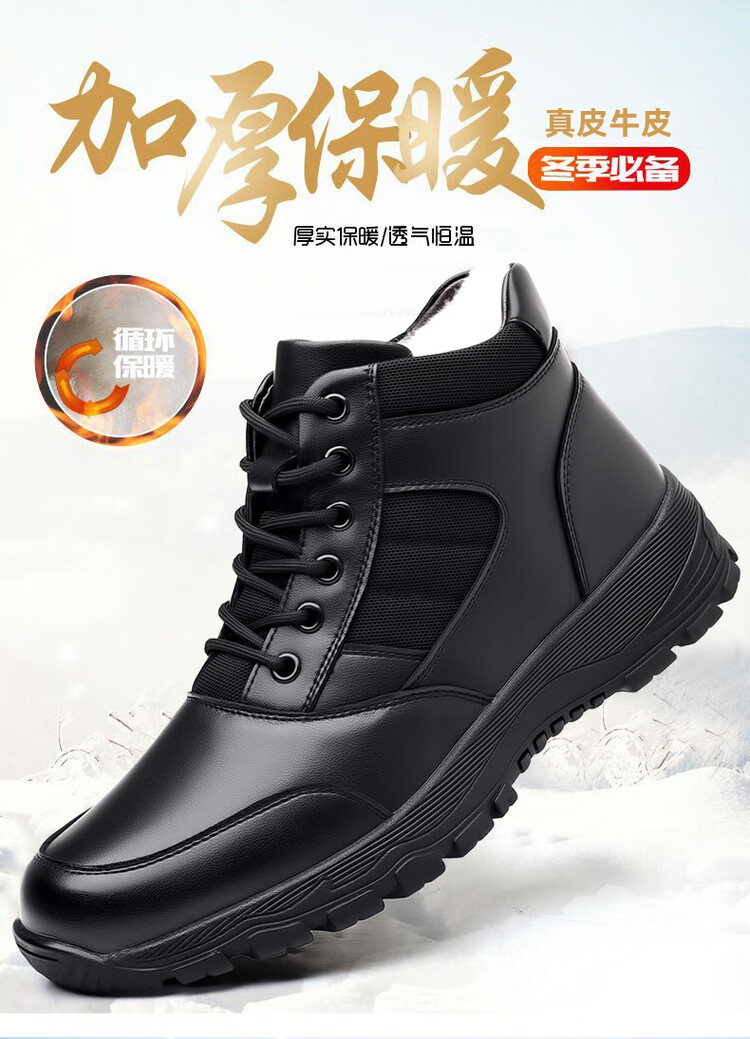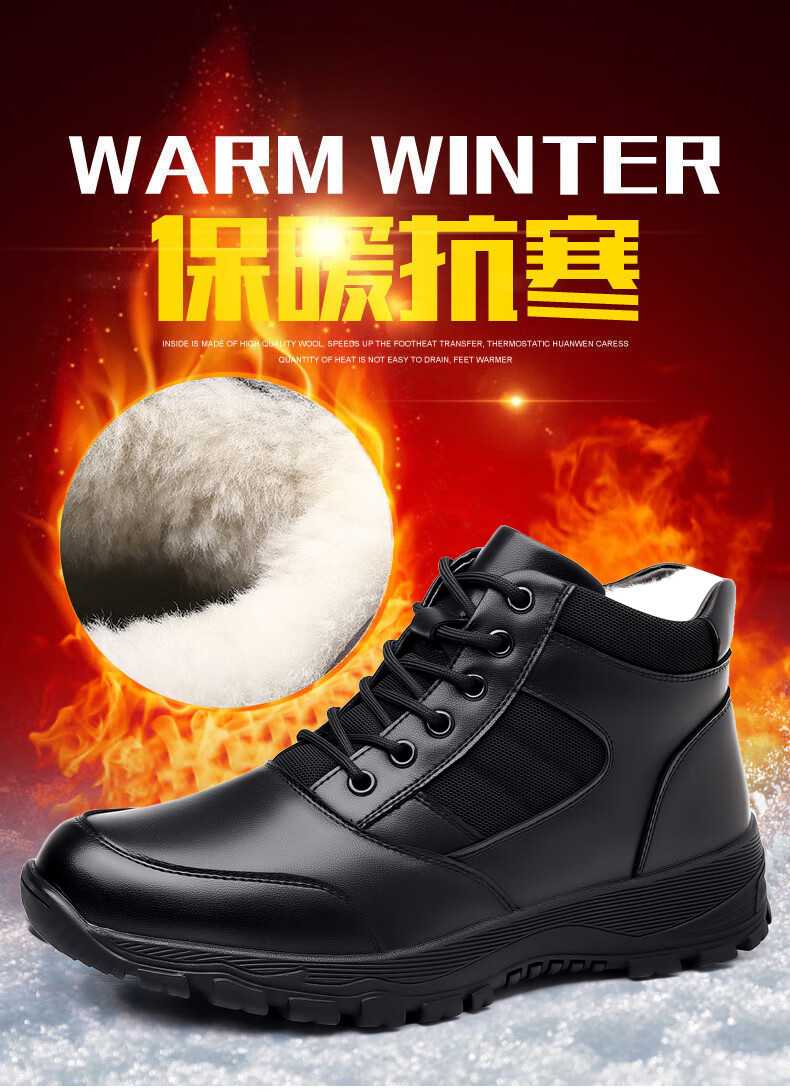 稻草人(MEXICAN)训练鞋执勤鞋工装鞋男冬季新款高帮加绒棉鞋真皮防滑雪地靴马丁靴 CC723黑色羊毛款 40