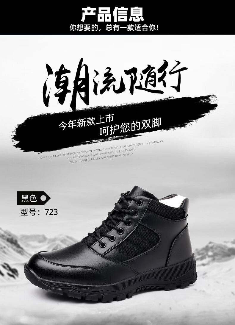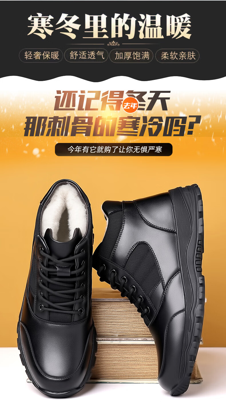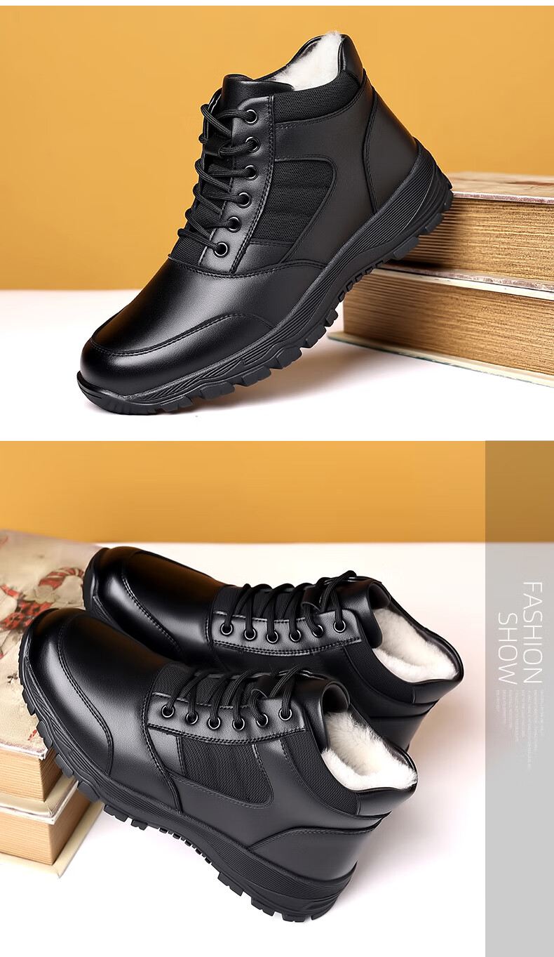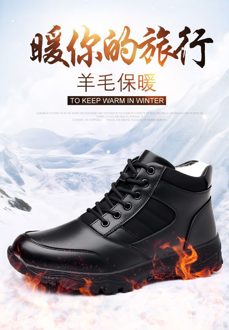 稻草人(MEXICAN)训练鞋执勤鞋工装鞋男冬季新款高帮加绒棉鞋真皮防滑雪地靴马丁靴 CC723黑色羊毛款 40