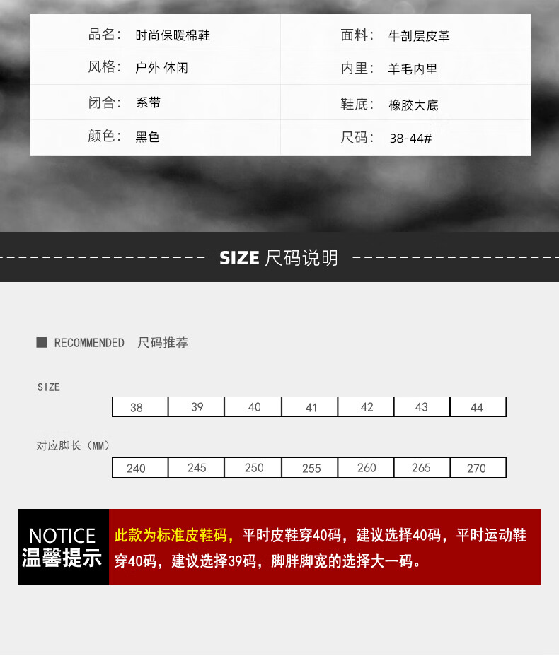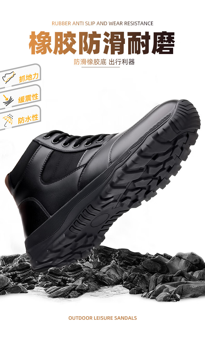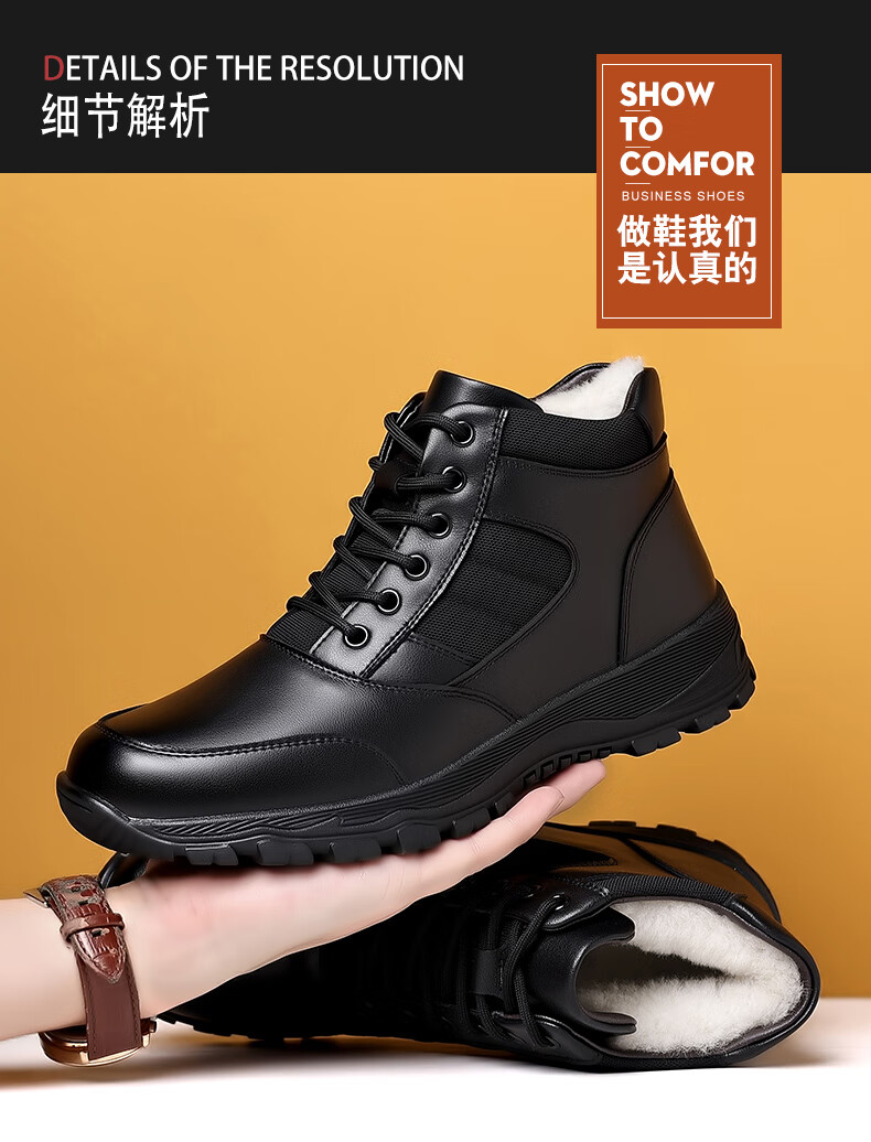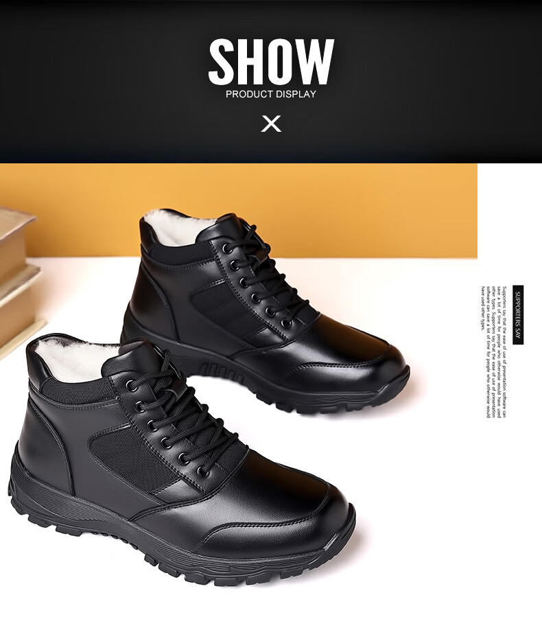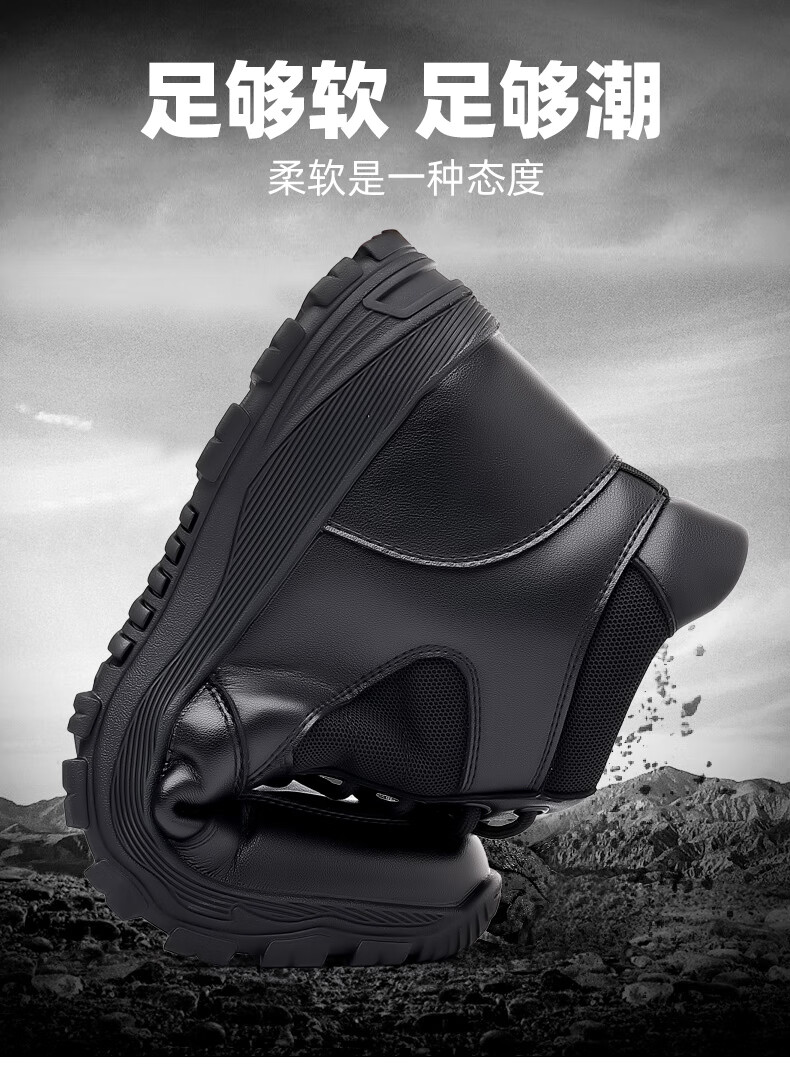 稻草人(MEXICAN)训练鞋执勤鞋工装鞋男冬季新款高帮加绒棉鞋真皮防滑雪地靴马丁靴 CC723黑色羊毛款 40