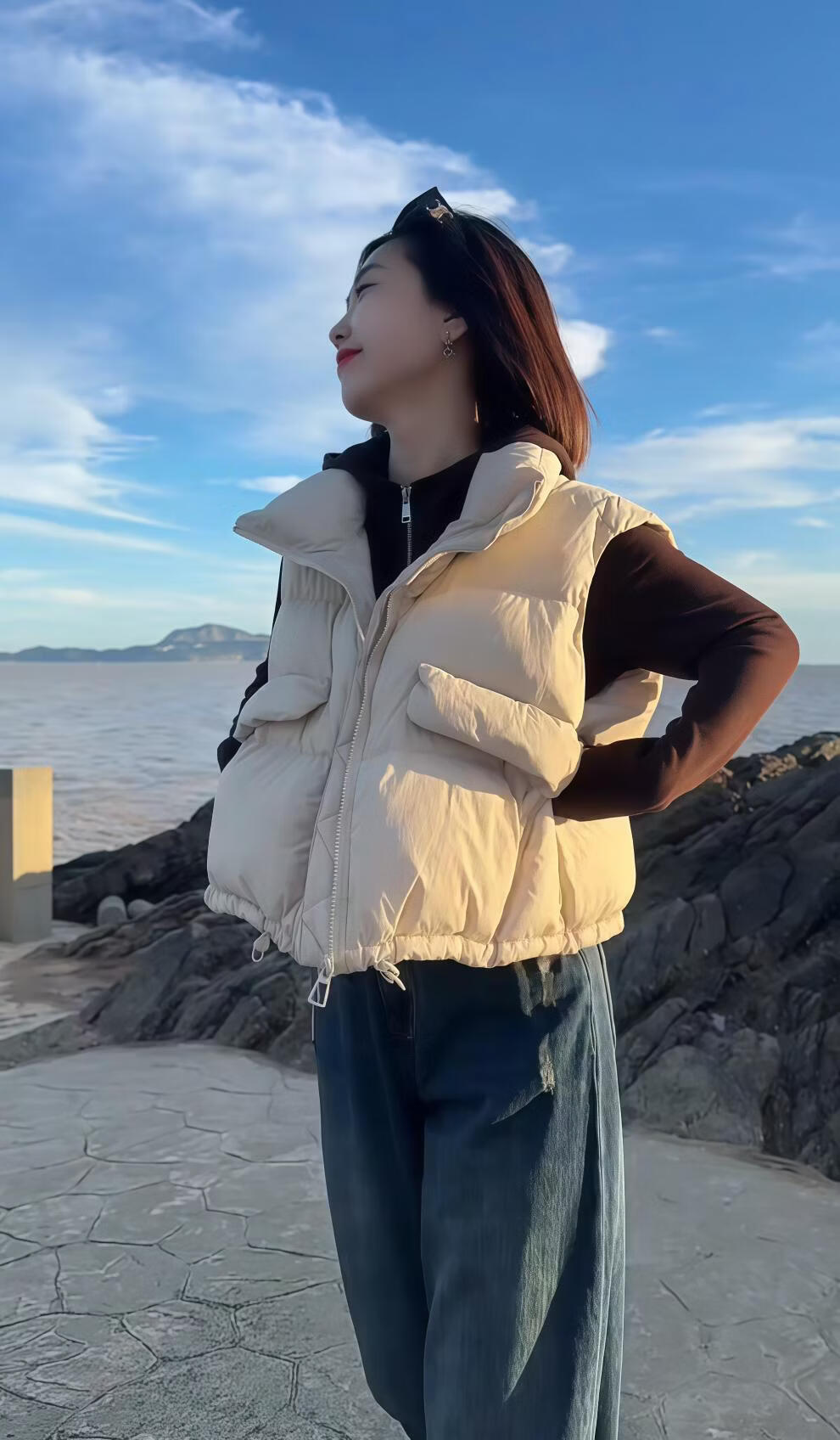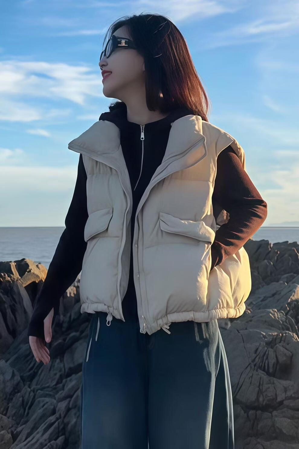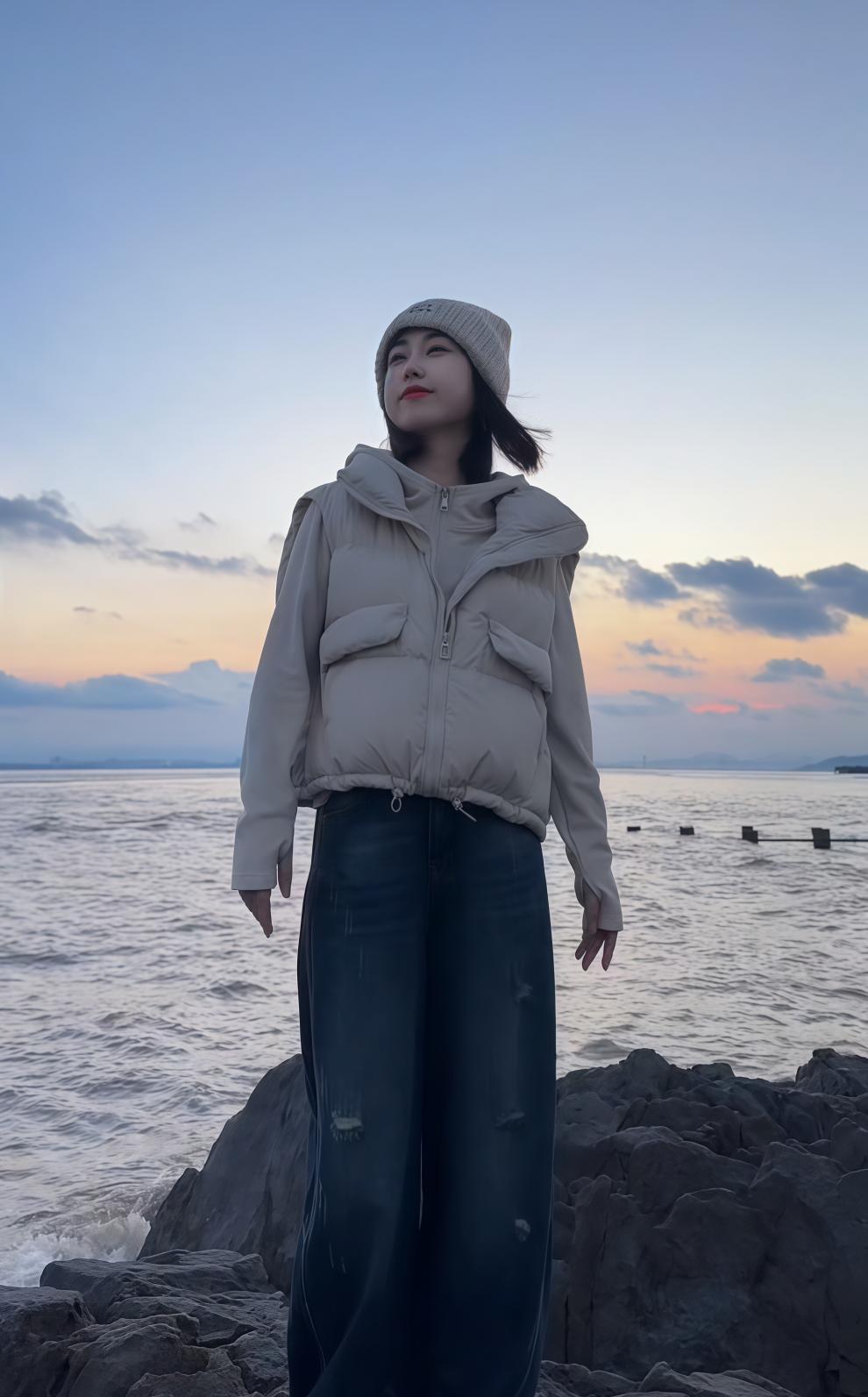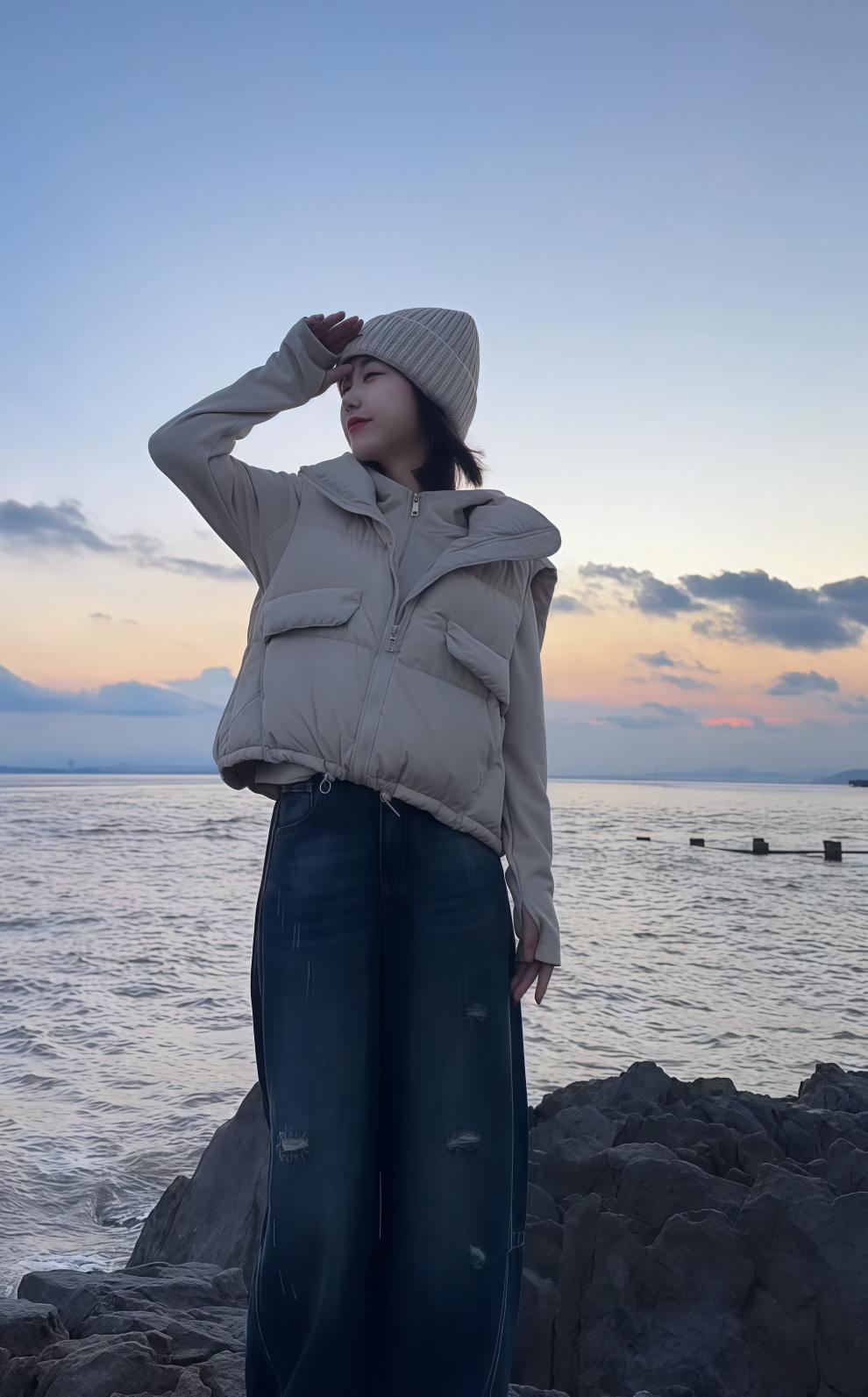 MODX羽绒马甲女2026秋冬季新款设计感宽松百搭小个子白鸭绒羽绒马夹女 米白色 【原版】 M 95-110斤