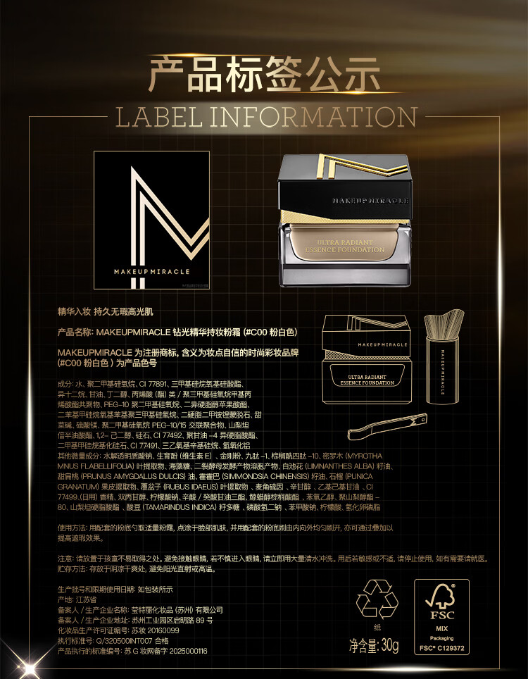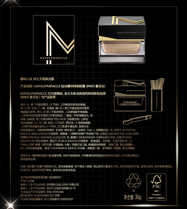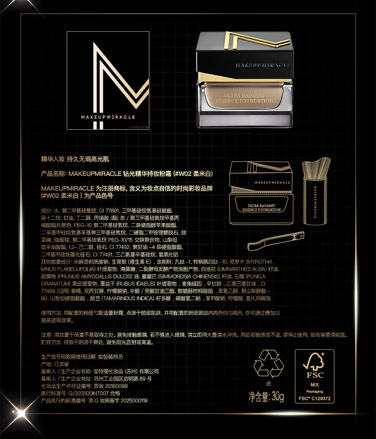 屈臣氏MAKEUPMIRACLE钻光精华持妆粉霜 #W02柔米白