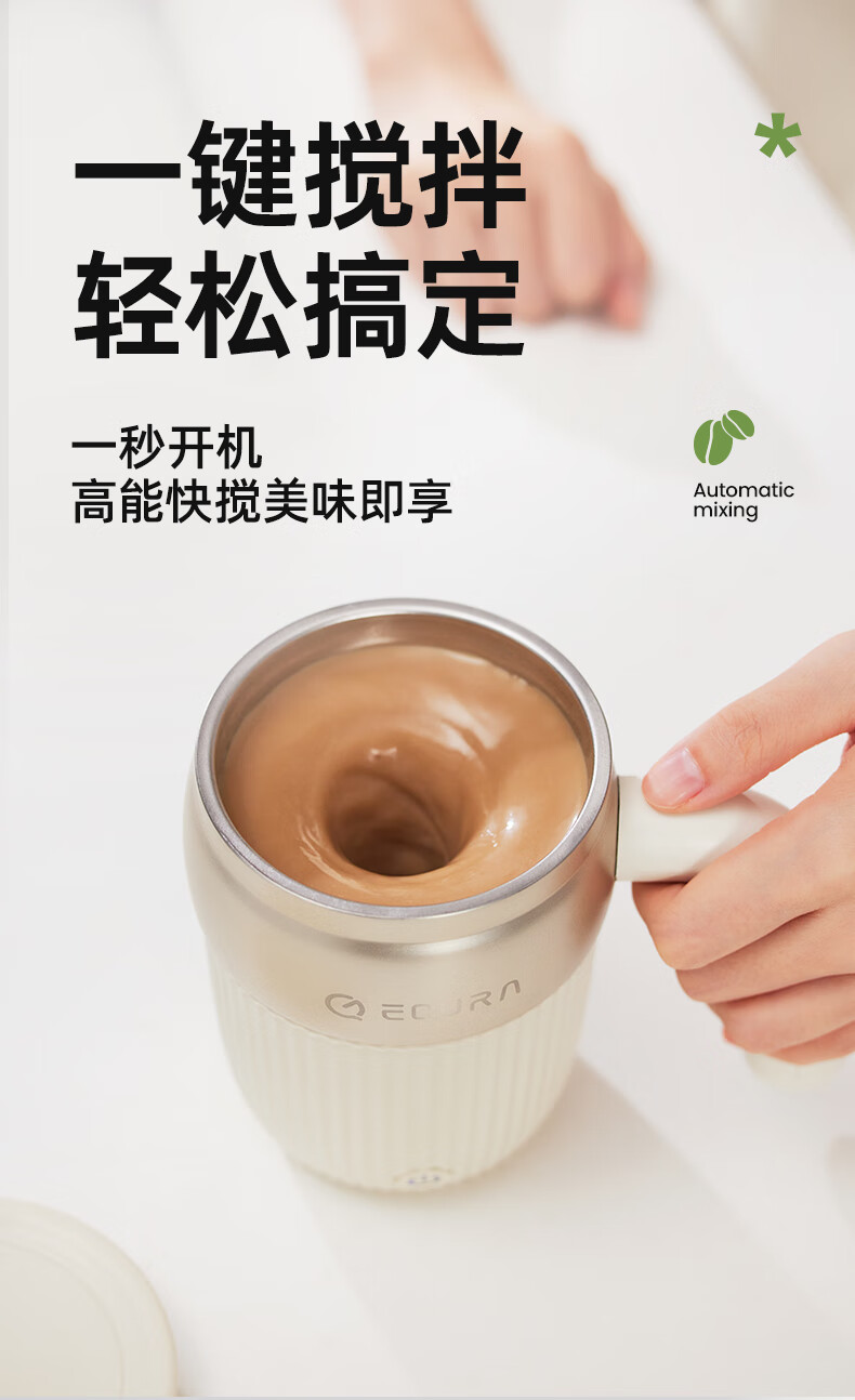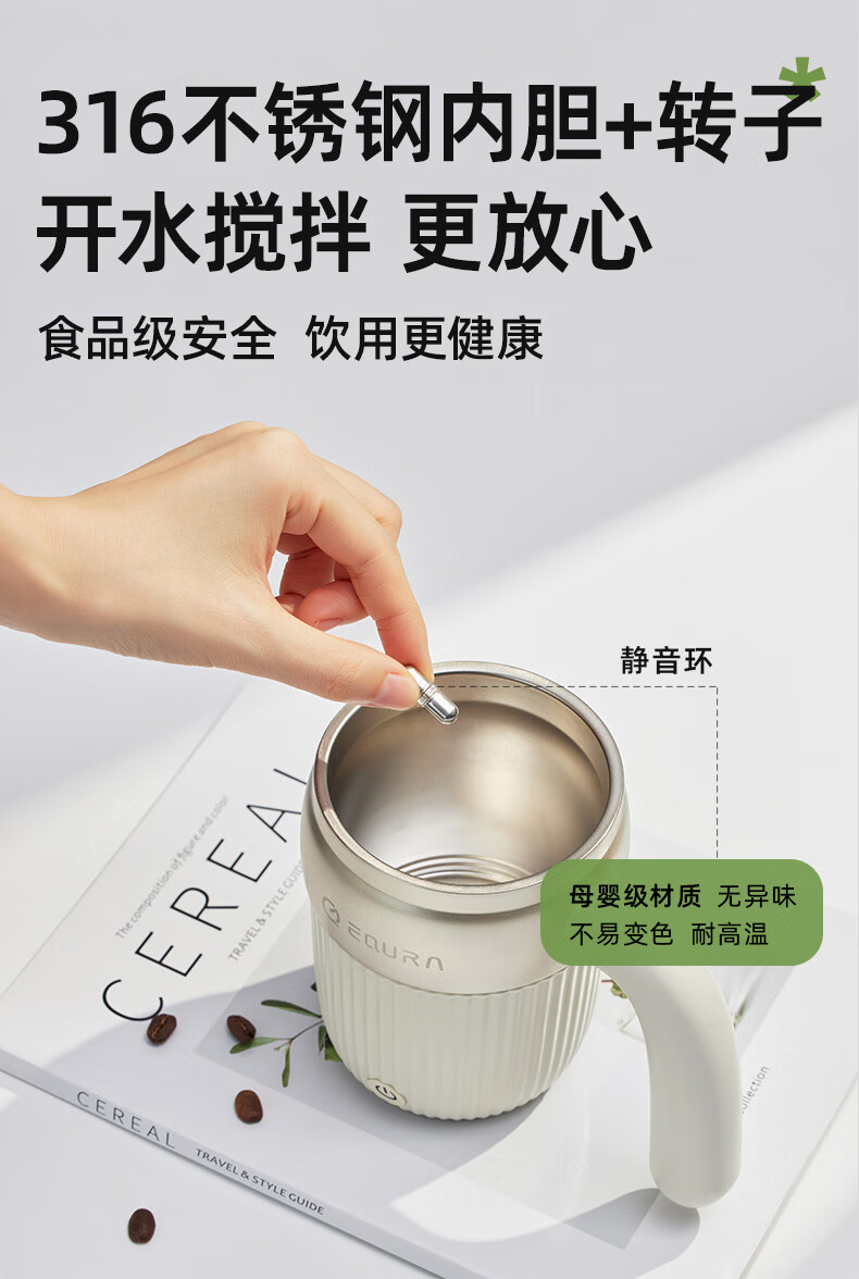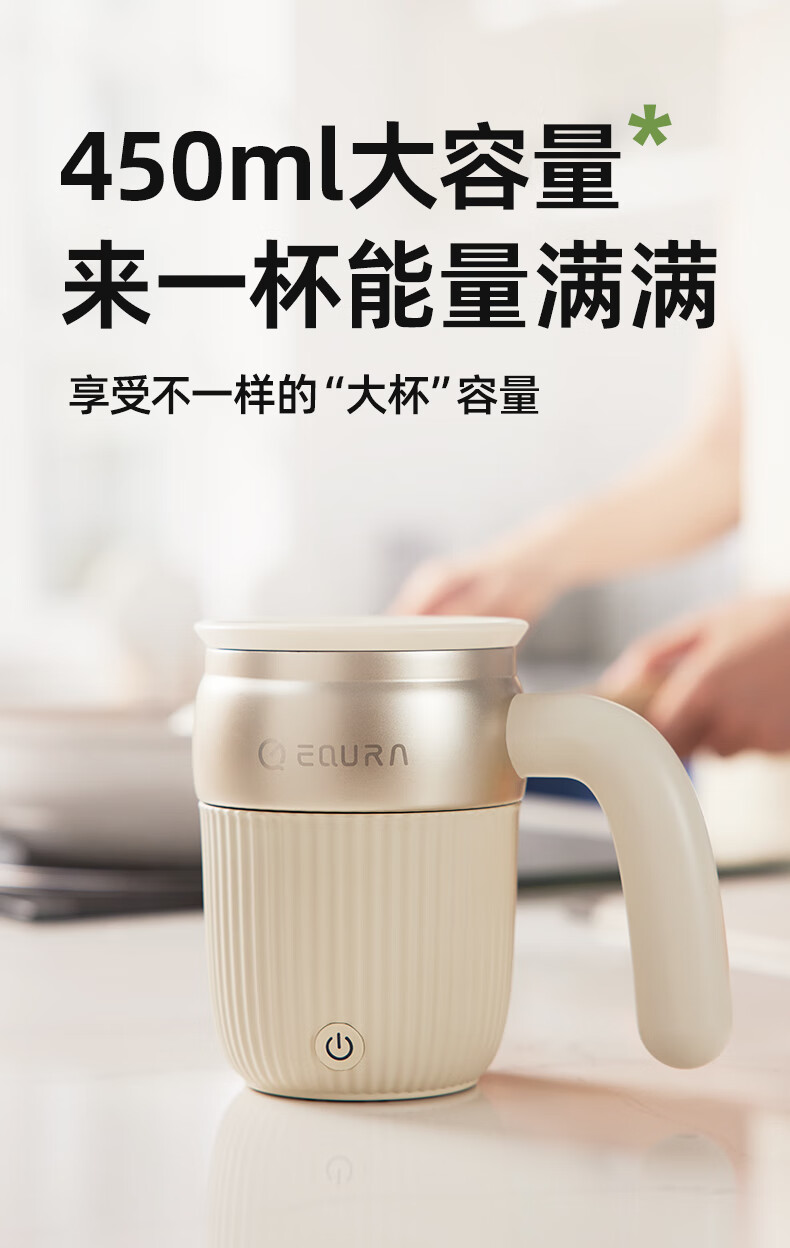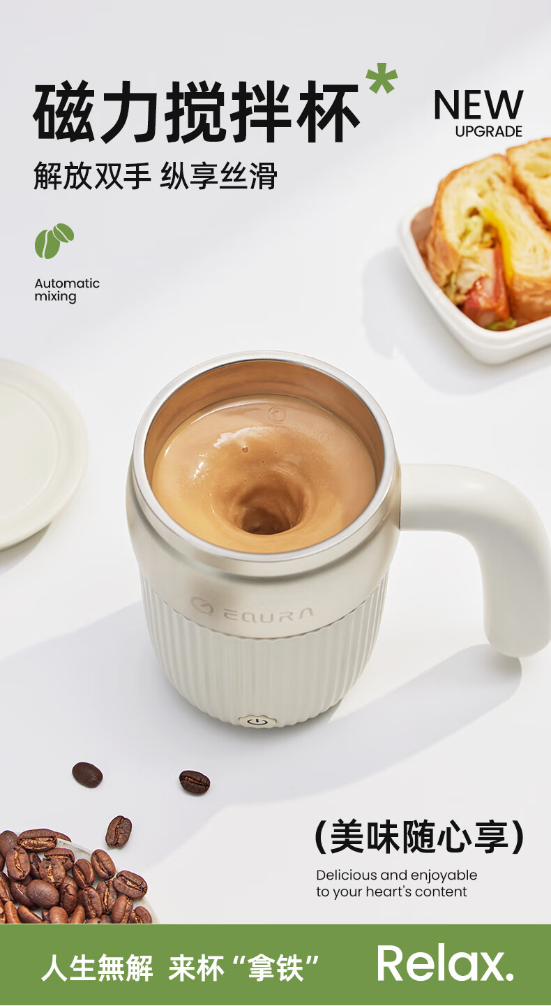 equra一克拉自动搅拌杯咖啡杯充电桌面电动磁力豆浆牛奶泡机粉生日礼物 白色450ML 【316钢转子】
