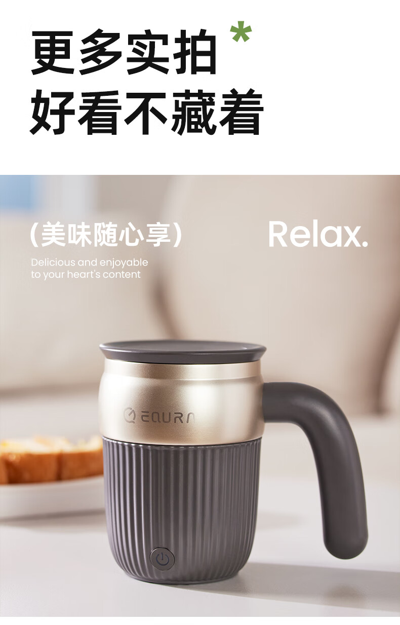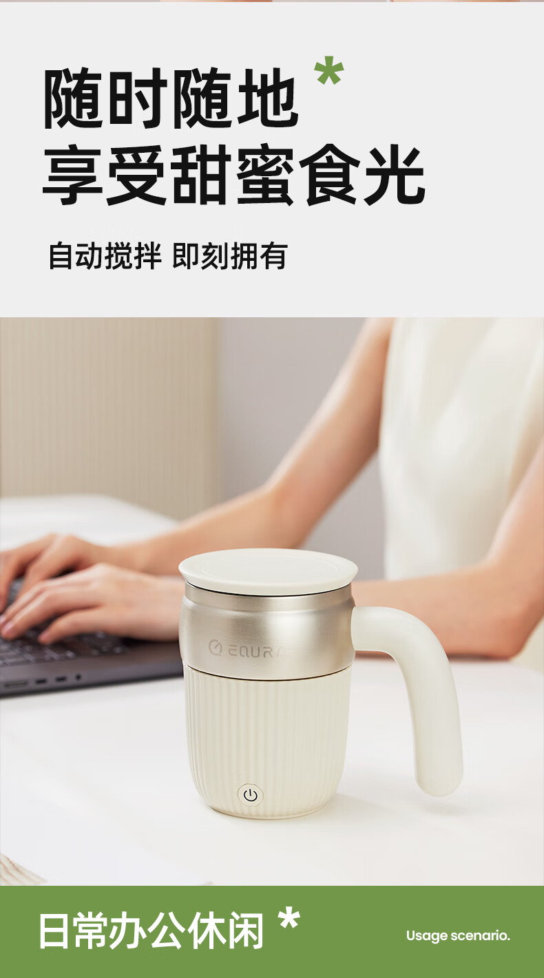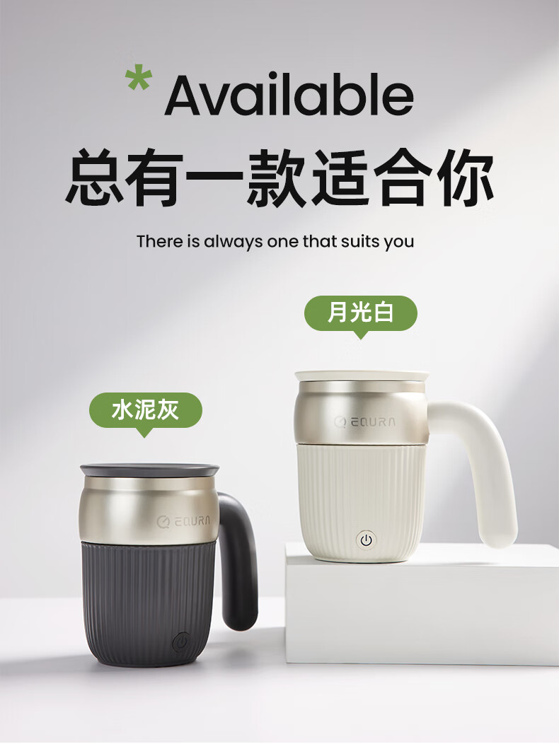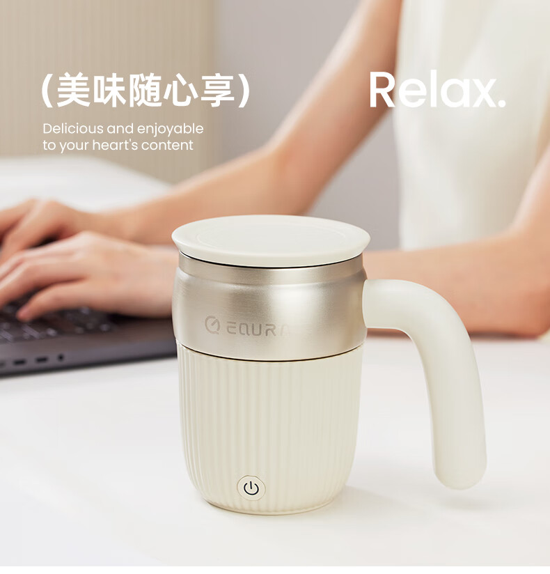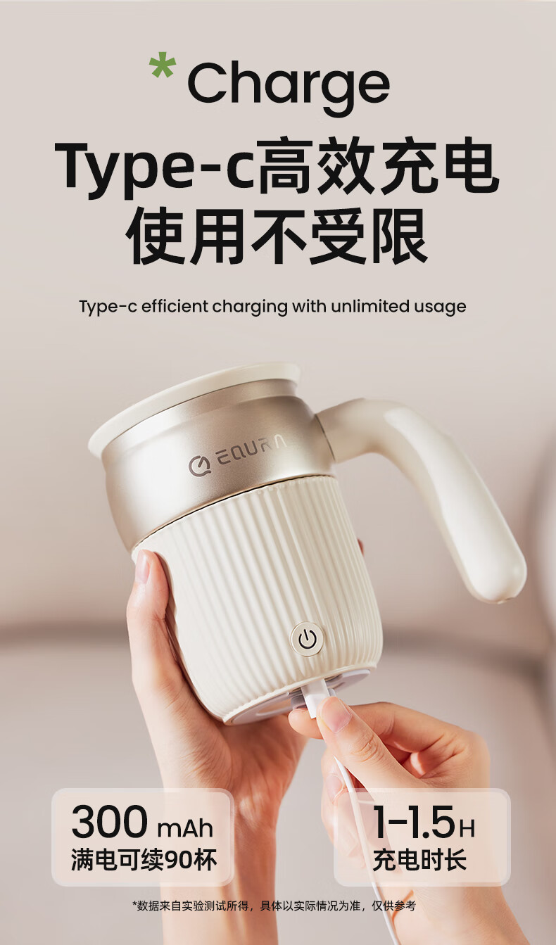 equra一克拉自动搅拌杯咖啡杯充电桌面电动磁力豆浆牛奶泡机粉生日礼物 白色450ML 【316钢转子】
