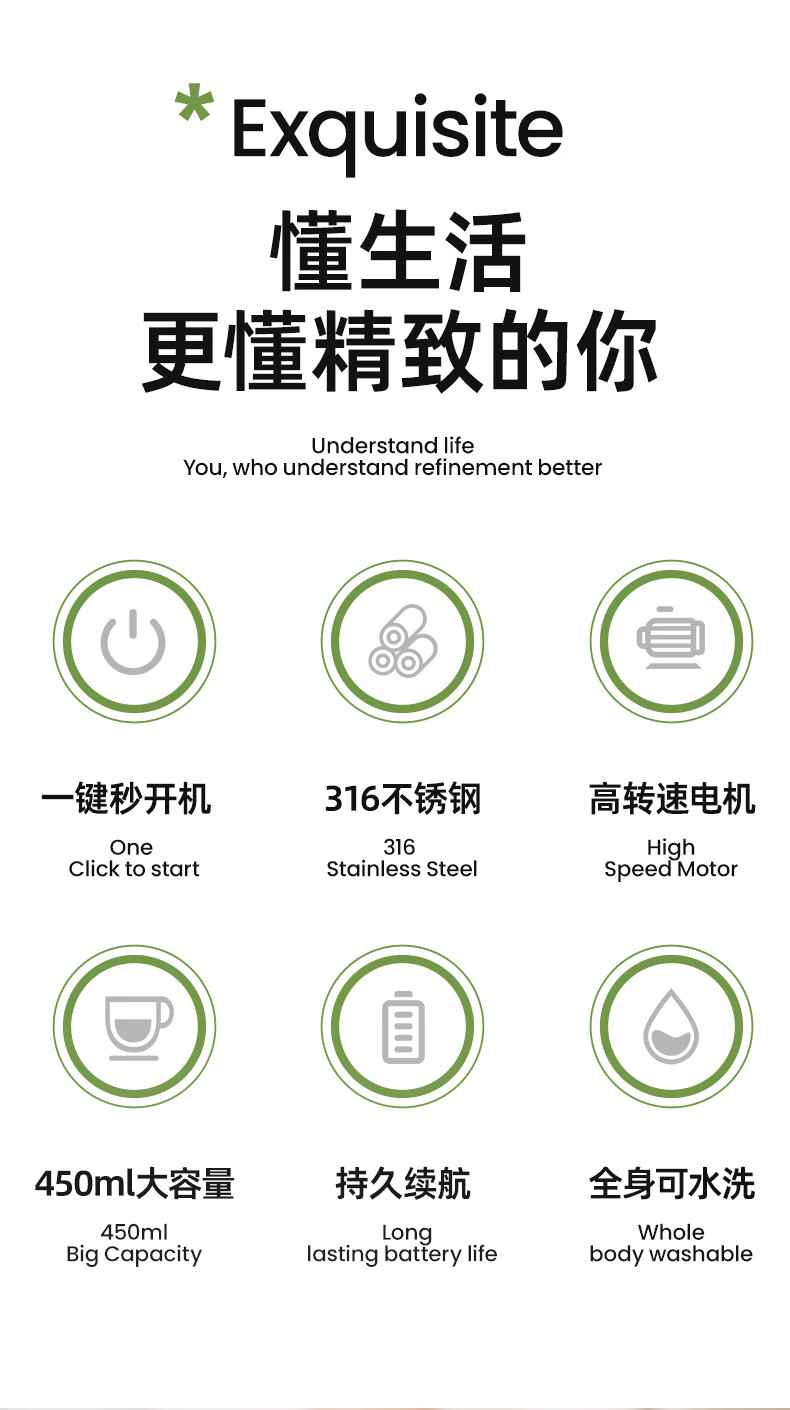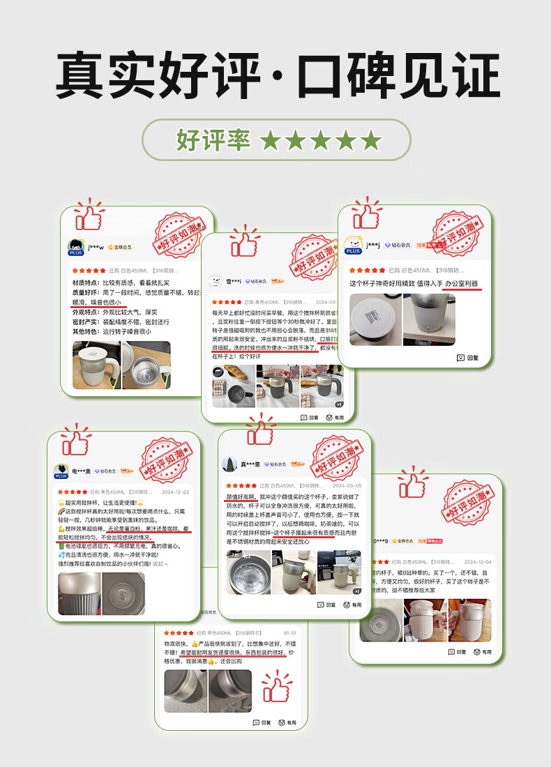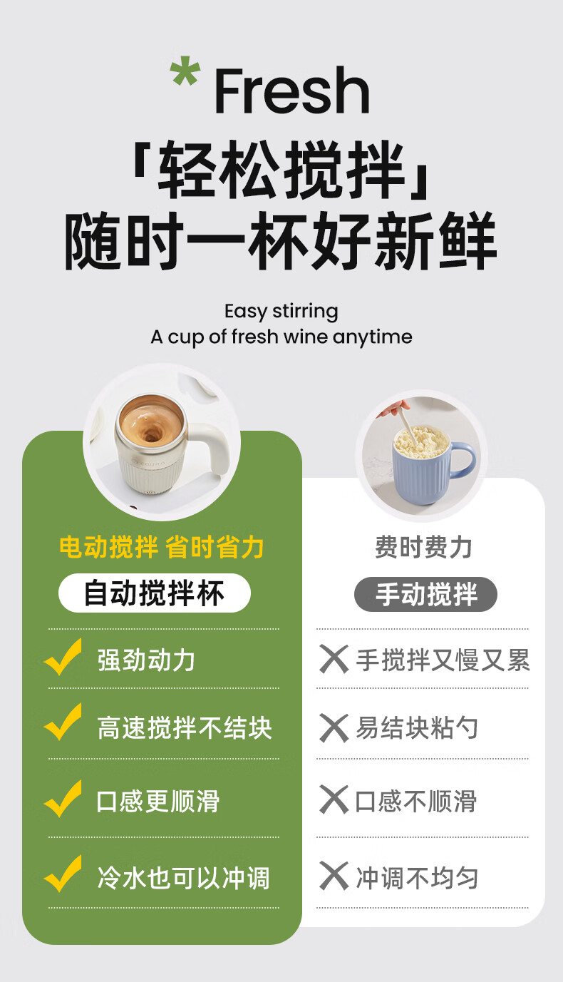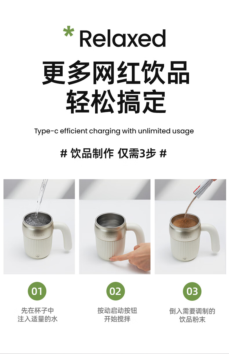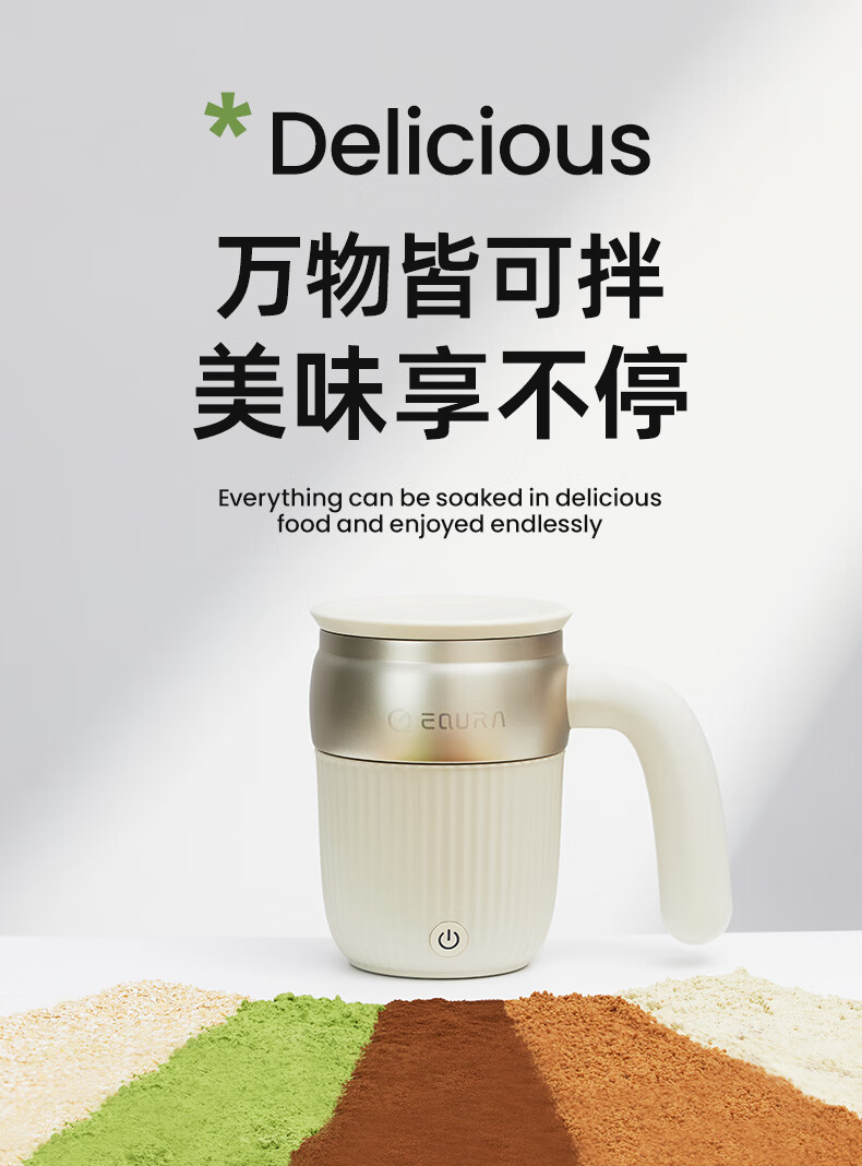 equra一克拉自动搅拌杯咖啡杯充电桌面电动磁力豆浆牛奶泡机粉生日礼物 白色450ML 【316钢转子】