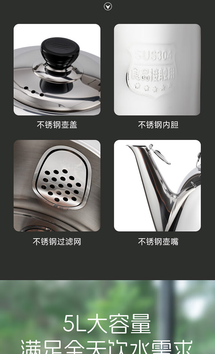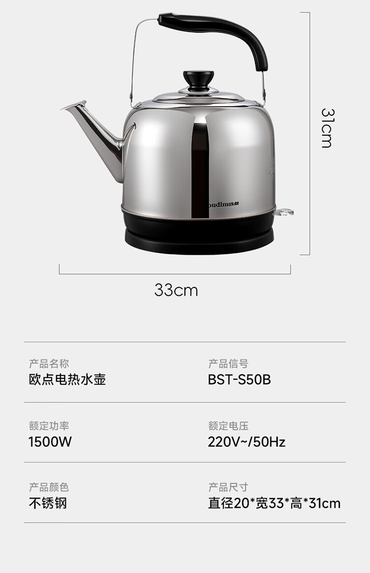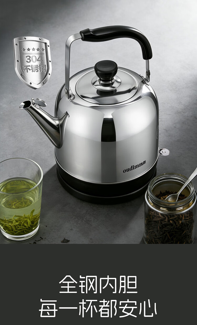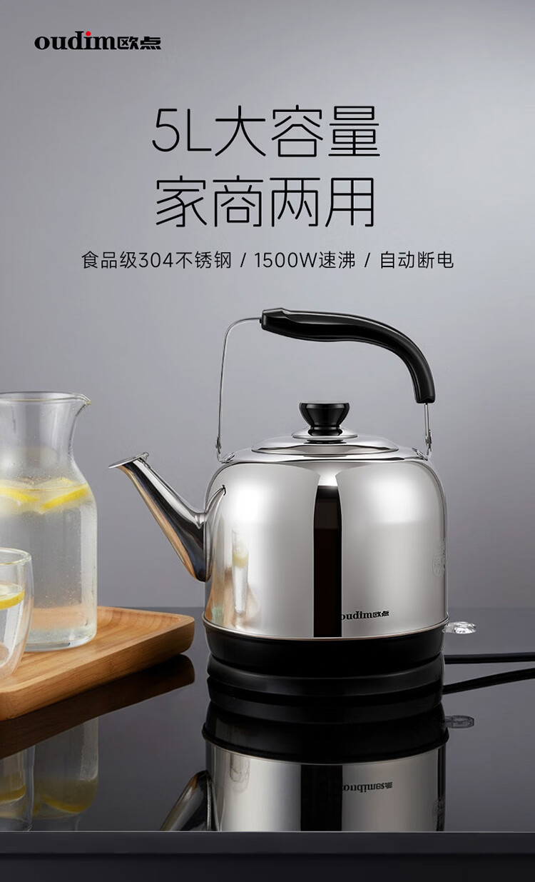 欧点复古电热水壶1500W烧水壶食品级304钢电水壶大容量5L家用水吊子自动断电开水煲 5L 【大容量|1500W】