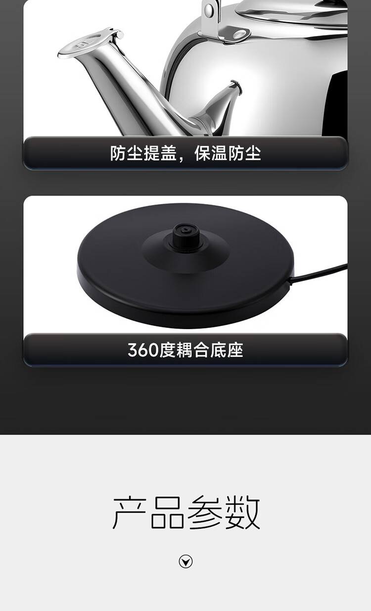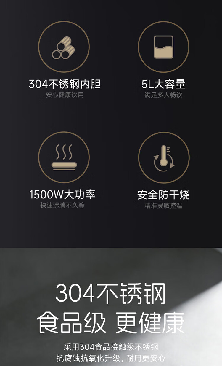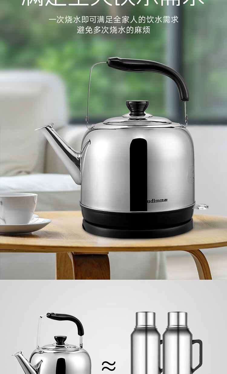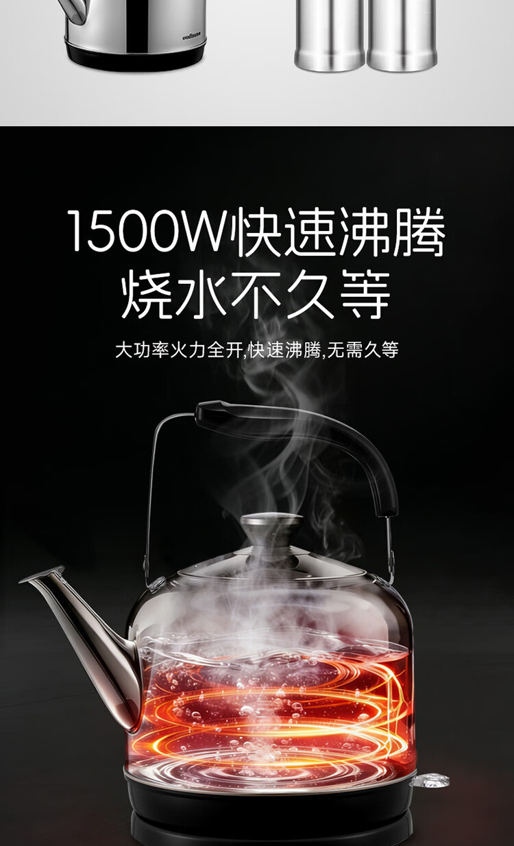 欧点复古电热水壶1500W烧水壶食品级304钢电水壶大容量5L家用水吊子自动断电开水煲 5L 【大容量|1500W】
