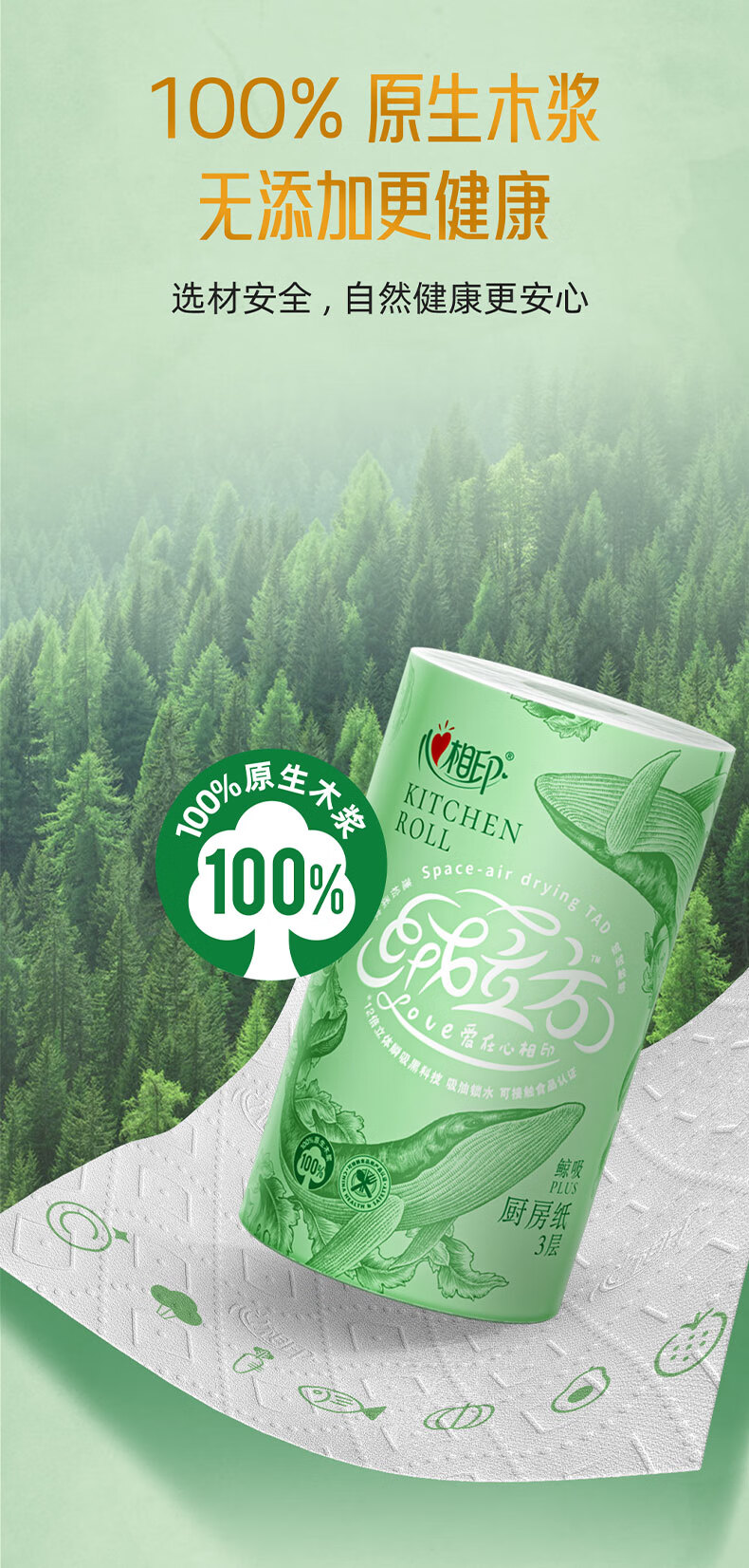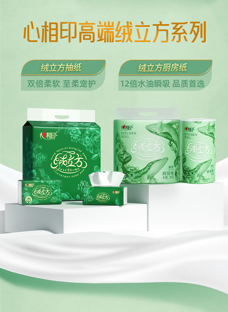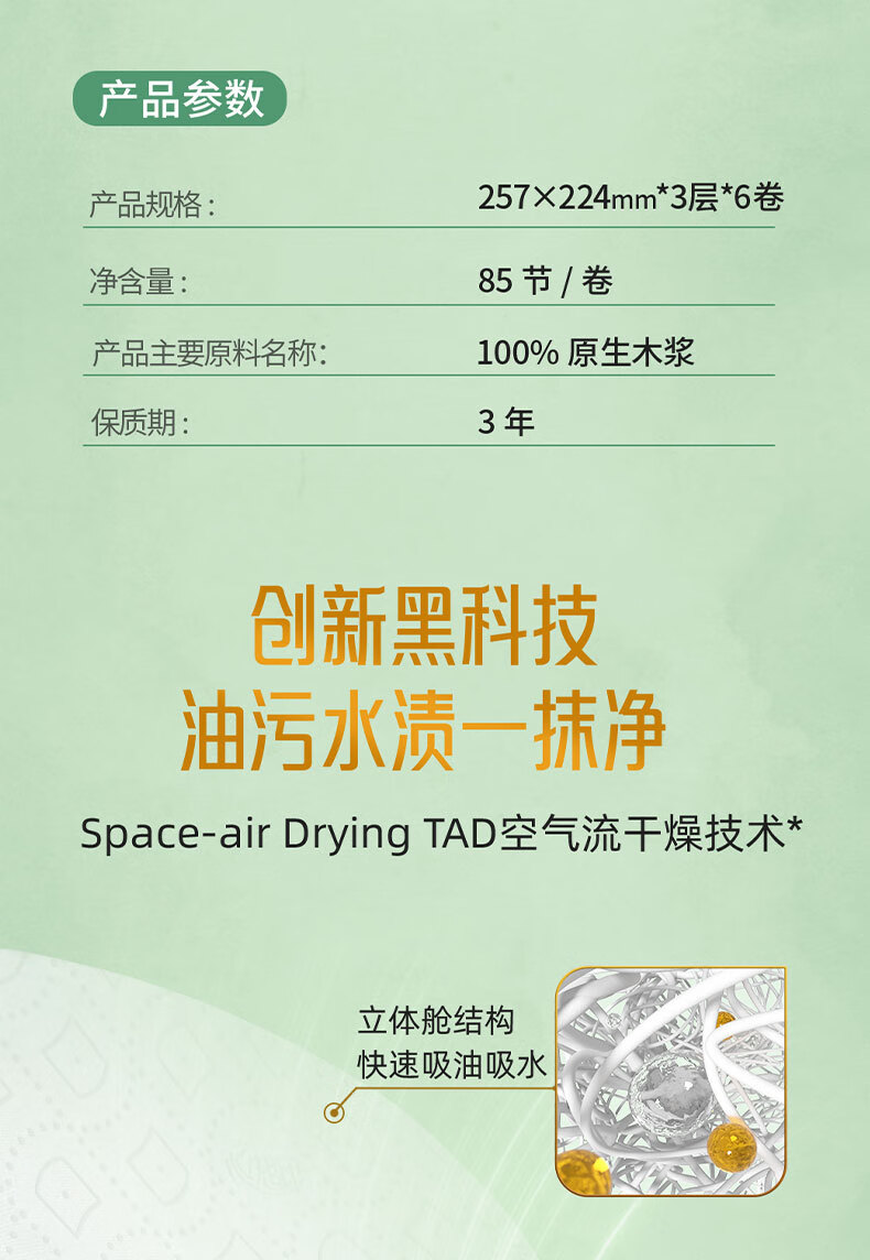 心相印【田栩宁同款】绒立方厨房卷纸85节*6粒 12倍吸油锁水可接触食物