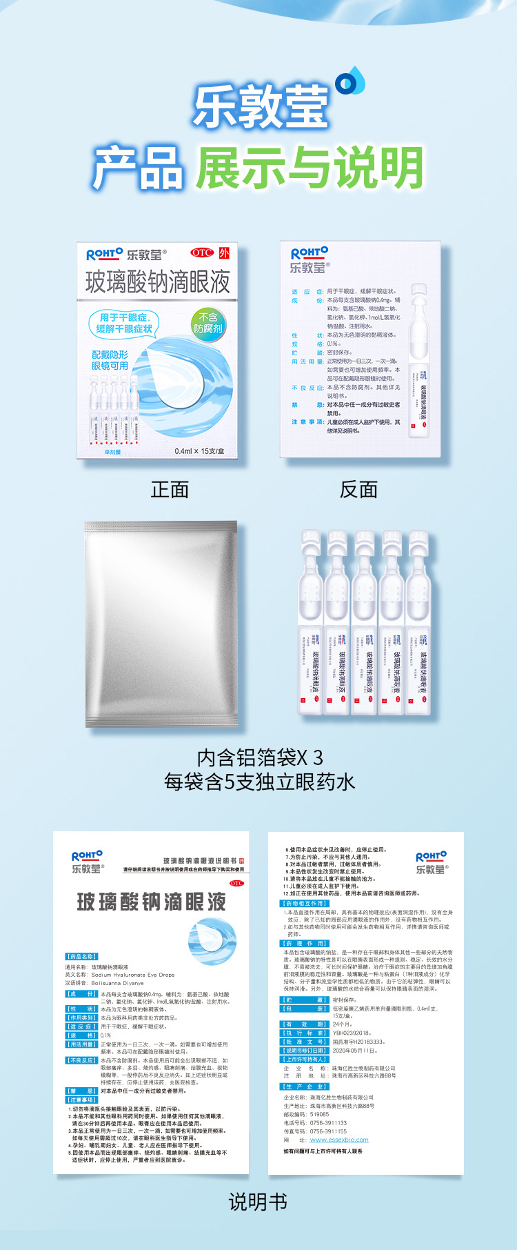 乐敦rohto曼秀雷敦乐敦莹玻璃酸钠滴眼液0.1%*0.4ml*15支眼药水人工泪液隐形眼镜润眼液干眼症