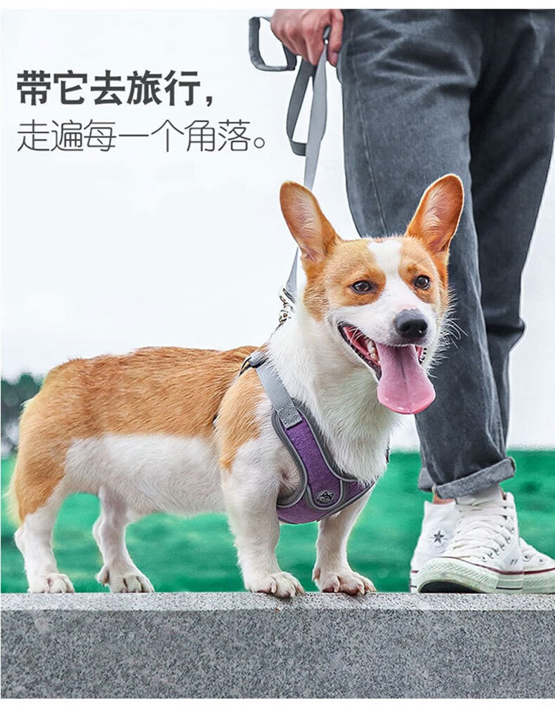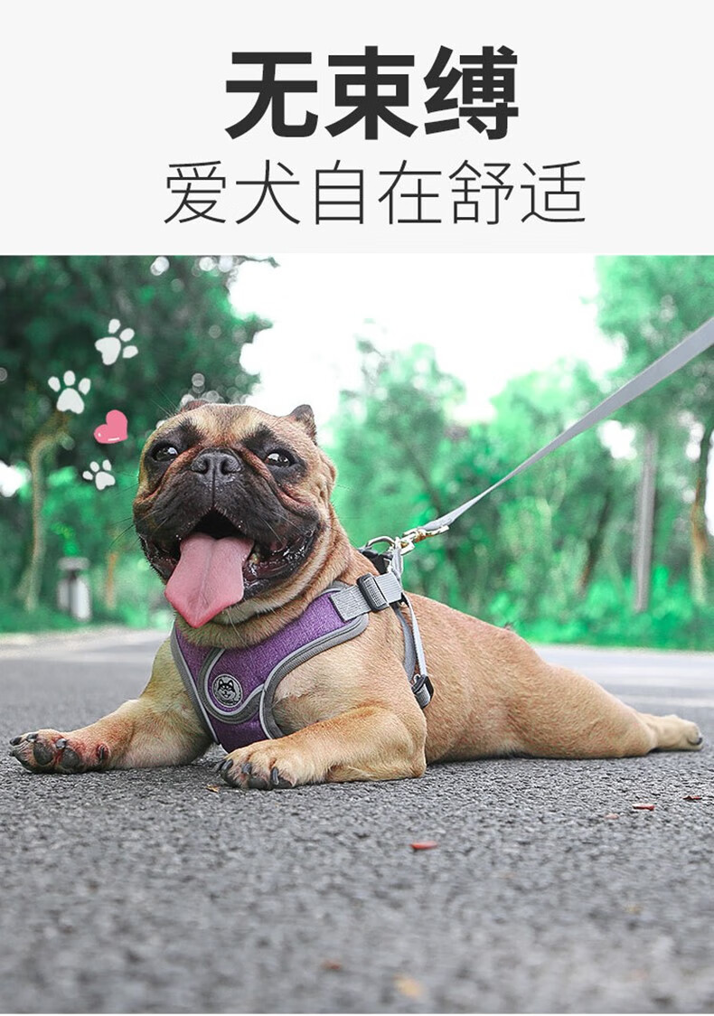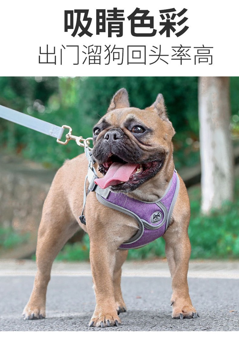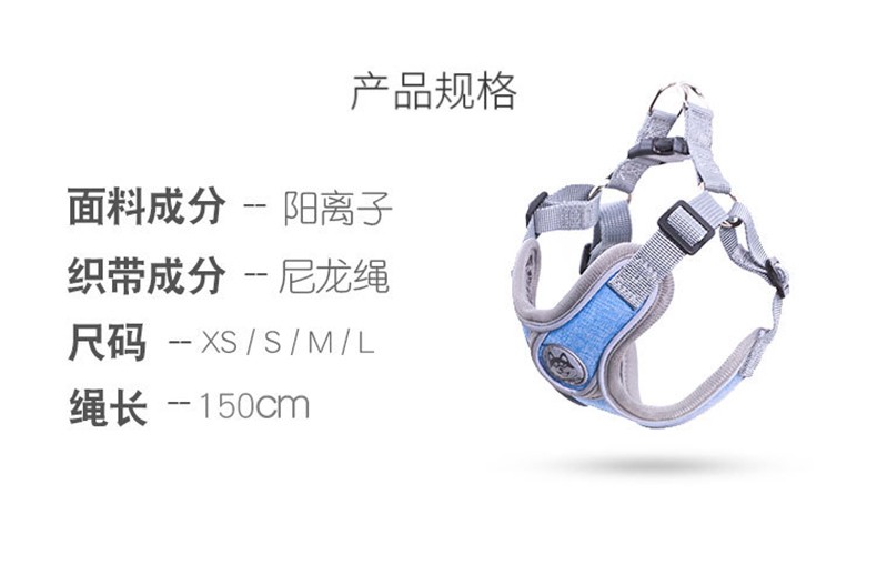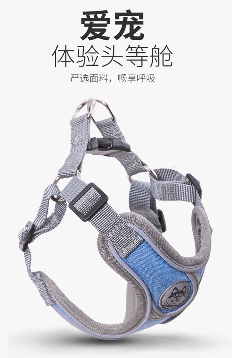 SLPC狗狗胸背带背心式小型犬牵引法斗泰迪柯基胸背中型犬遛狗绳背带 送1.5米原配绳/天空蓝 M/胸围50-62cm/约15-28斤
