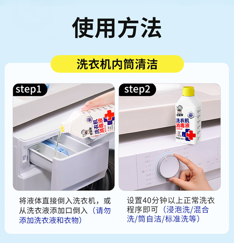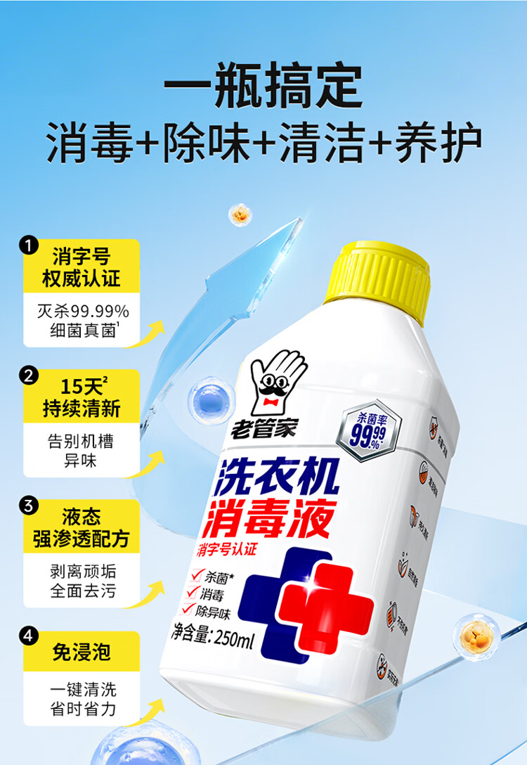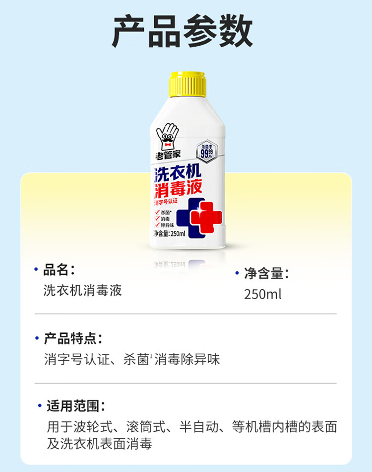 老管家洗衣机槽清洁剂清洗强力除垢杀菌消毒液滚筒专用去污渍 250ml 2瓶