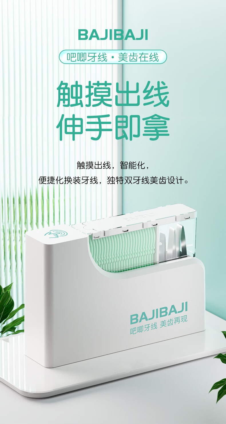 BAJIBAJI智能牙线机自动弹出牙线盒薄荷超细双线牙线棒家庭牙签线触摸弹出 白色 智能牙线机【赠100支薄荷双线】