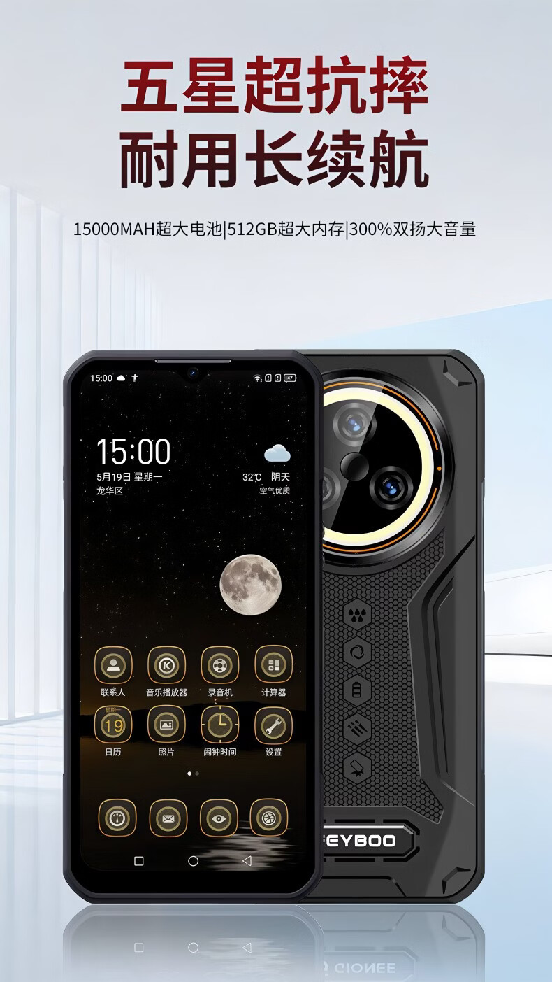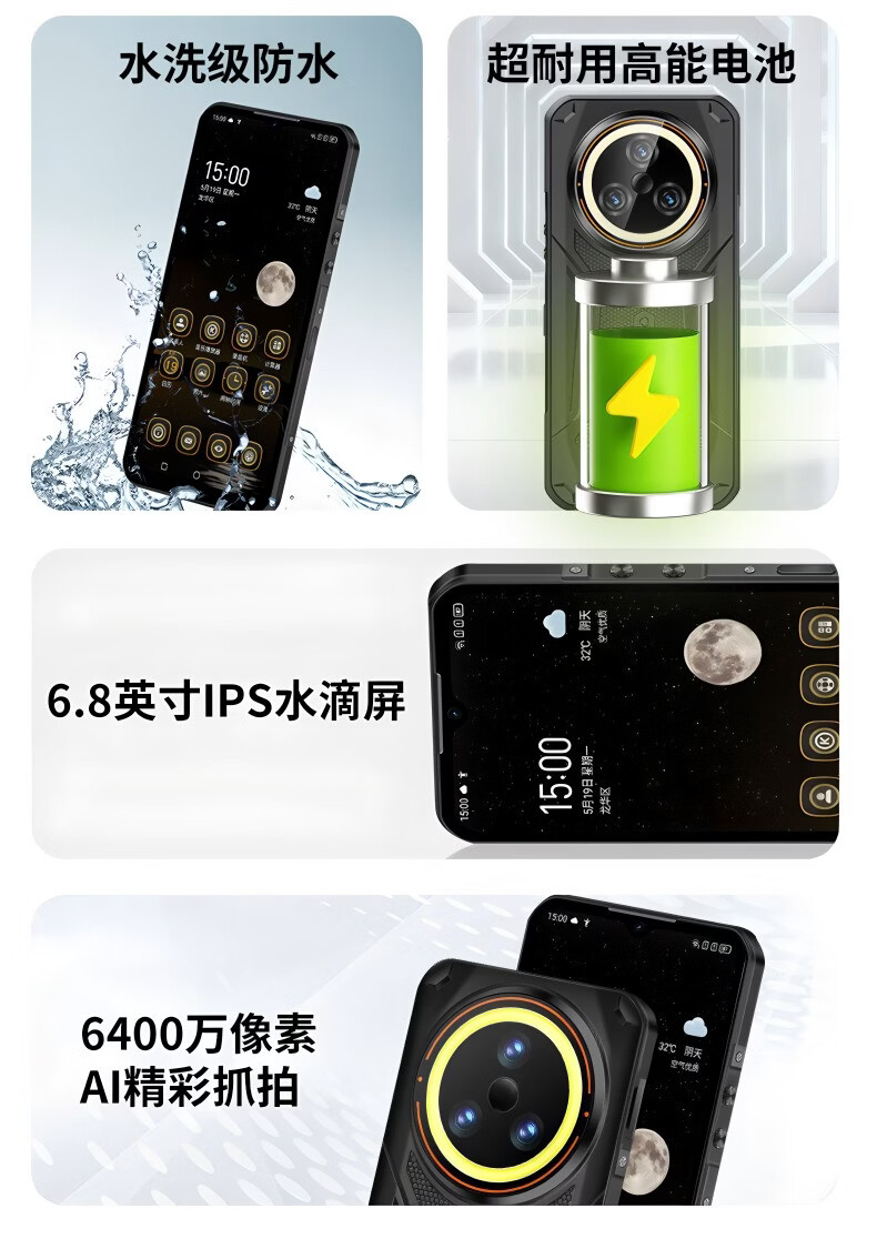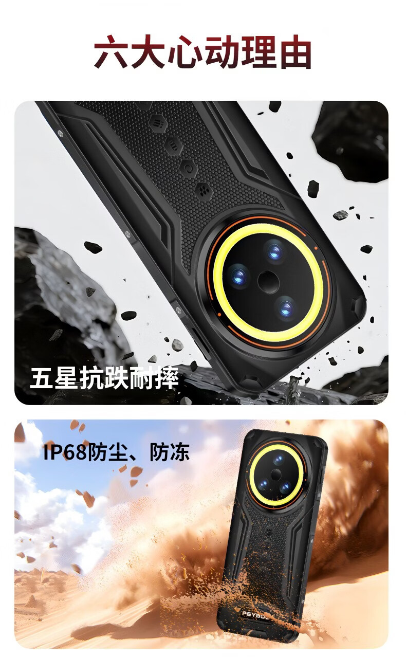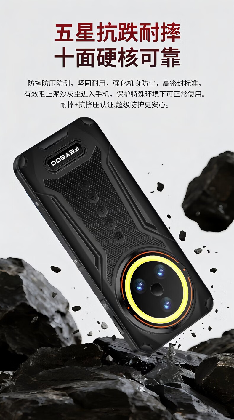 斐豹(FEYBOO)新款6.8寸超强信号电霸户外15000原装大电池三防手机5G全网通512G大内存骑手外卖支持NFC红外遥控 6.8英寸 X18 黑色 15000电池 16GB+1TB