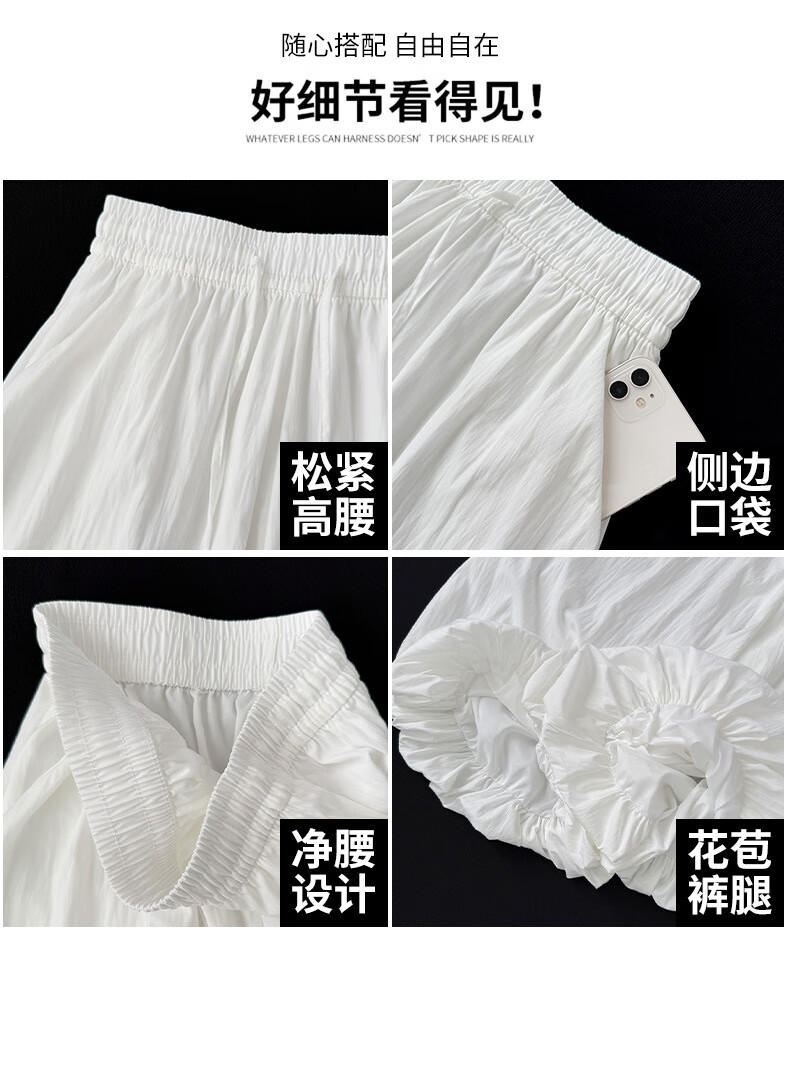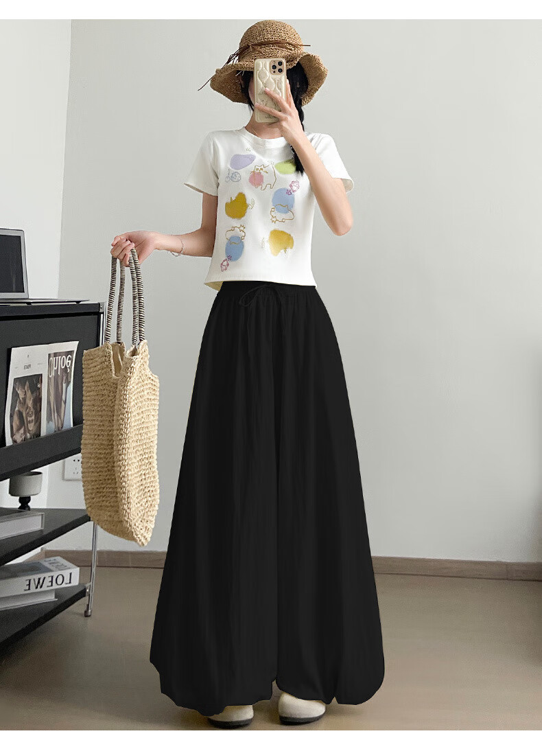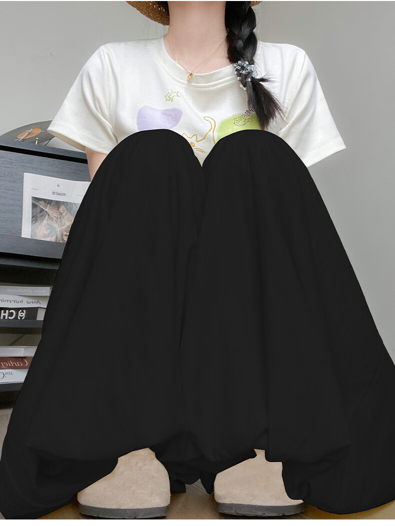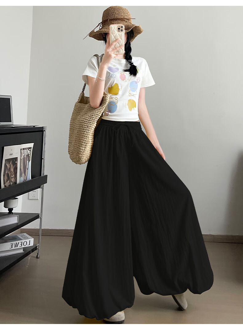 浪莎休闲裙裤女夏季新款花苞冰丝薄款防晒裤修身高腰显瘦灯笼裤 黑色 【透气遮胯带口袋】 L 【推荐110-125斤】