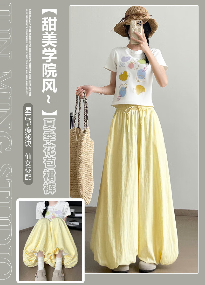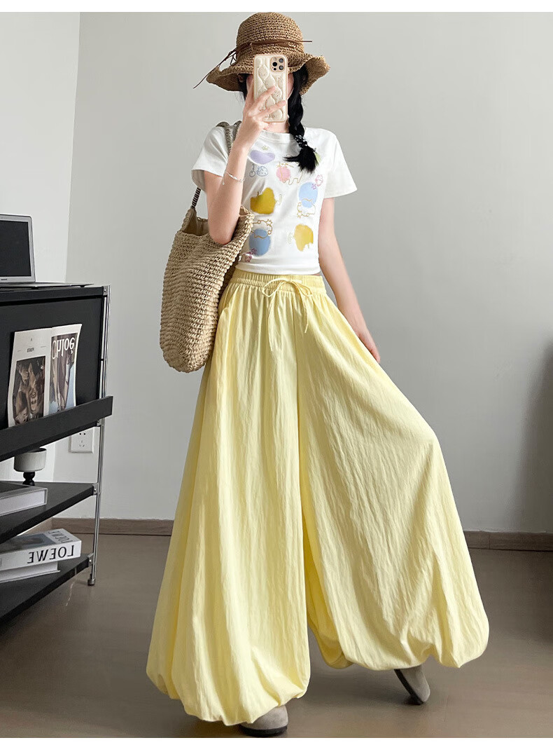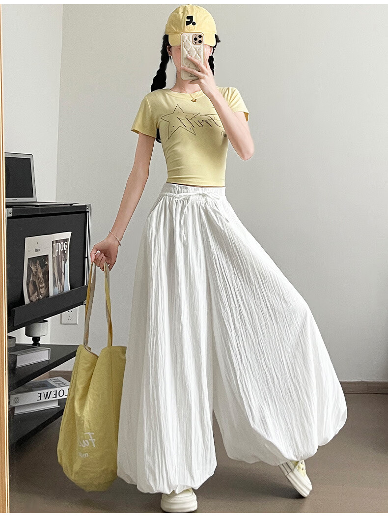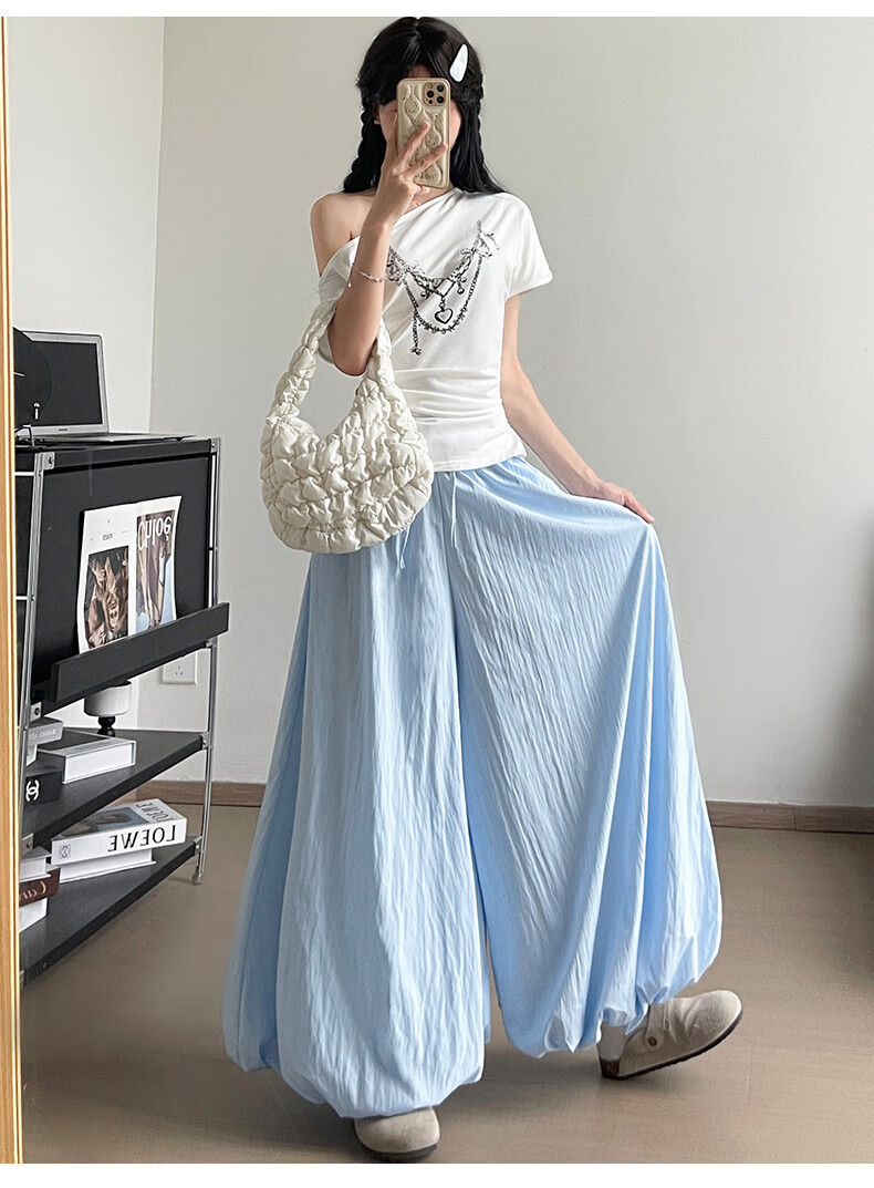 浪莎休闲裙裤女夏季新款花苞冰丝薄款防晒裤修身高腰显瘦灯笼裤 黑色 【透气遮胯带口袋】 L 【推荐110-125斤】