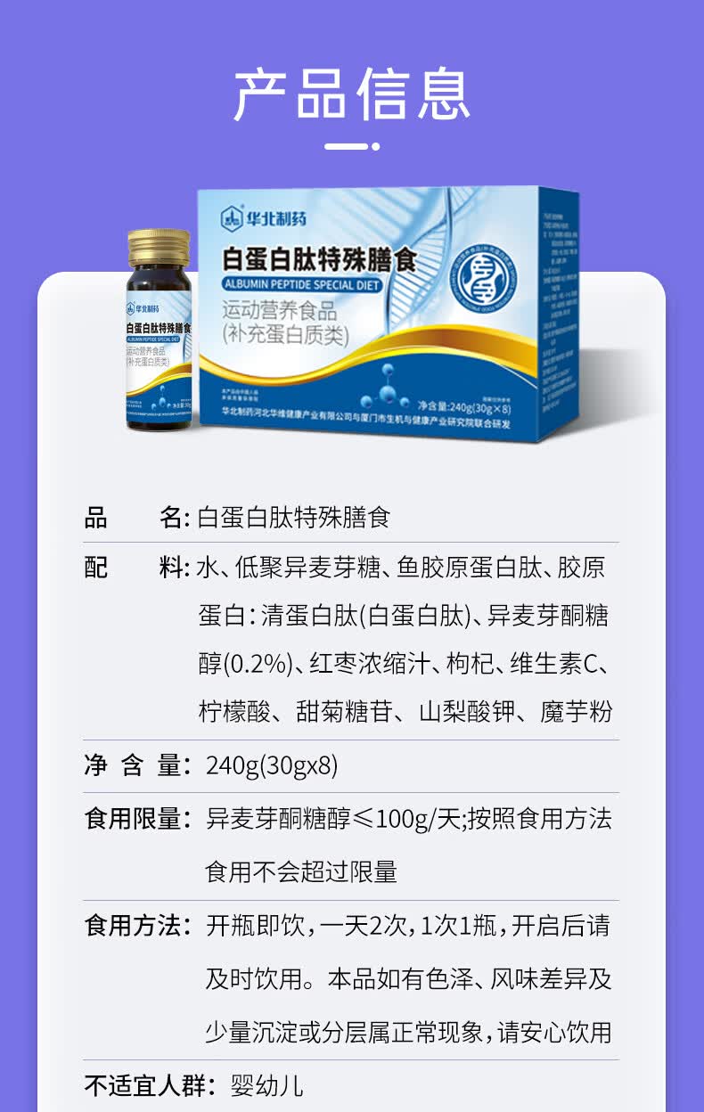华北制药大健康【临期特价】白蛋白肽口服液 免疫力营养26年9月5日到期 8瓶*10盒 【最划算】到手80瓶