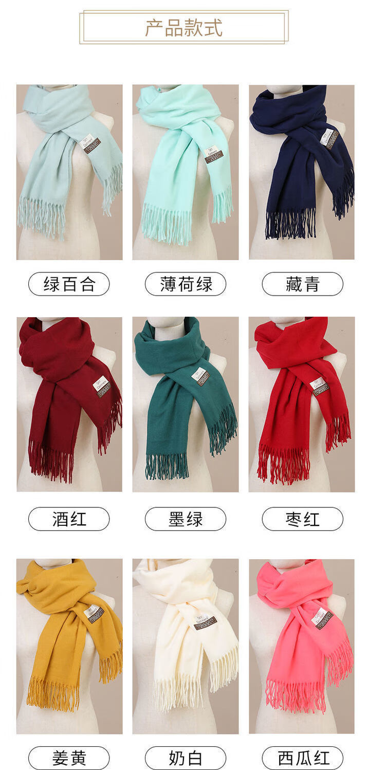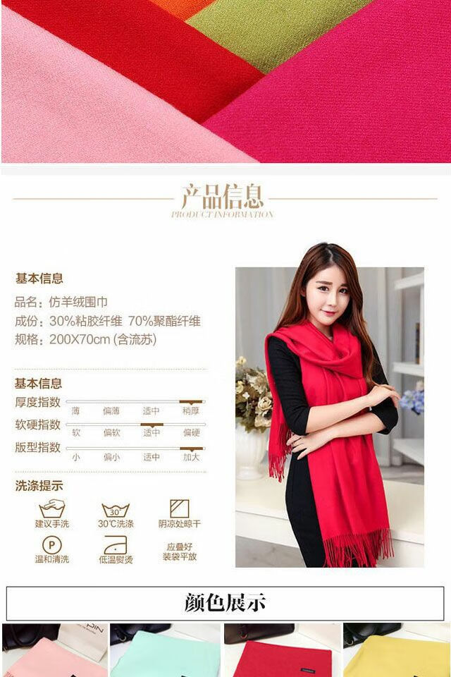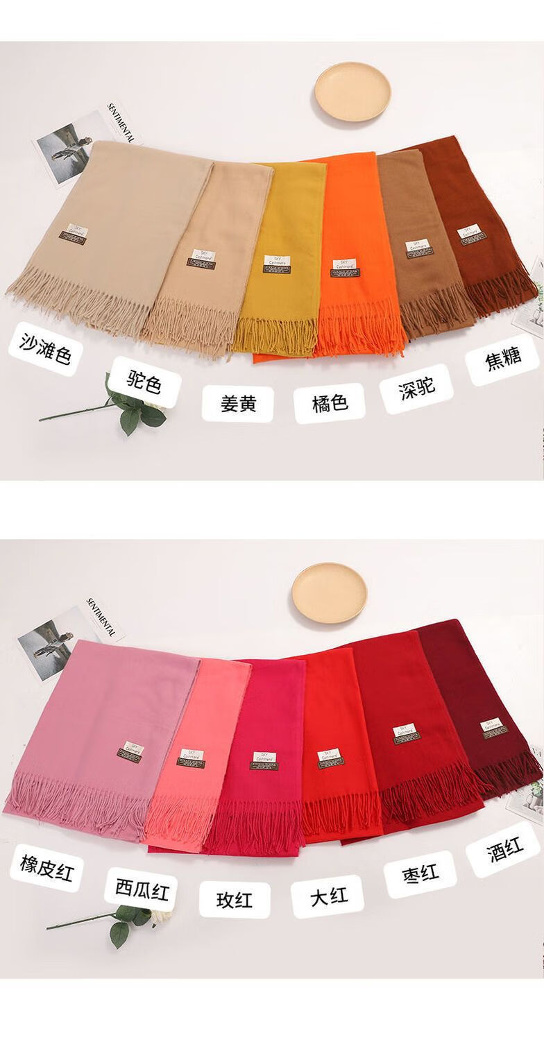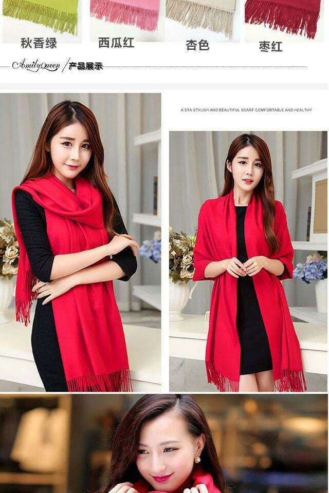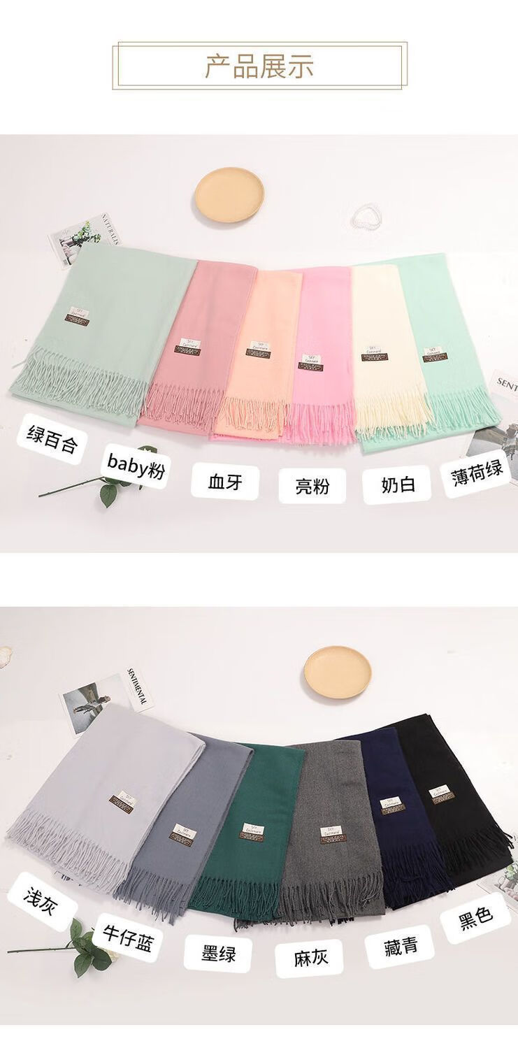 【严选】围巾女围巾冬天仿羊绒围巾围巾纯色保暖围巾秋冬围巾围巾 【皮粉色】仿羊绒围巾 200cmX70cm【秋冬厚款】