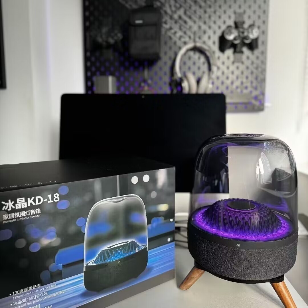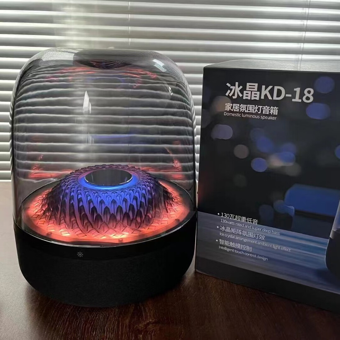 中性华强北KD-18哈曼同款蓝牙音响琉璃4代低音炮冰晶电脑音箱环绕家庭影院高保真礼物 KD-18黑金水晶琉璃音箱+支架+U盘