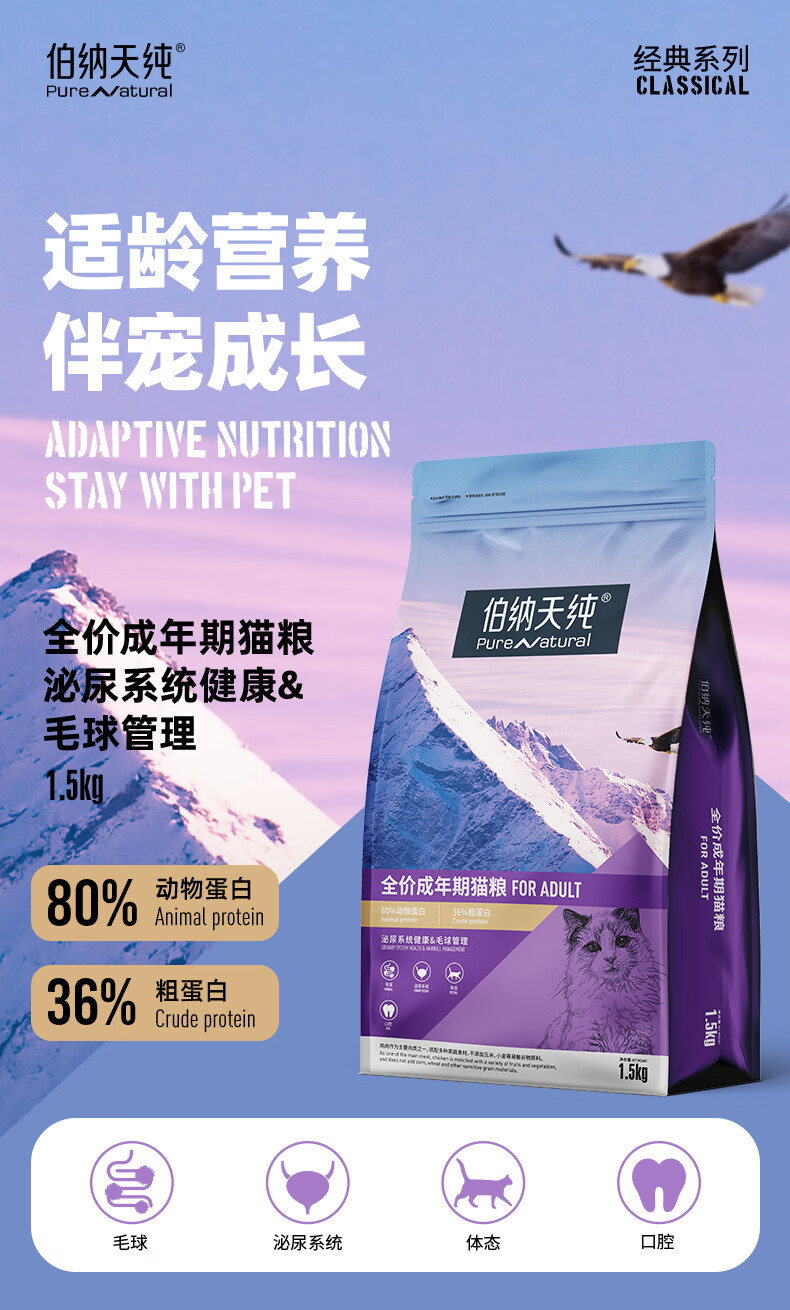 伯纳天纯猫粮经典成猫猫粮 12月龄以上经典系列1.5kg/3斤