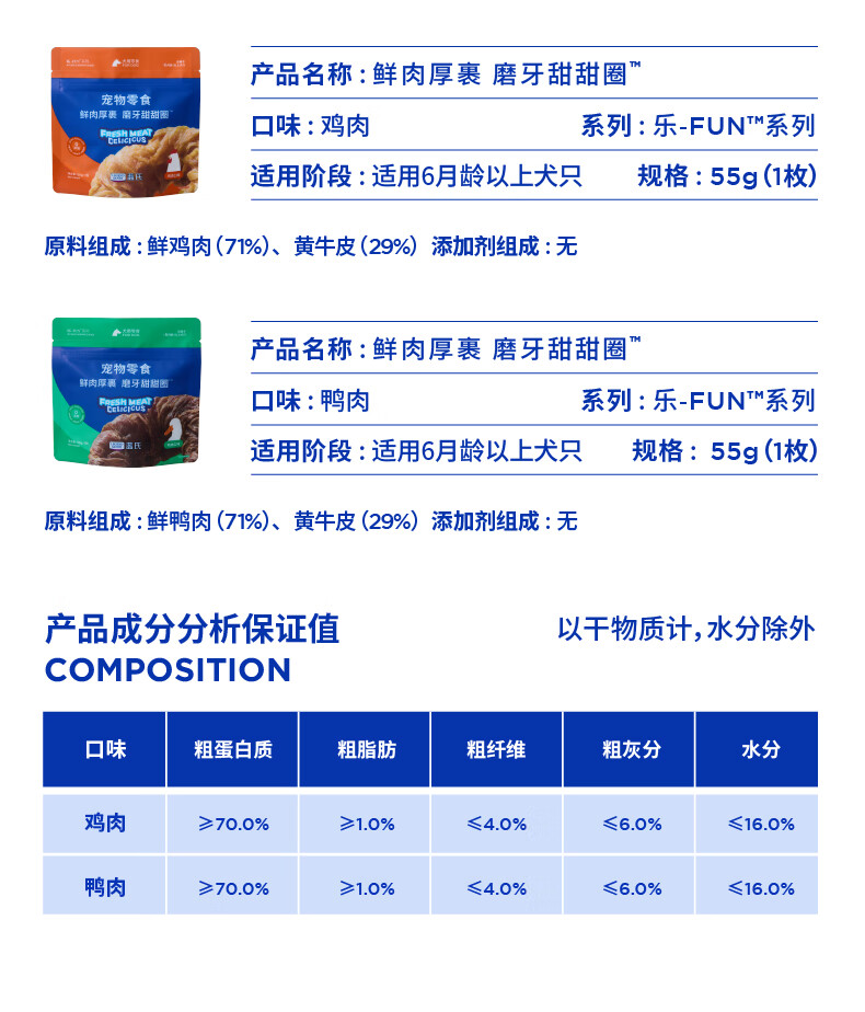 LEGENDSANDY蓝氏狗狗零食磨牙棒洁齿鲜肉厚裹牛皮犬甜甜圈鸭肉味 55g