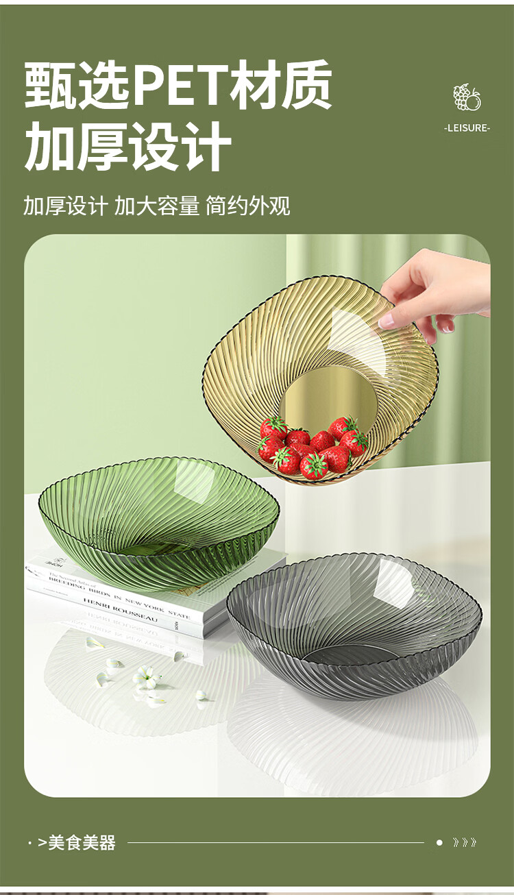Kaooseen水果盘家用客厅轻奢糖果坚果零食干果收纳盘透明果盘 轻奢大号果盘