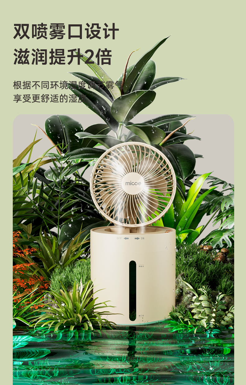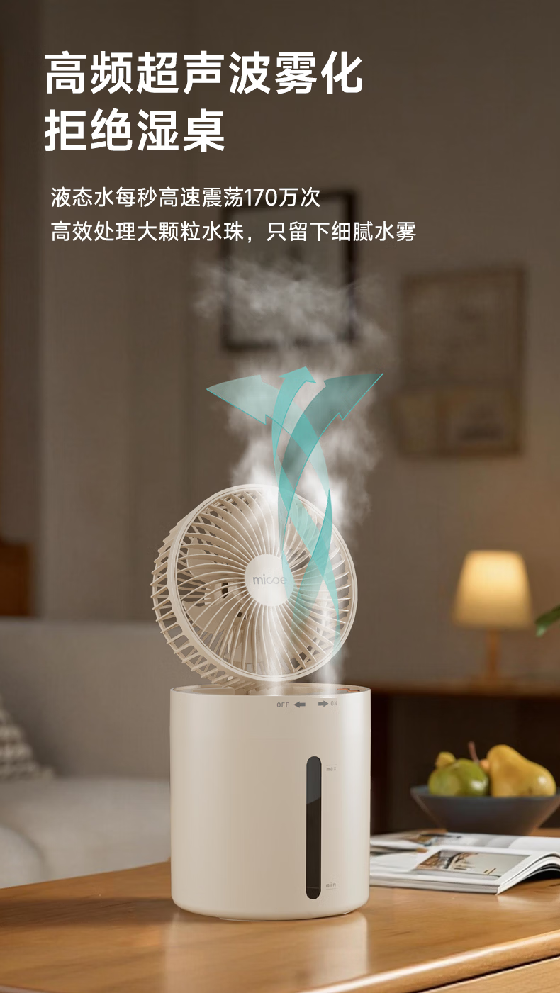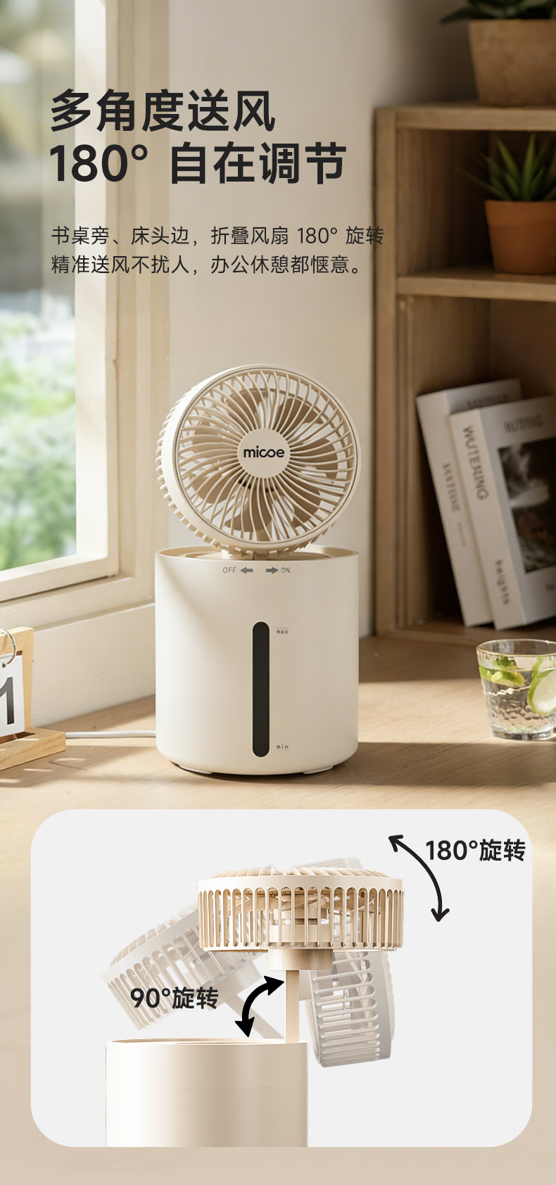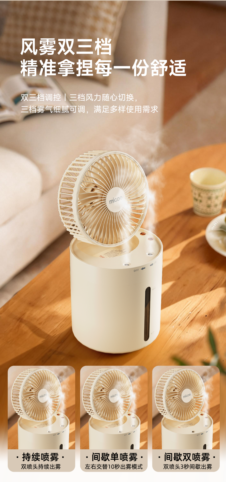 四季沐歌(MICOE)台式风扇空气循环扇电风扇落地扇小风扇桌面【加湿二合一】户外露营便携式风扇 奶杏色 双头喷雾*2L大水箱*充电便携