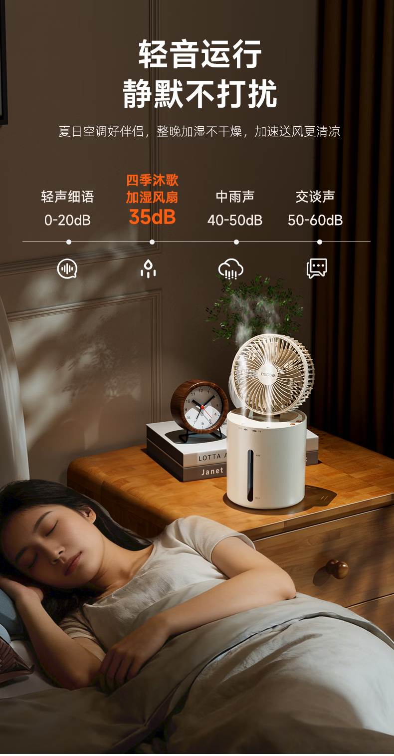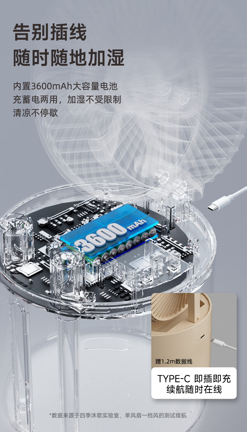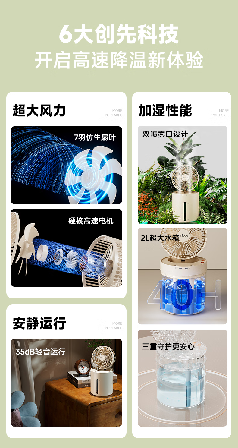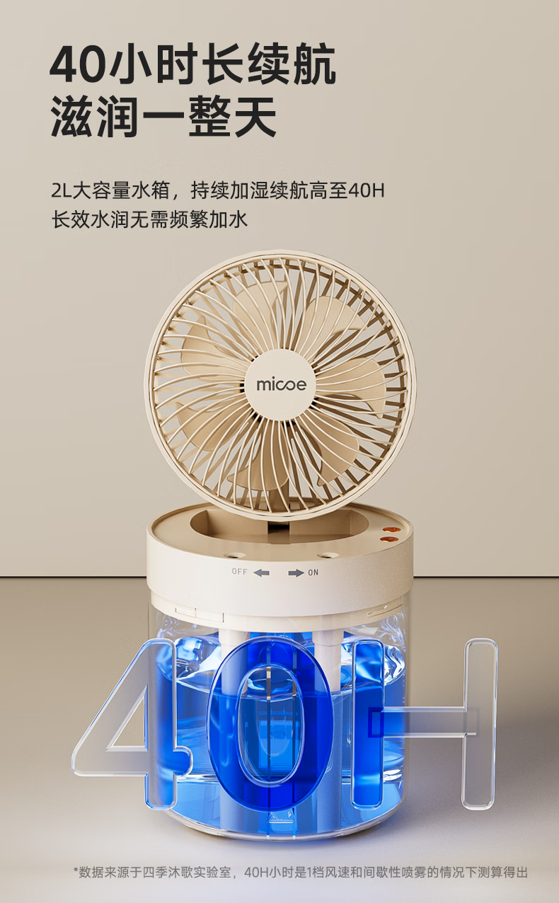四季沐歌(MICOE)台式风扇空气循环扇电风扇落地扇小风扇桌面【加湿二合一】户外露营便携式风扇 奶杏色 双头喷雾*2L大水箱*充电便携