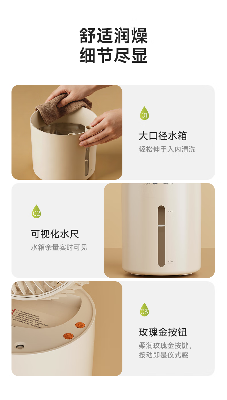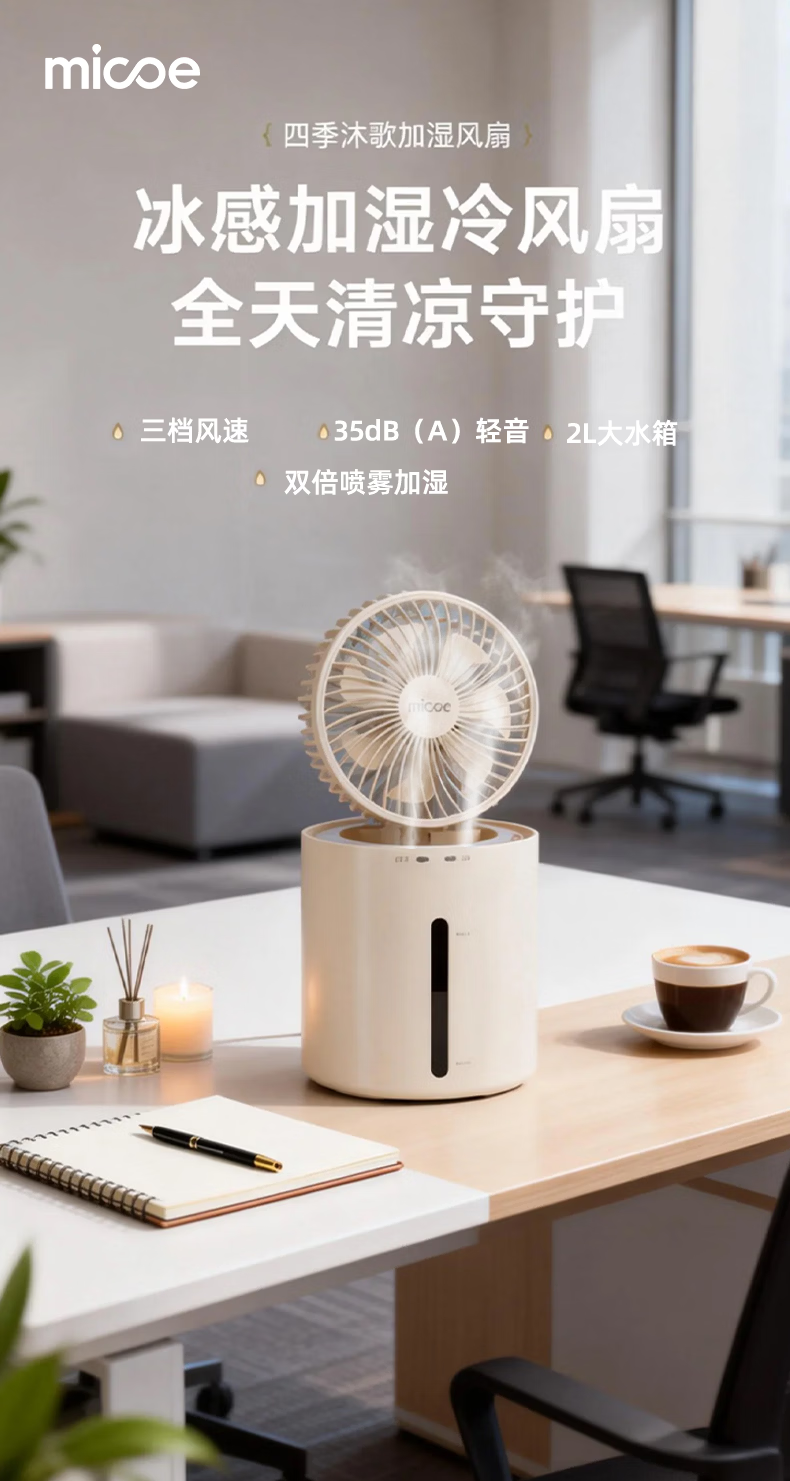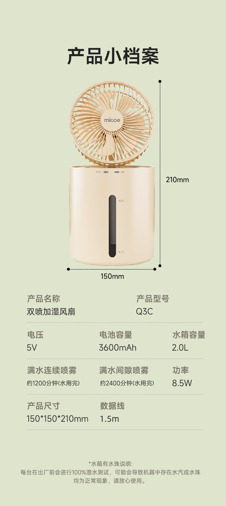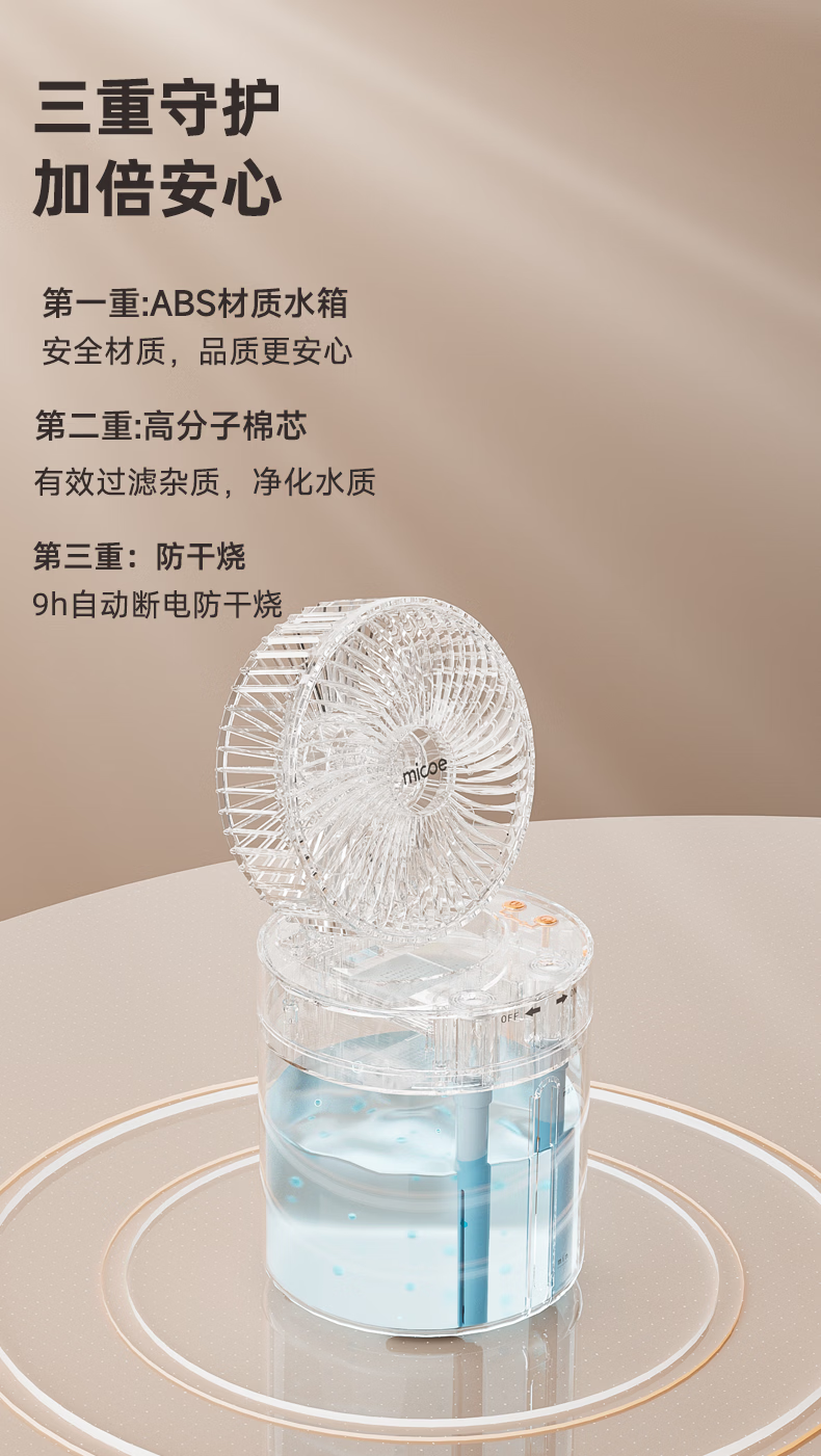 四季沐歌(MICOE)台式风扇空气循环扇电风扇落地扇小风扇桌面【加湿二合一】户外露营便携式风扇 奶杏色 双头喷雾*2L大水箱*充电便携