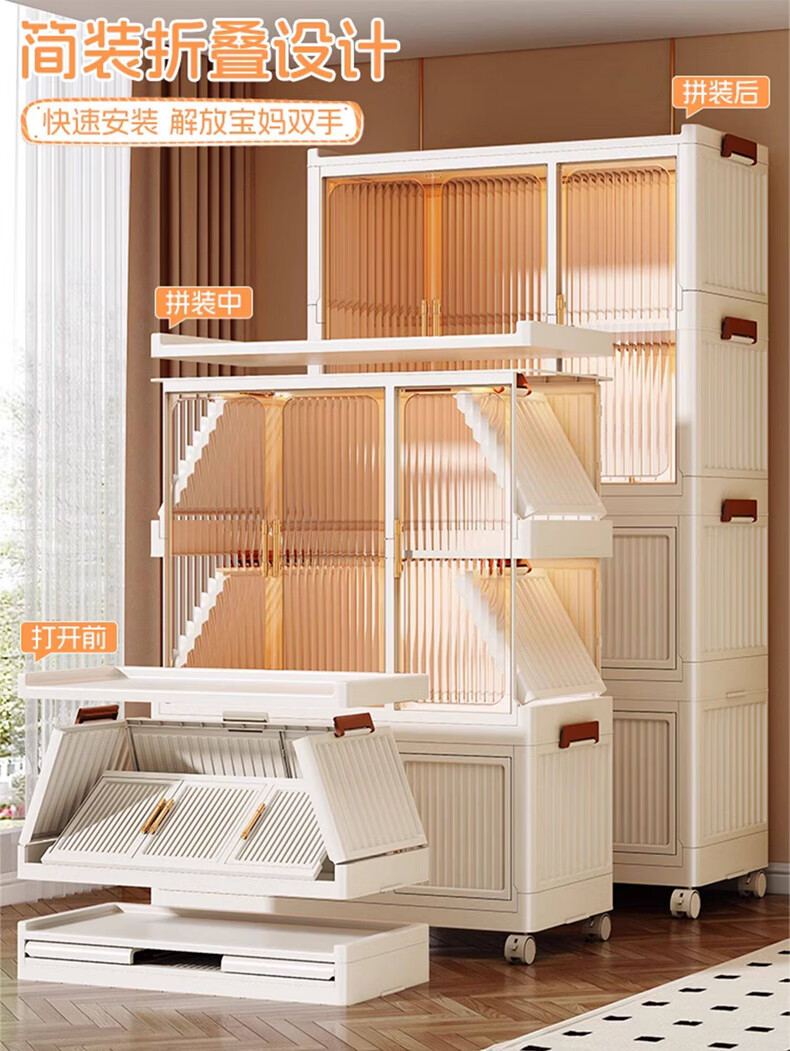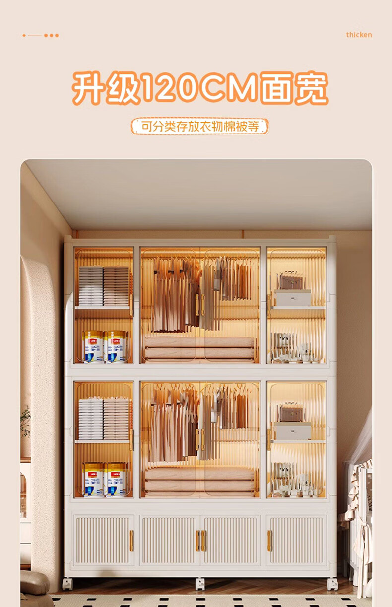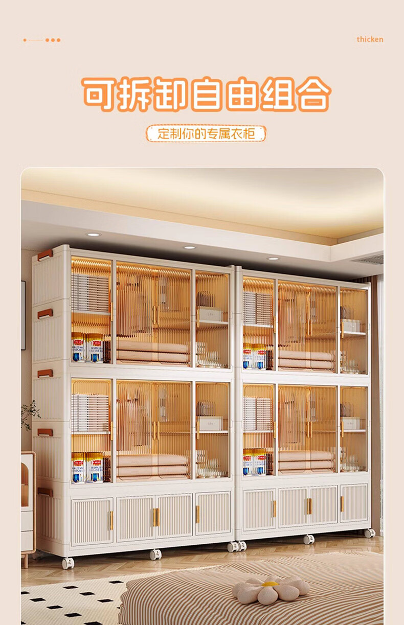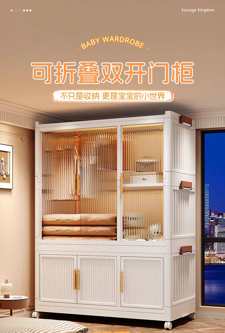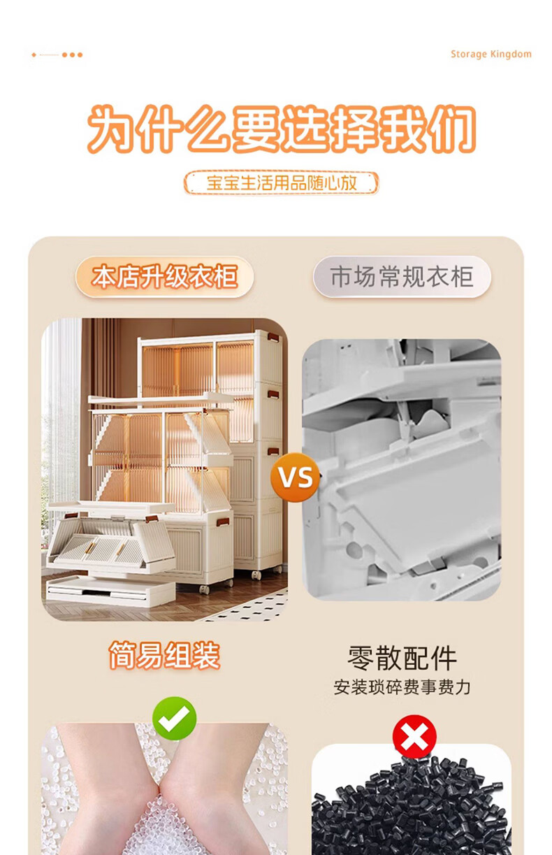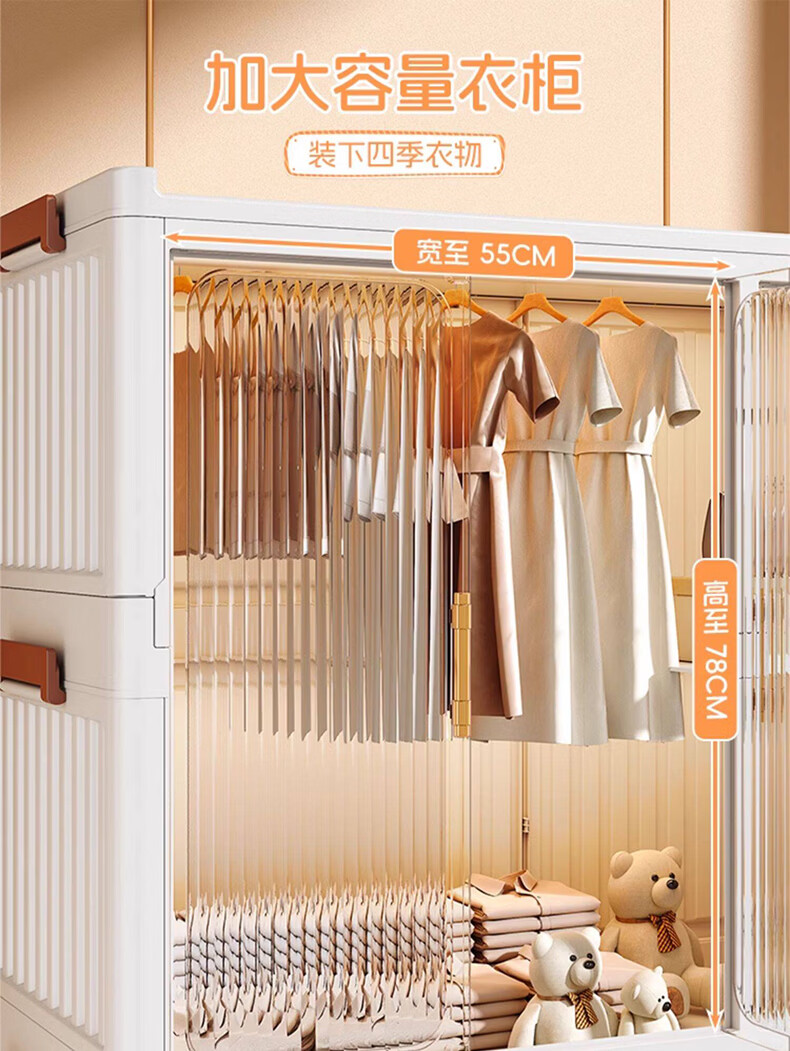 纳份爱简易儿童衣柜家用塑料加厚宝宝衣橱婴儿衣物收纳柜储物柜成人衣橱 【90cm款】1挂衣+2大格+4中格 德邦快递送货上门