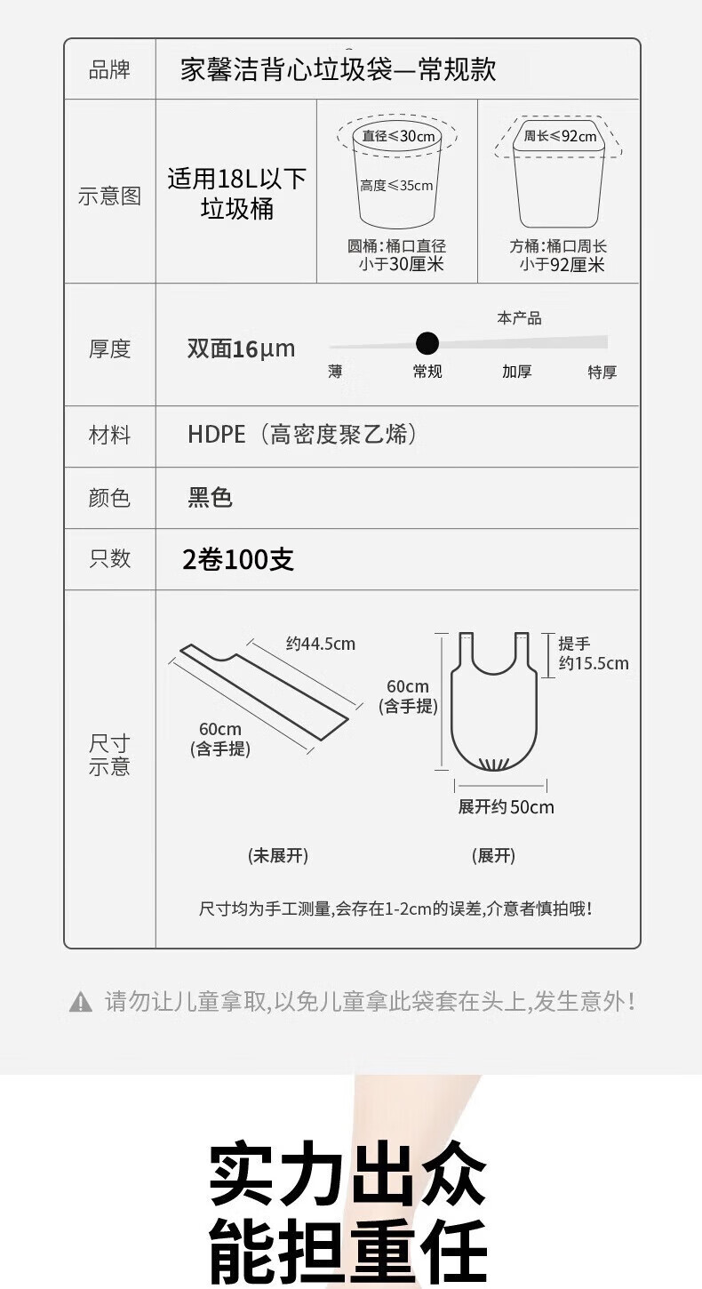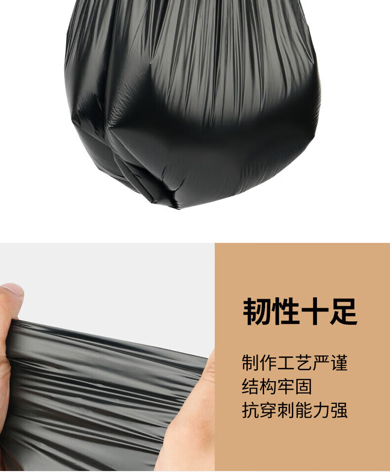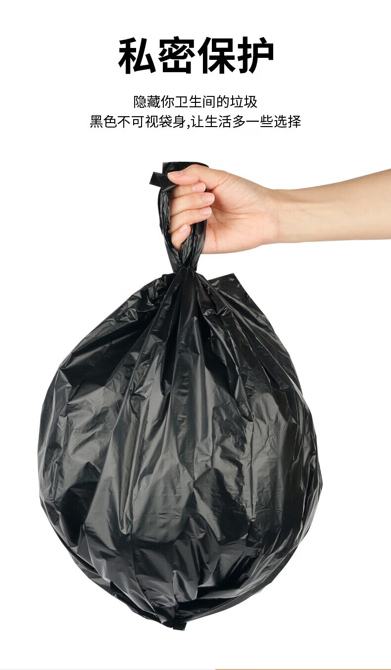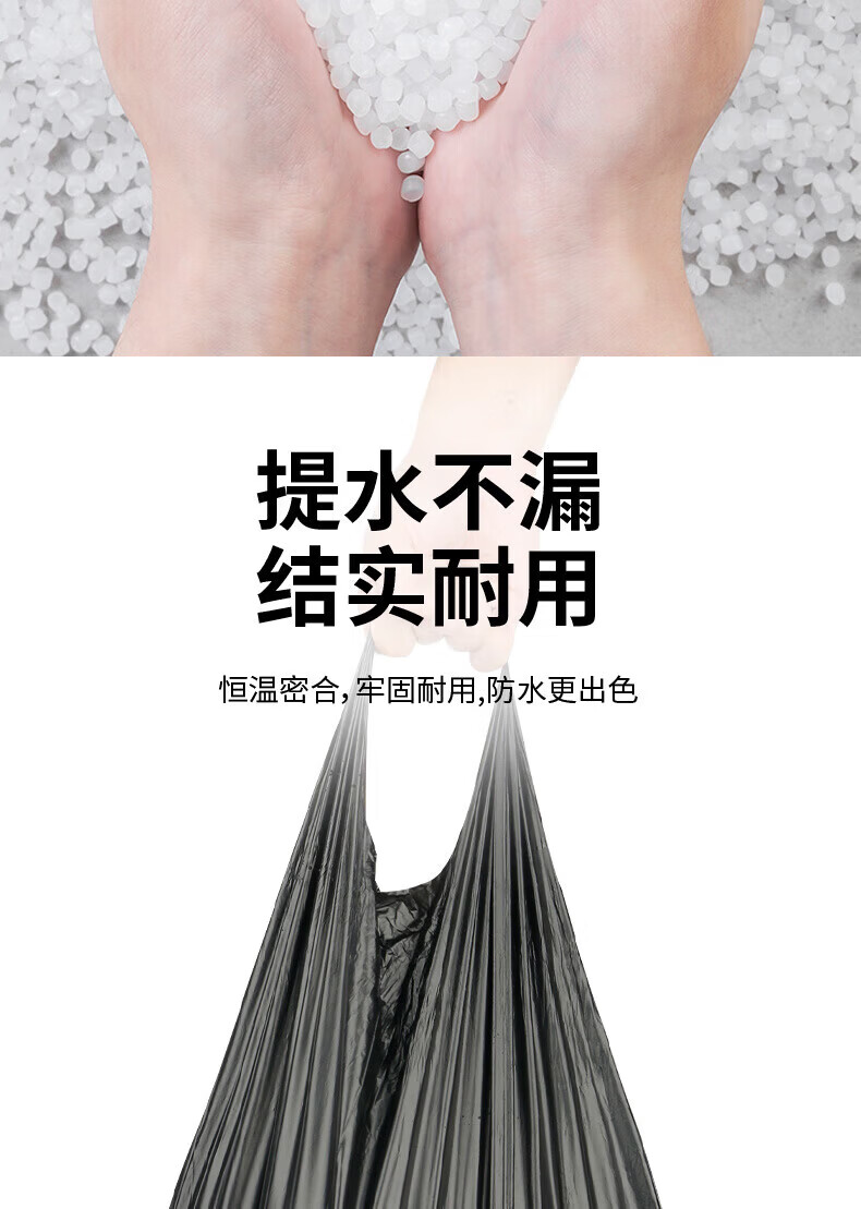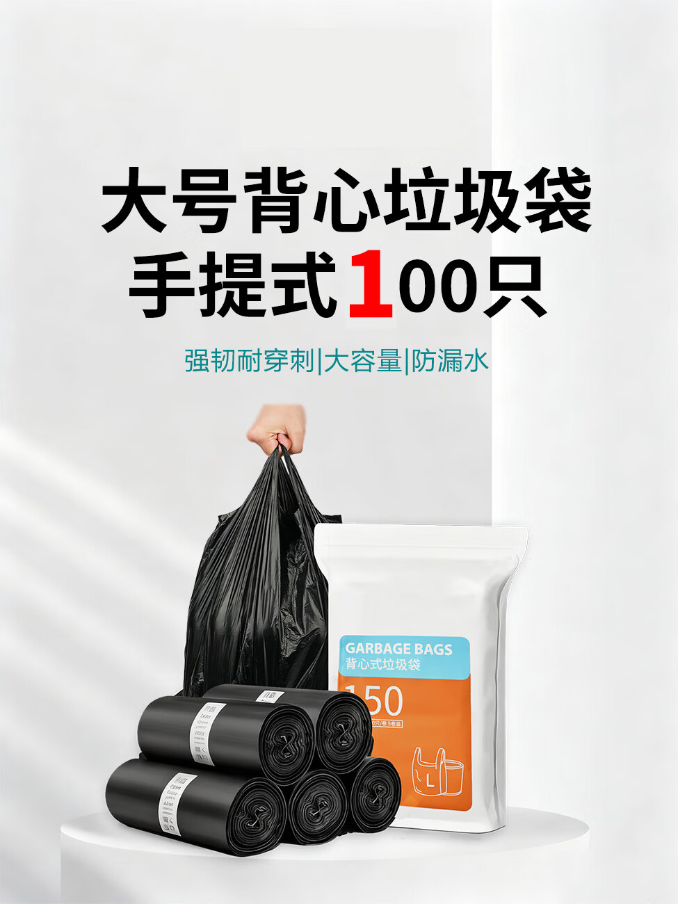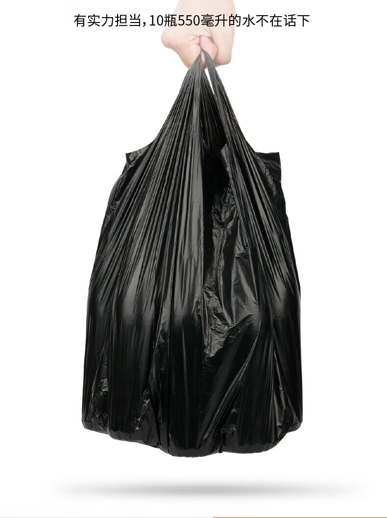 溥畔背心手提垃圾袋家用大号厨房宿舍黑色加厚塑料袋 背心垃圾袋 【2卷】共100支背心垃圾袋