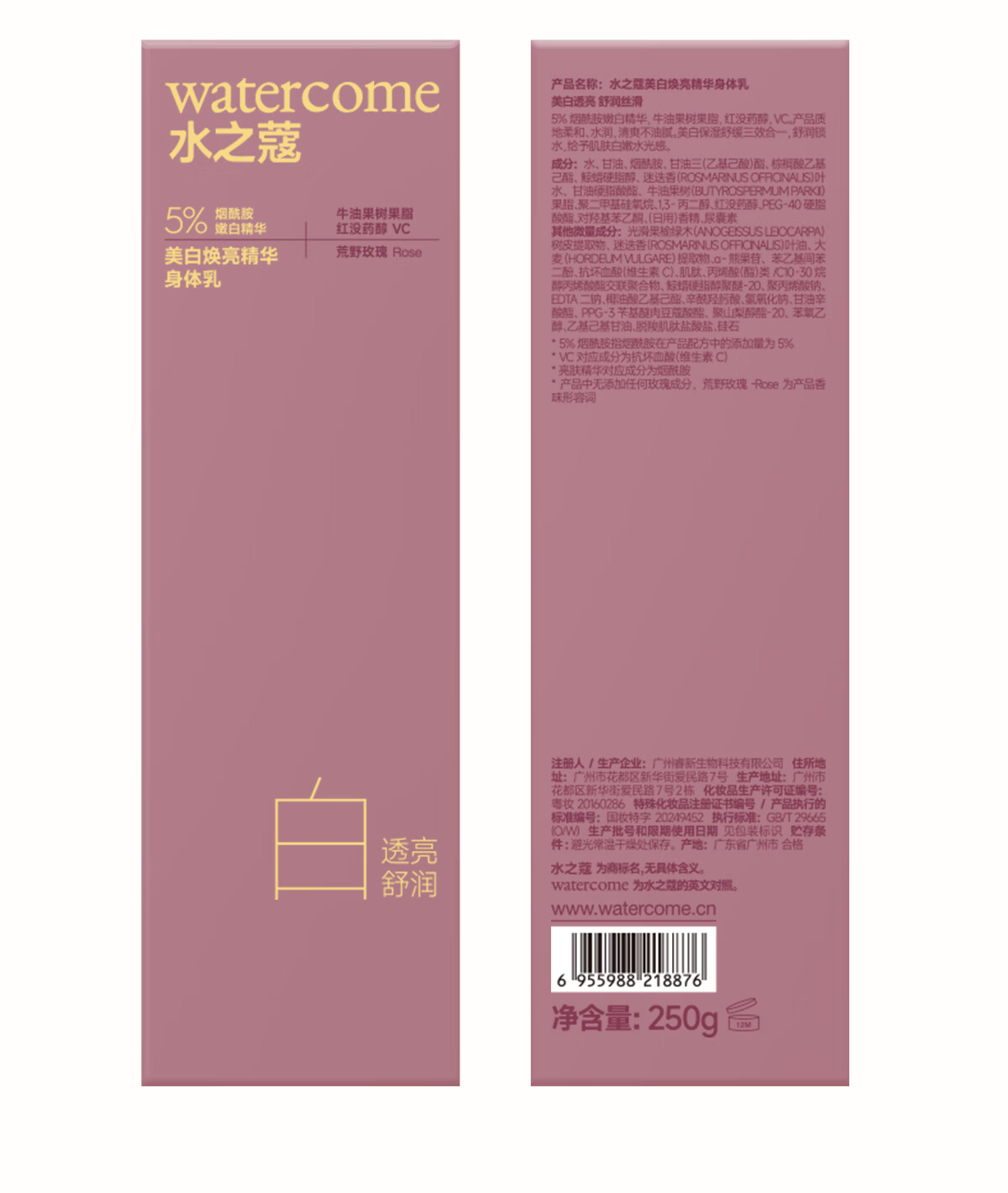 水之蔻美白身体乳250g 烟酰胺14天亮白保湿滋润干燥皮肤留香润肤乳玫瑰