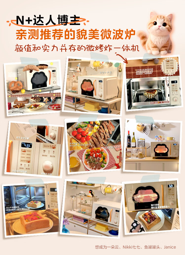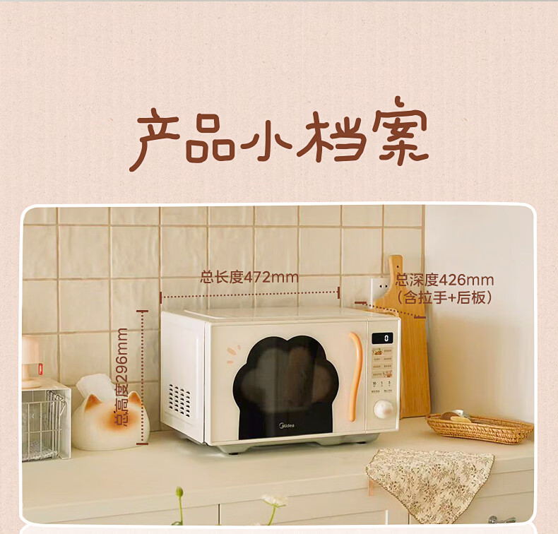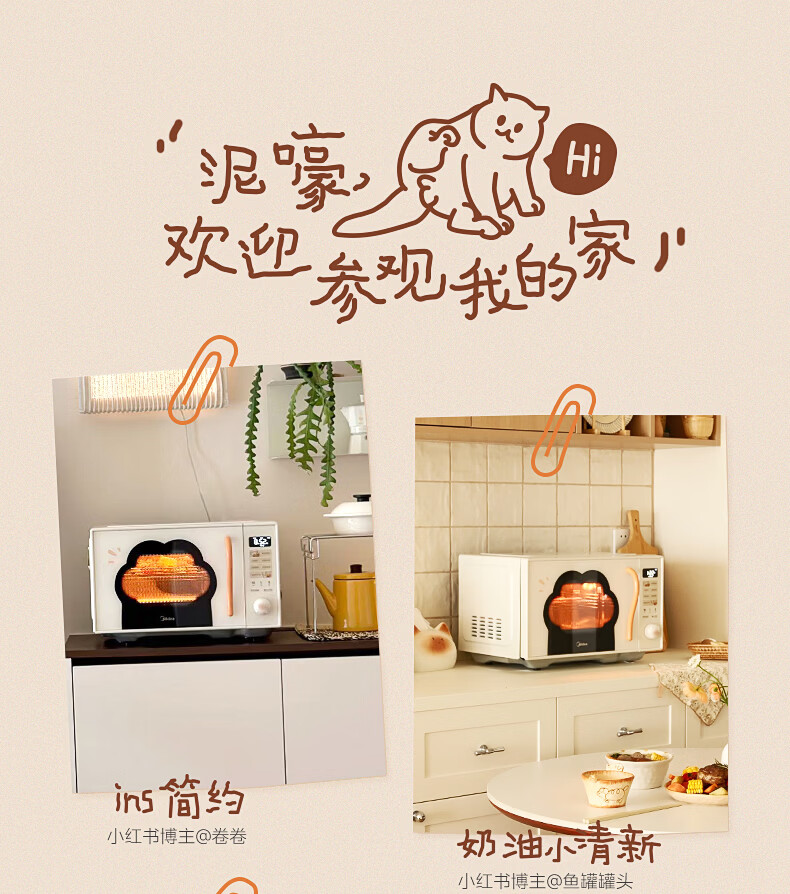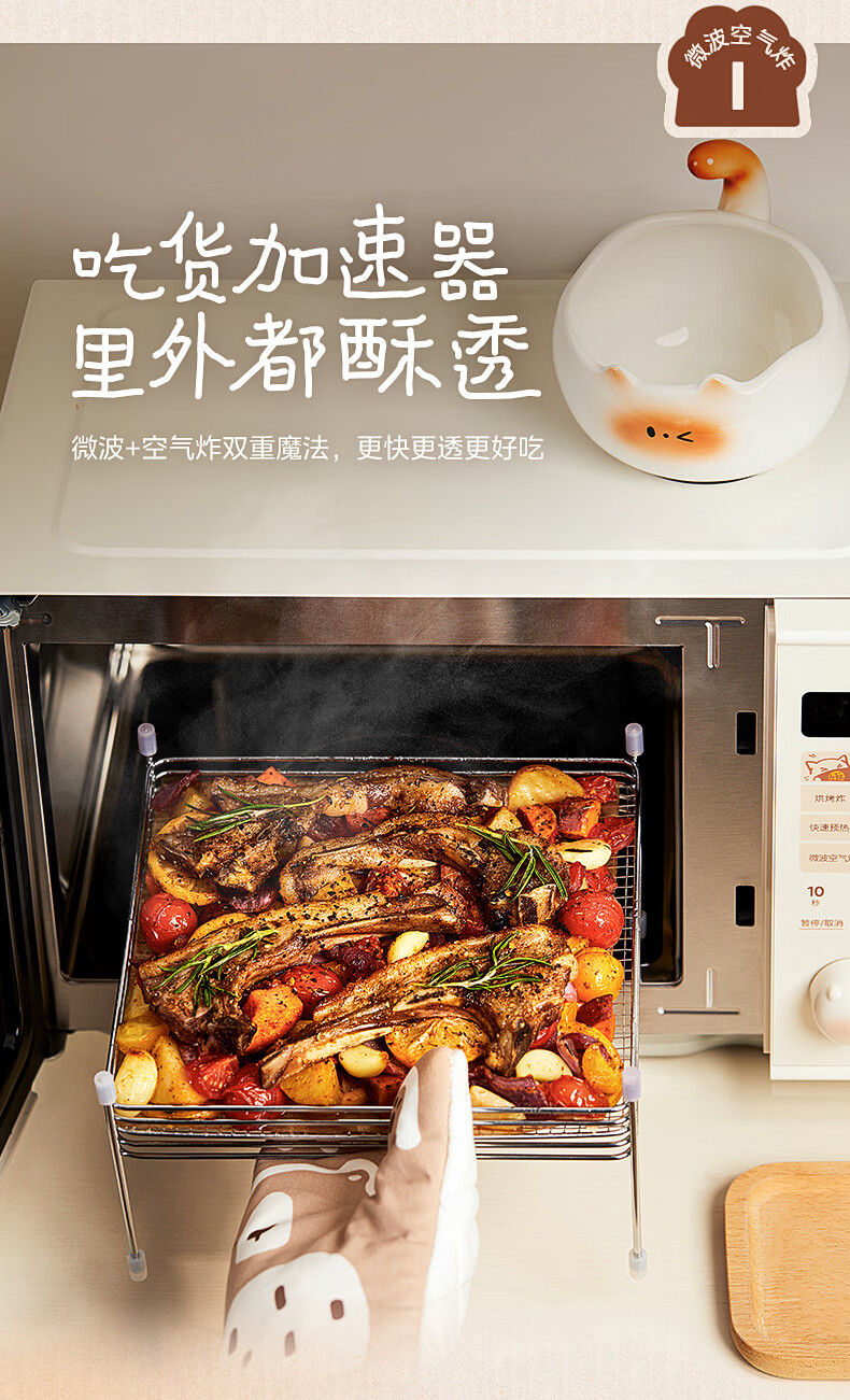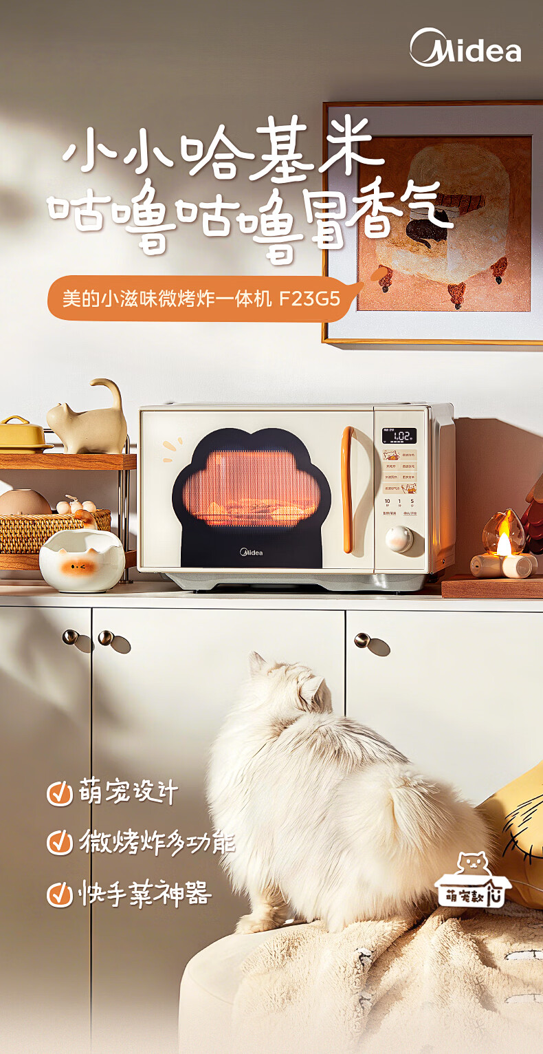 美的(Midea)小滋味微波炉微烤炸一体机萌宠猫爪外观不锈钢内胆23L家用大容量一级能效平板式热风空气炸F23G5