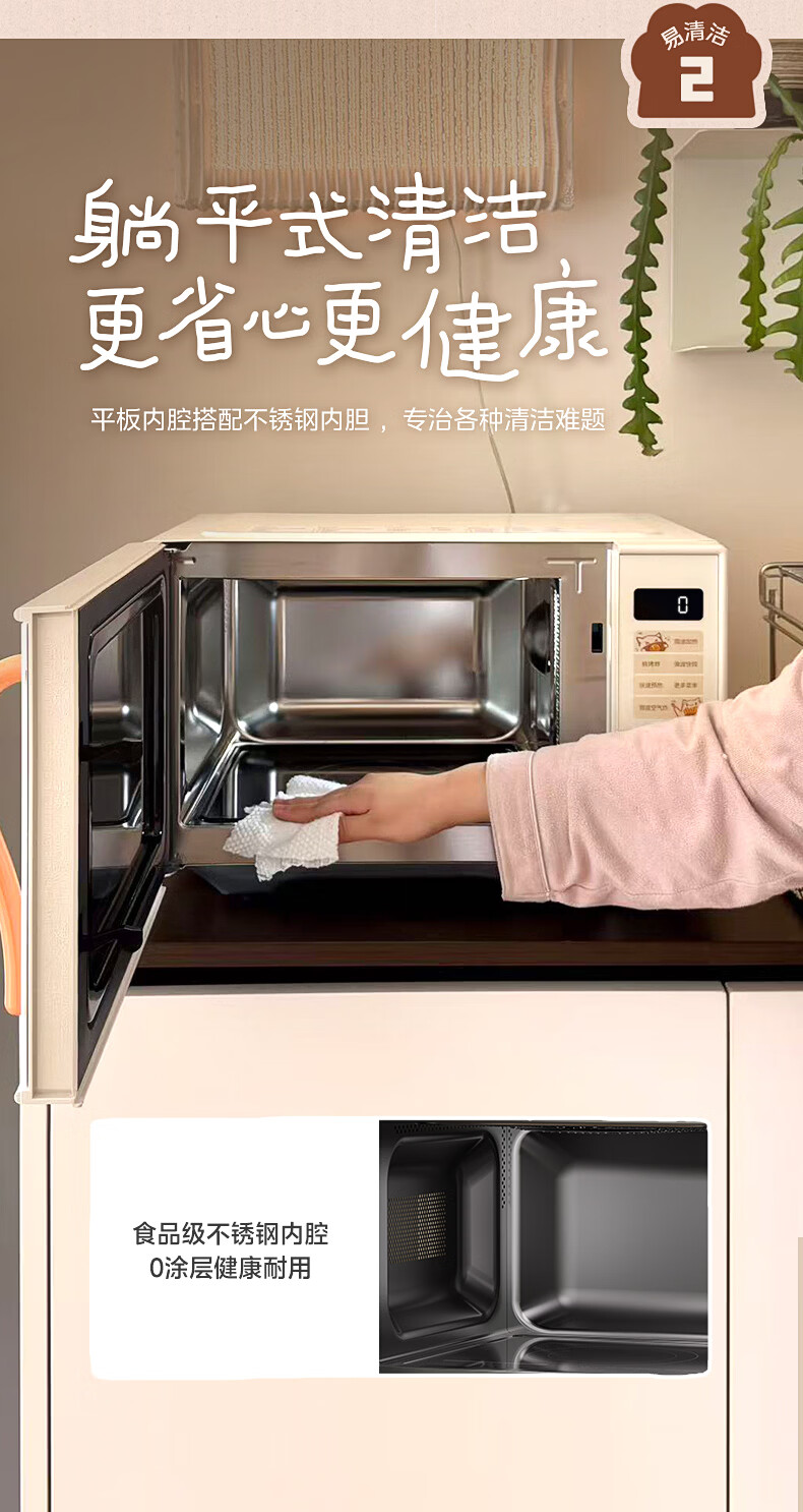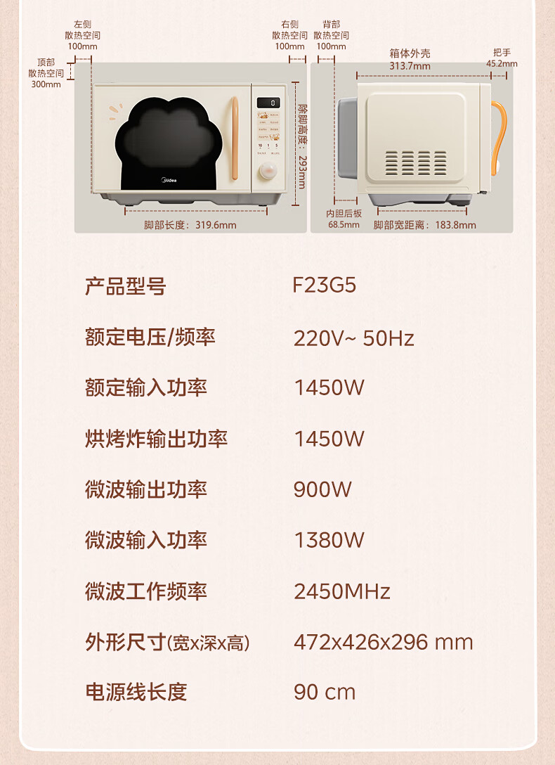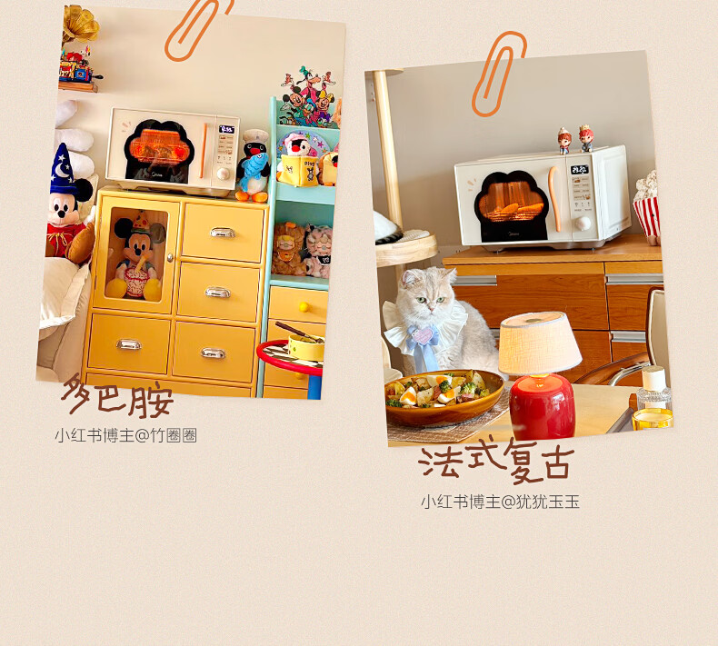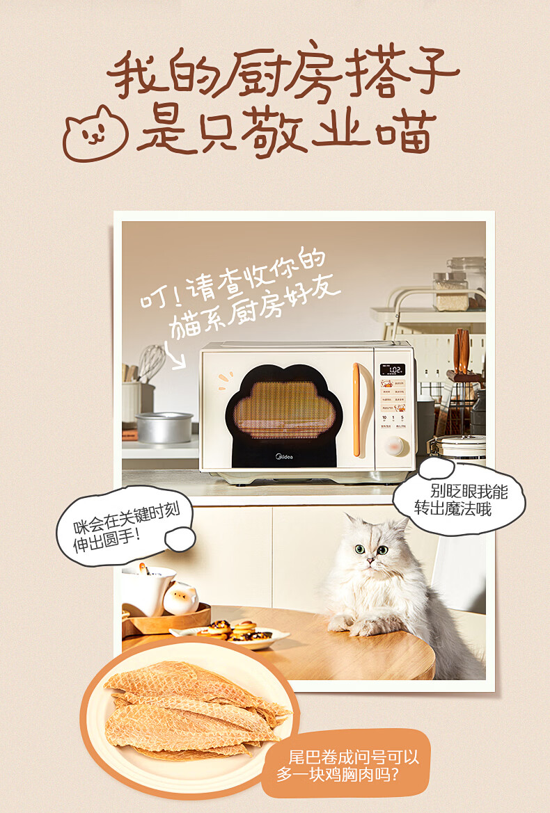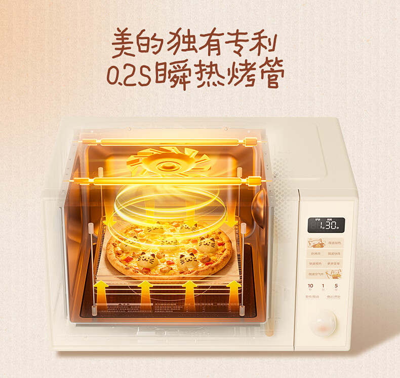 美的(Midea)小滋味微波炉微烤炸一体机萌宠猫爪外观不锈钢内胆23L家用大容量一级能效平板式热风空气炸F23G5