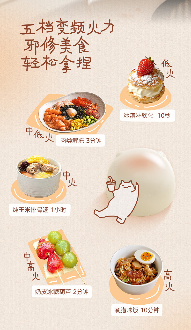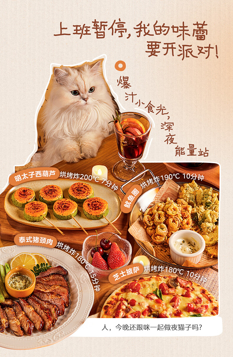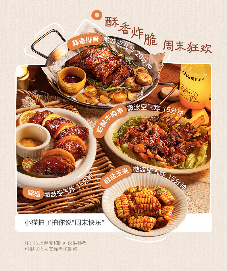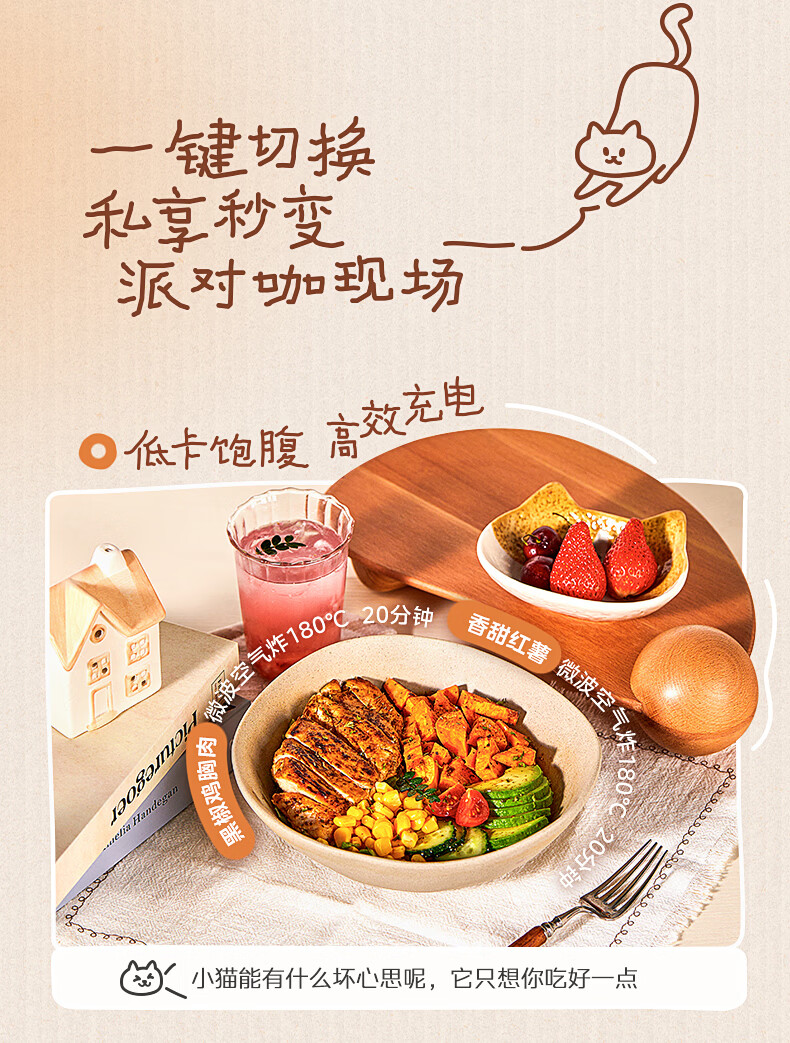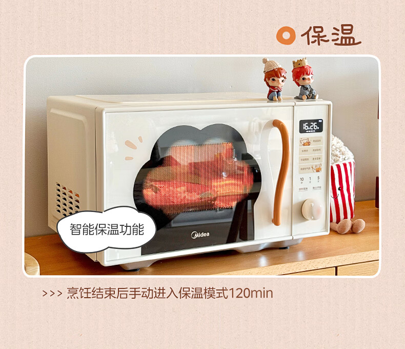 美的(Midea)小滋味微波炉微烤炸一体机萌宠猫爪外观不锈钢内胆23L家用大容量一级能效平板式热风空气炸F23G5