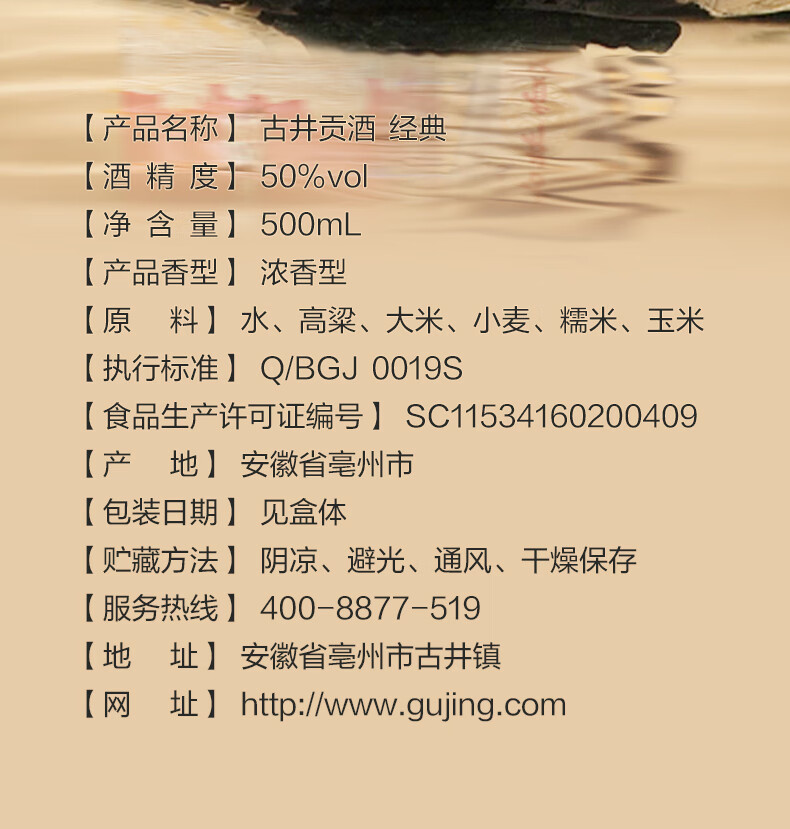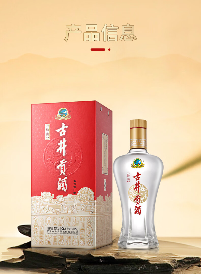 古井贡酒 经典 浓香型白酒 50度 500mL*6瓶 整箱装 口粮酒