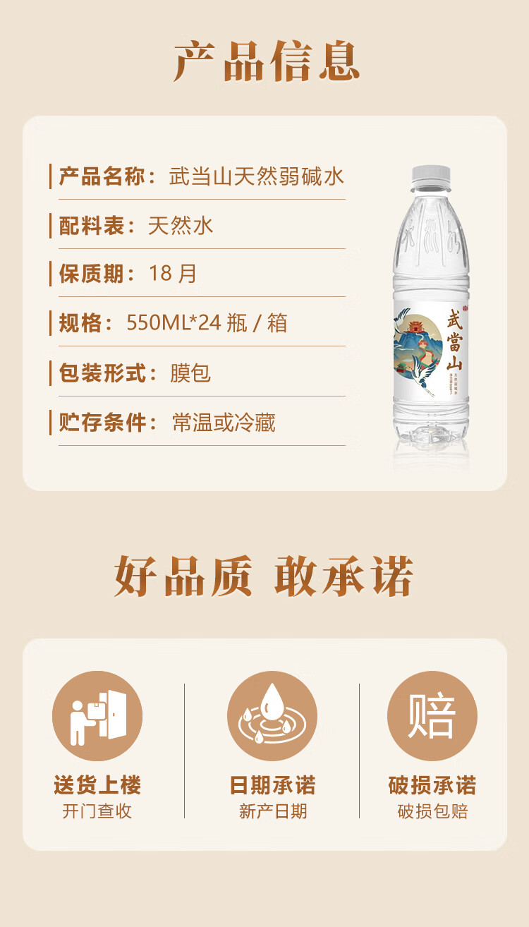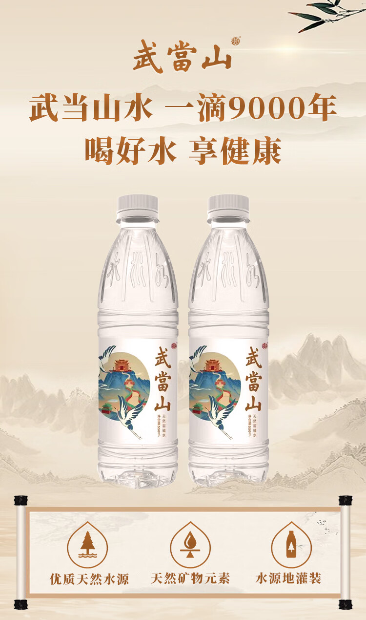 武当山 饮用水 天然弱碱水550ml*24瓶塑料膜装 丹江口深层水源 天然弱碱水550ml*24瓶