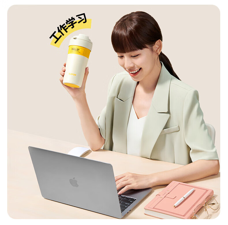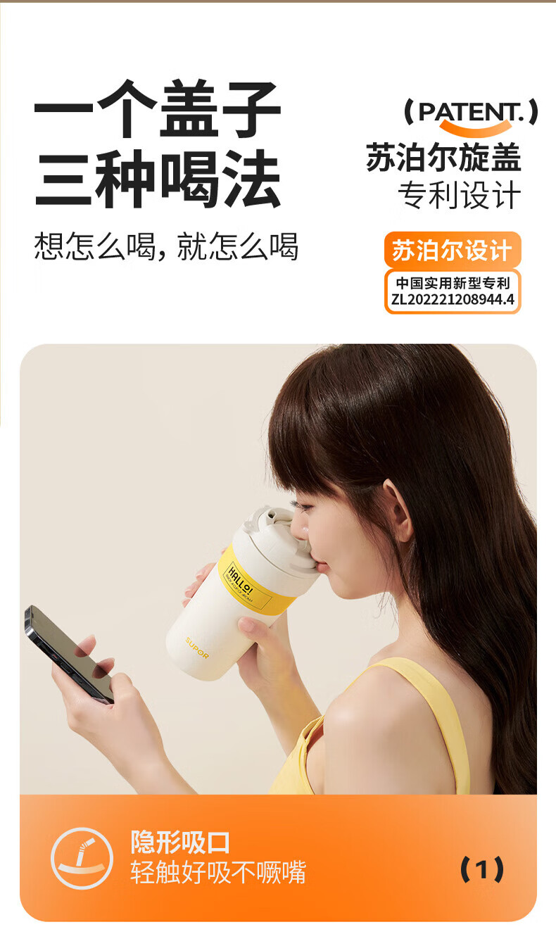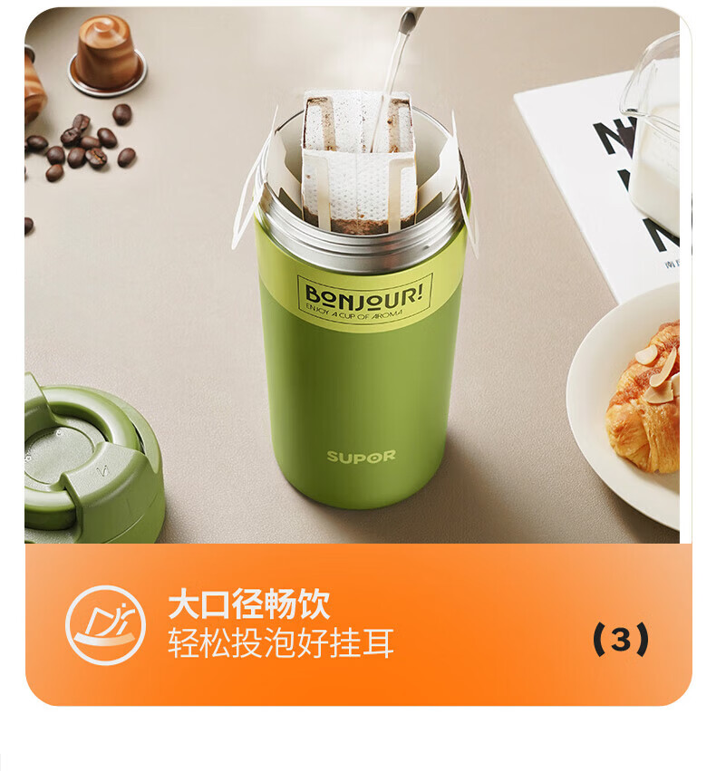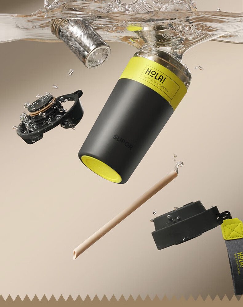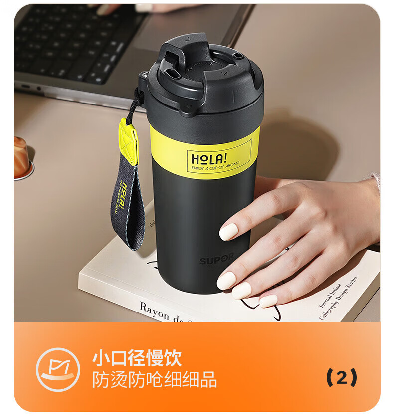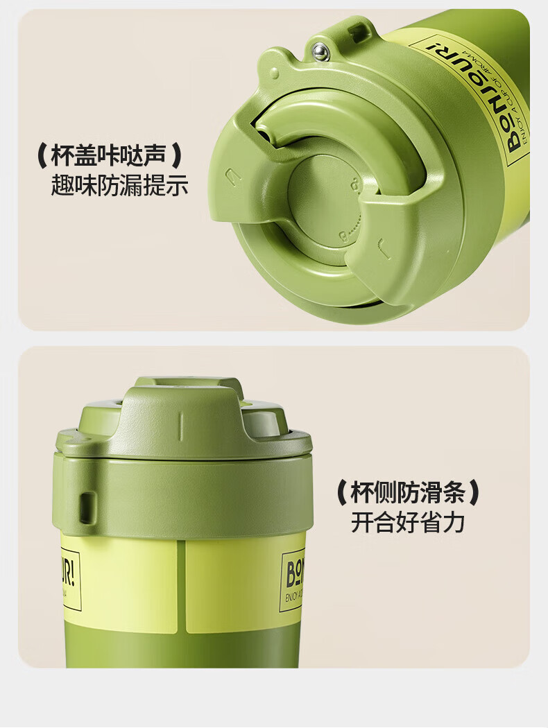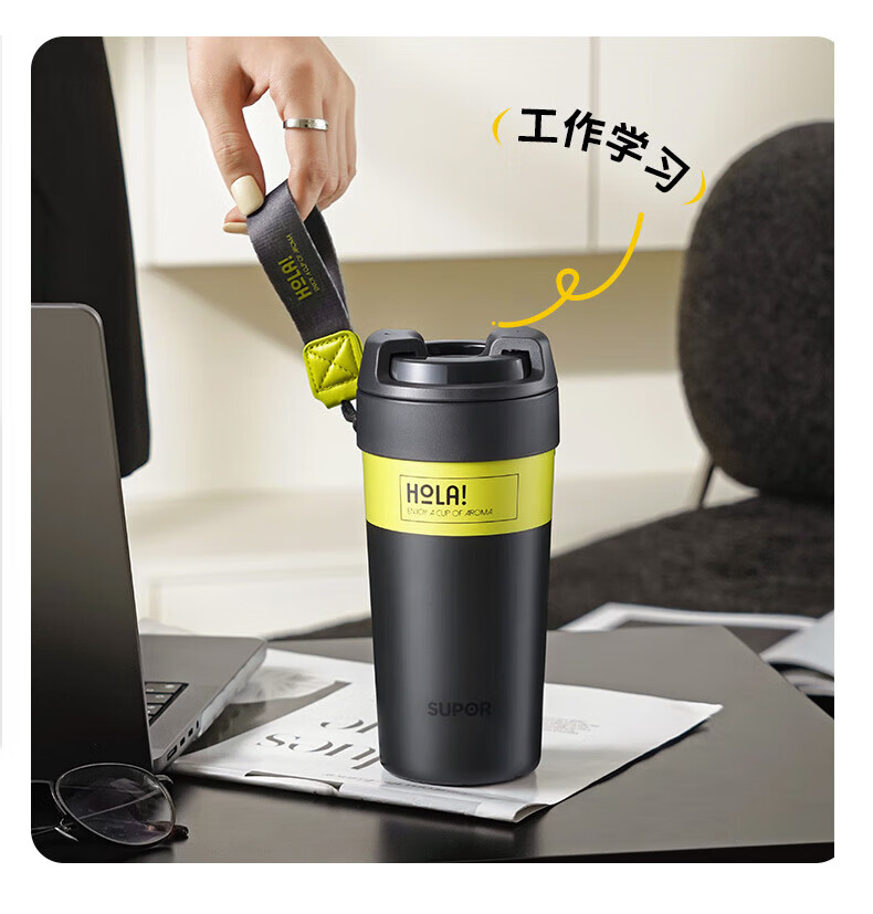 苏泊尔(SUPOR)保温杯咖啡杯男女款抗菌陶瓷覆层水杯大容量带吸管高颜值杯子 旷野绿500ml