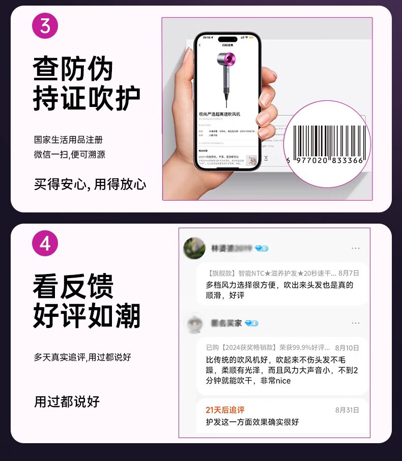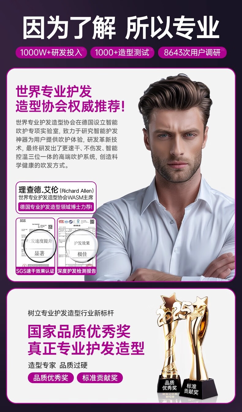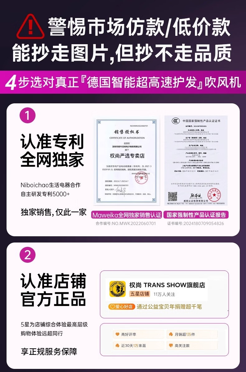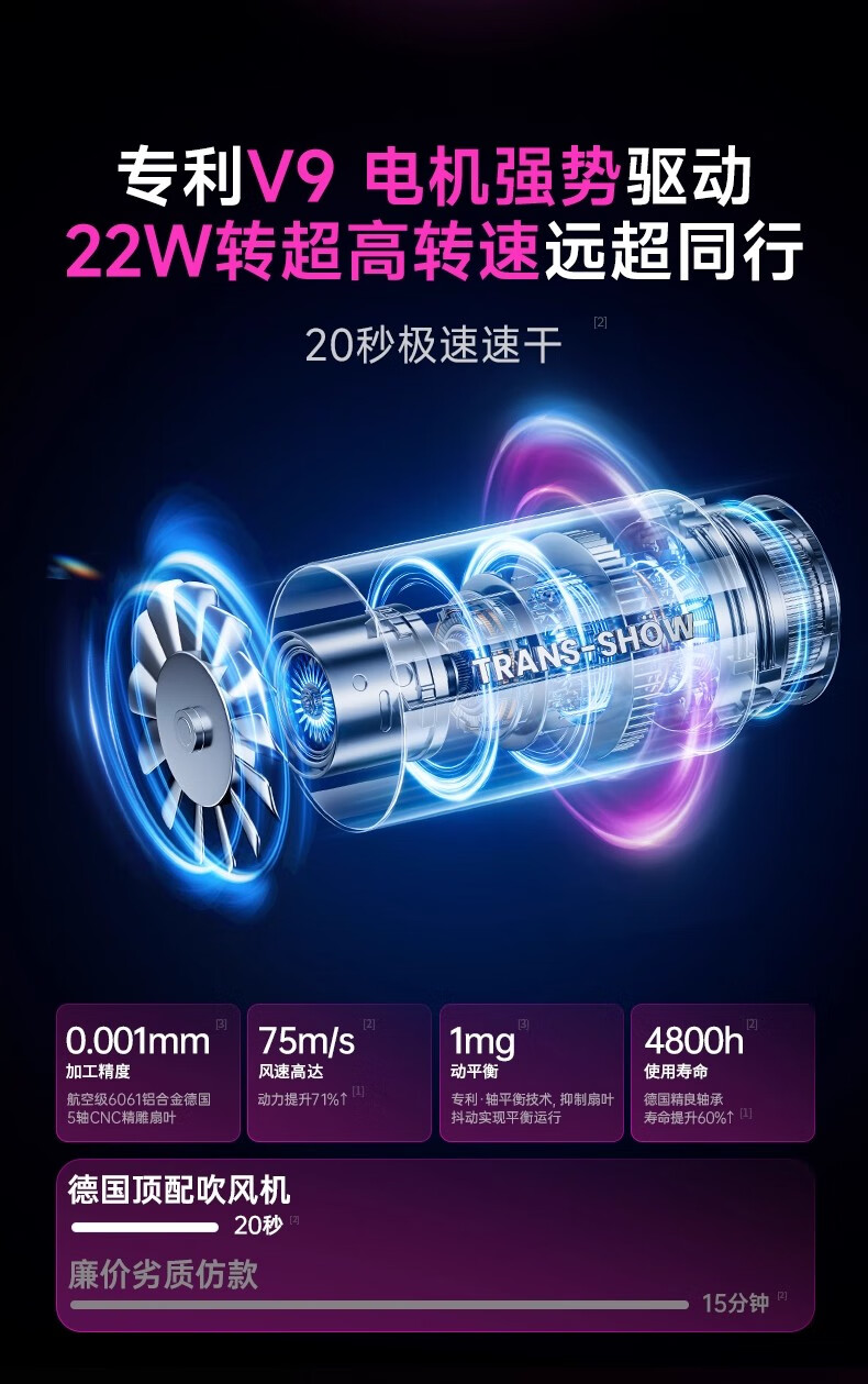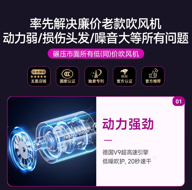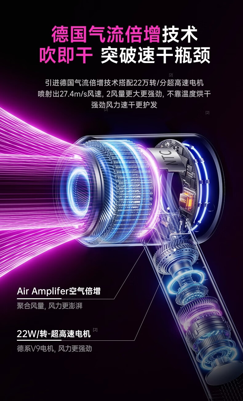 权尚【德国品牌丨新款】高速吹风机家用静音负离子大功率不伤发电吹风大风力吹风筒速干风筒礼物 【德国旗舰】智能NTC丨滋养护发丨20秒速干不伤发