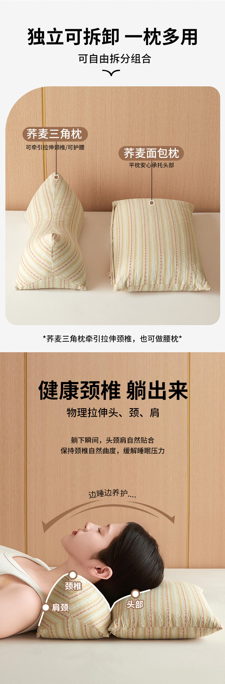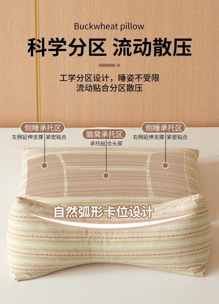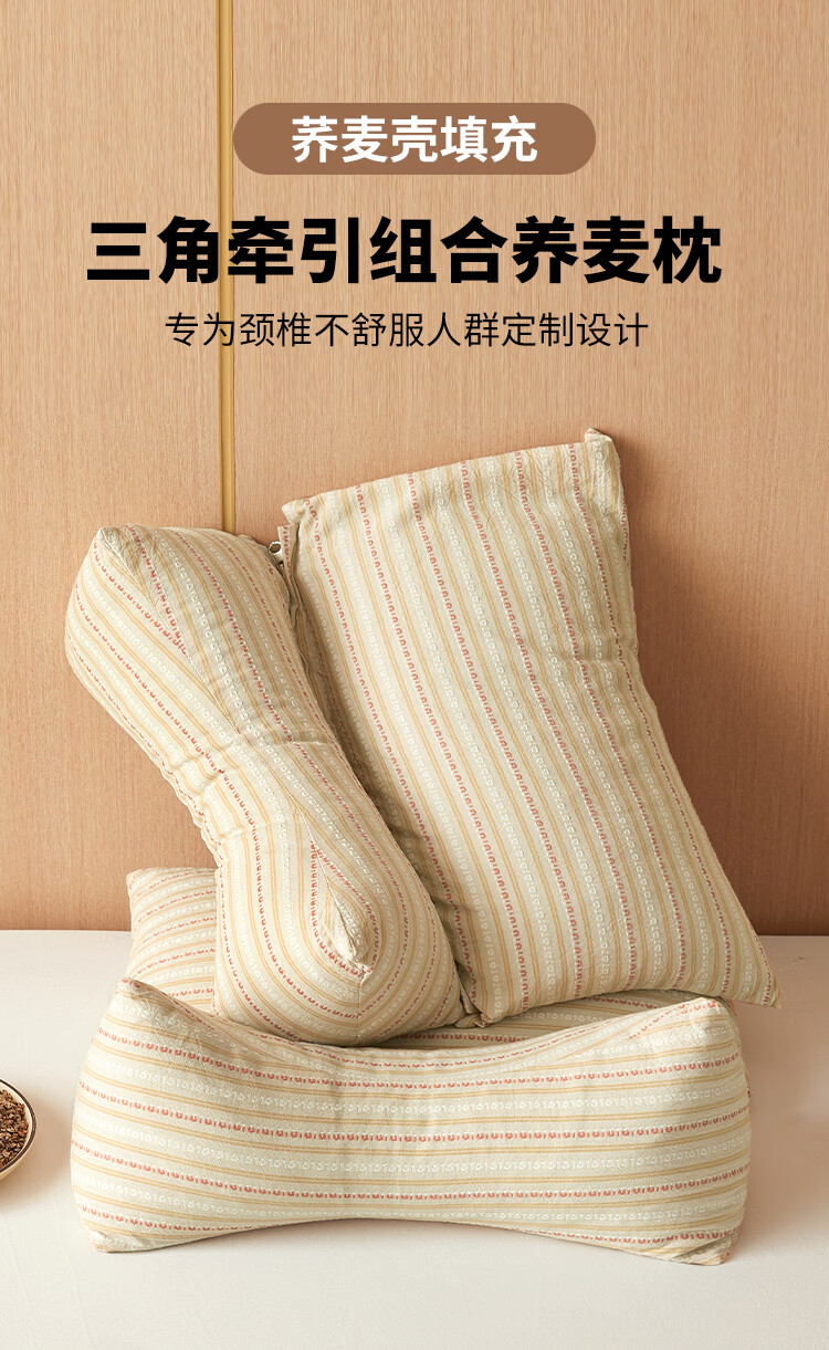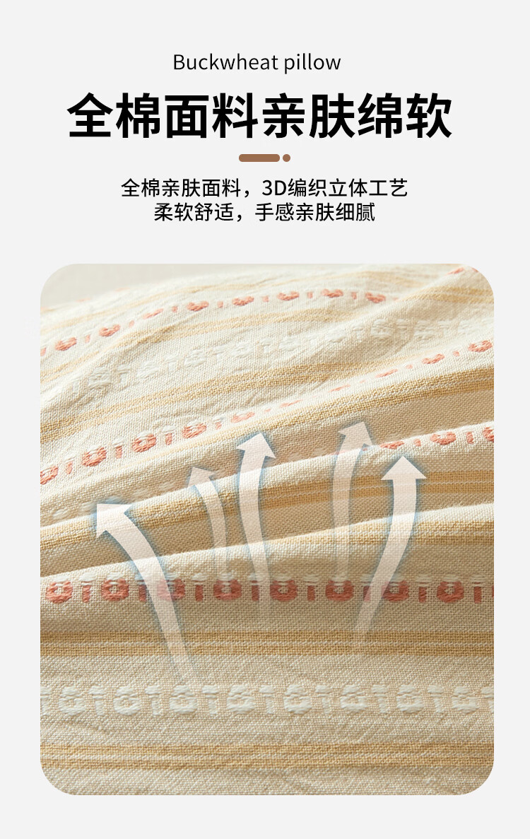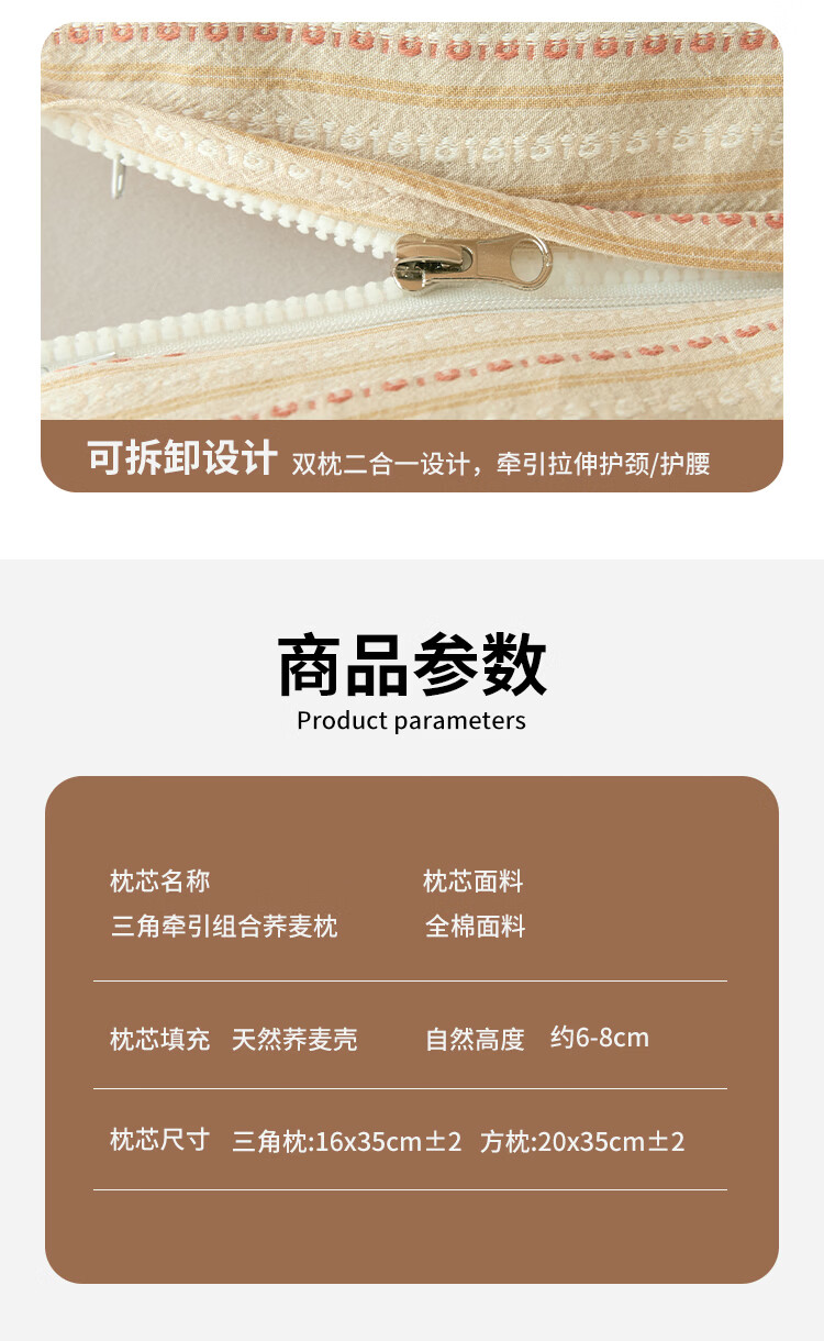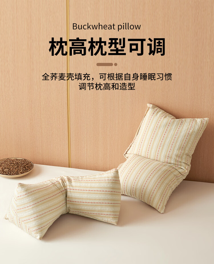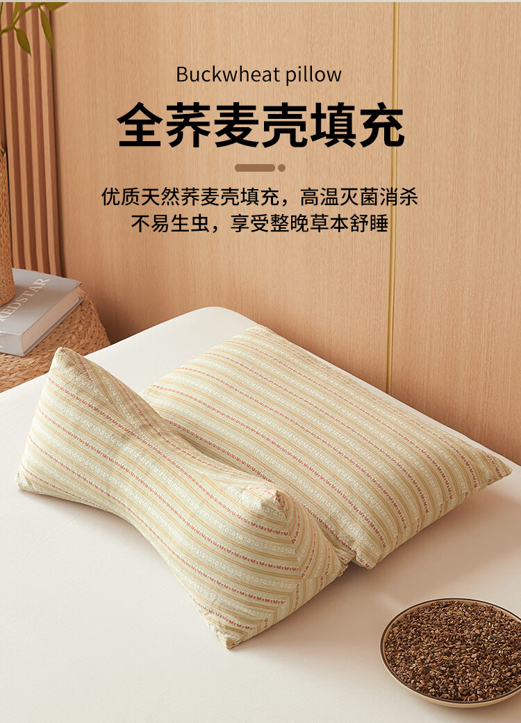 南极人(Nanjiren)全棉荞麦枕头枕头护颈枕颈椎病深度睡眠专用枕芯一对单双人颈椎枕 卡其【一只装 甄选荞麦壳】 三角16*35+方枕20*35