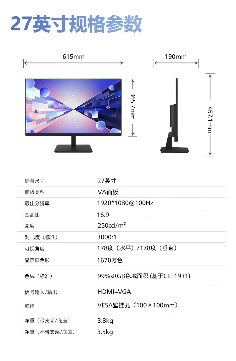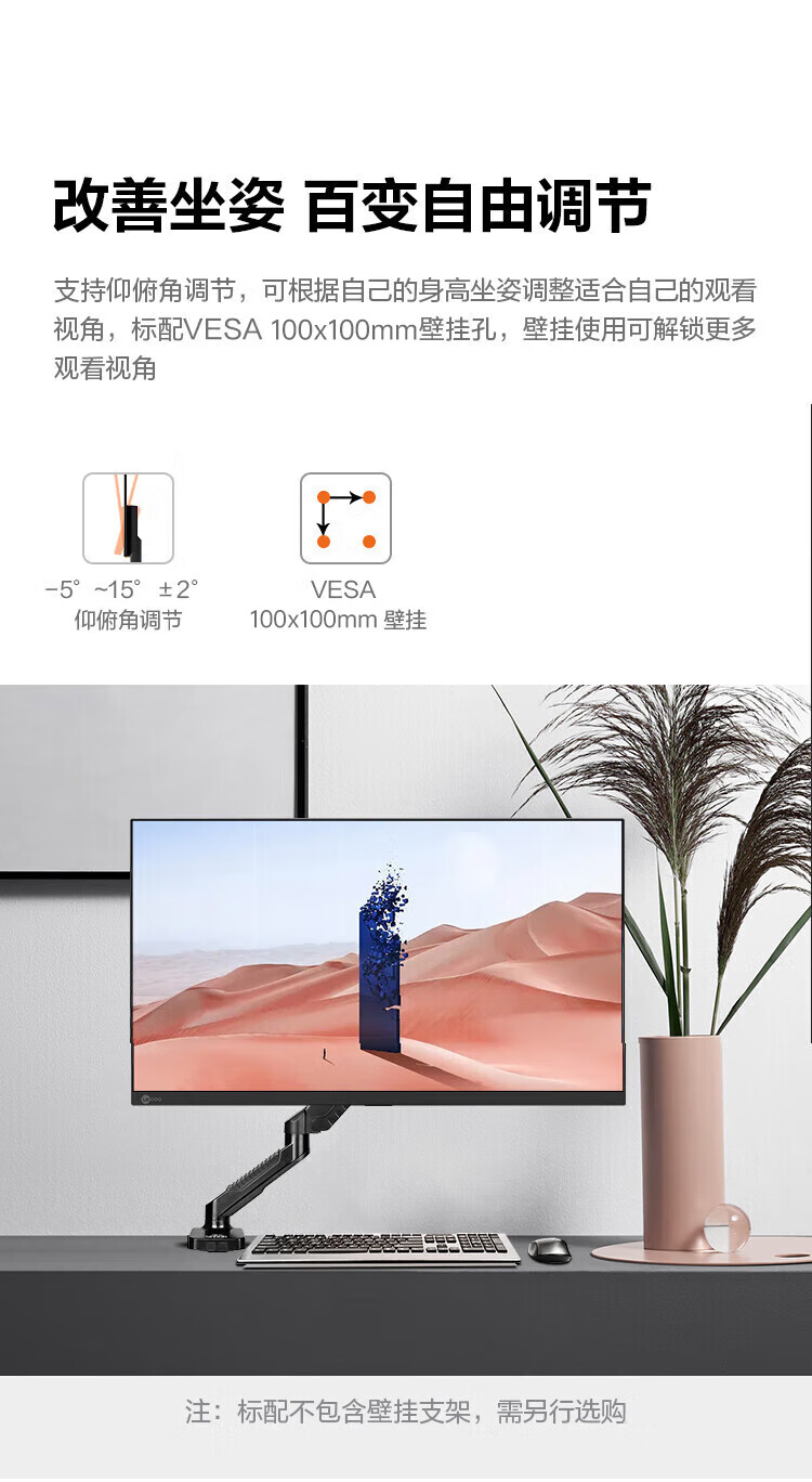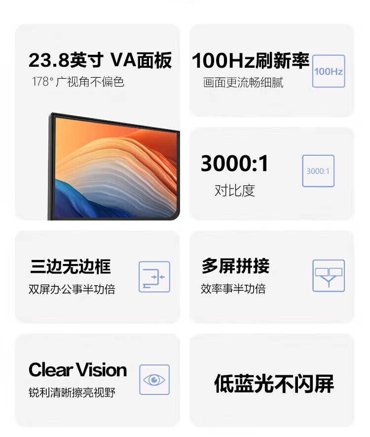 联想 23.8/27英寸显示器100Hz高刷电脑液晶屏幕1080P全高清画质办公护眼低蓝光壁挂监控电脑显示屏 23.8英寸/100Hz刷新率
