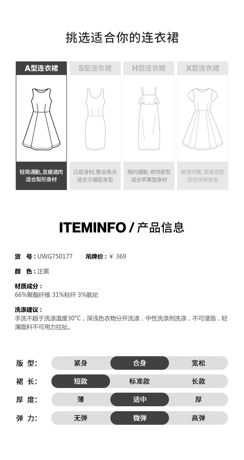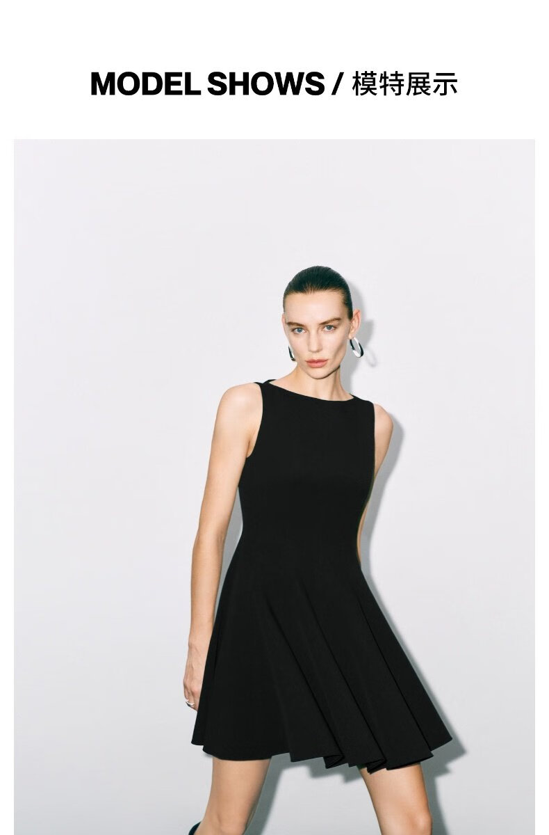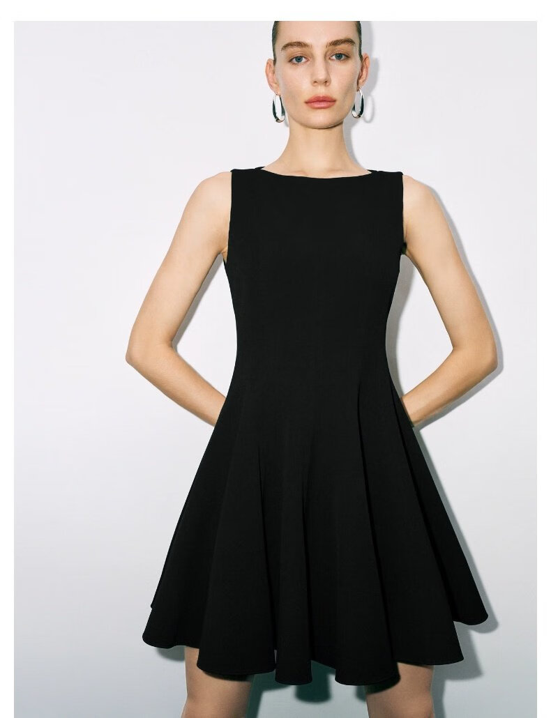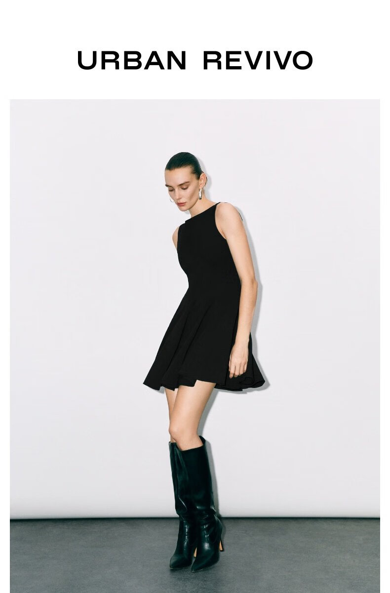 UR2025秋季新款女装法式小黑裙收腰无袖连衣裙UWG750177