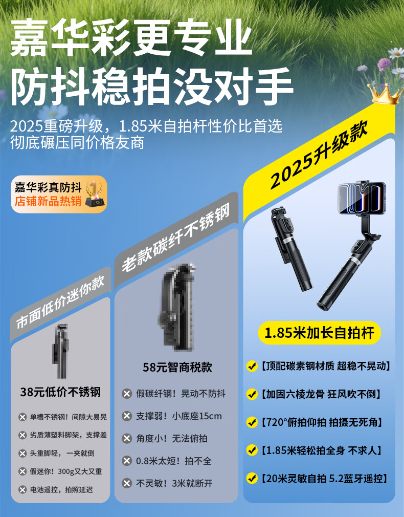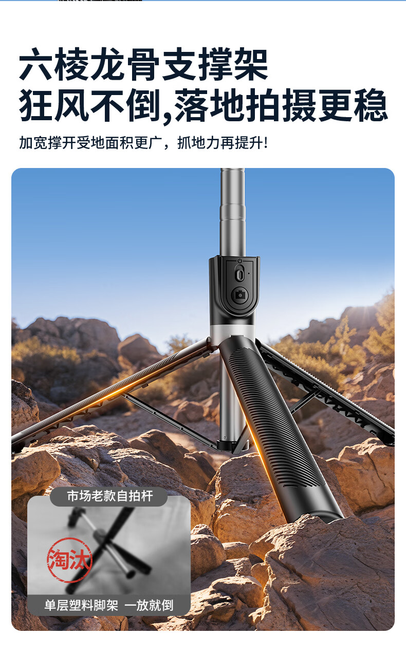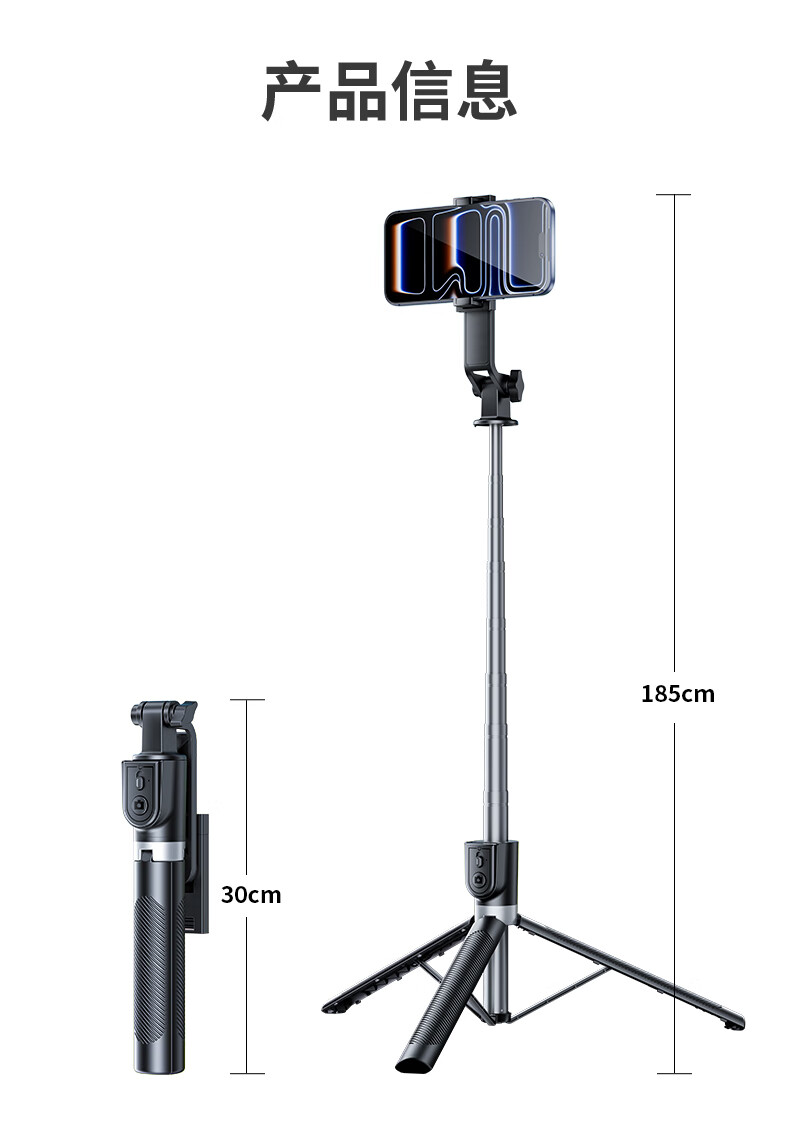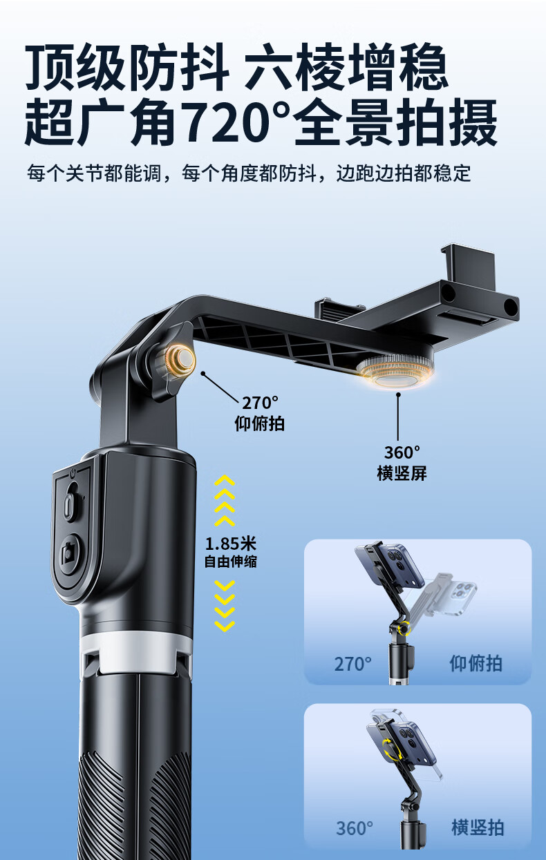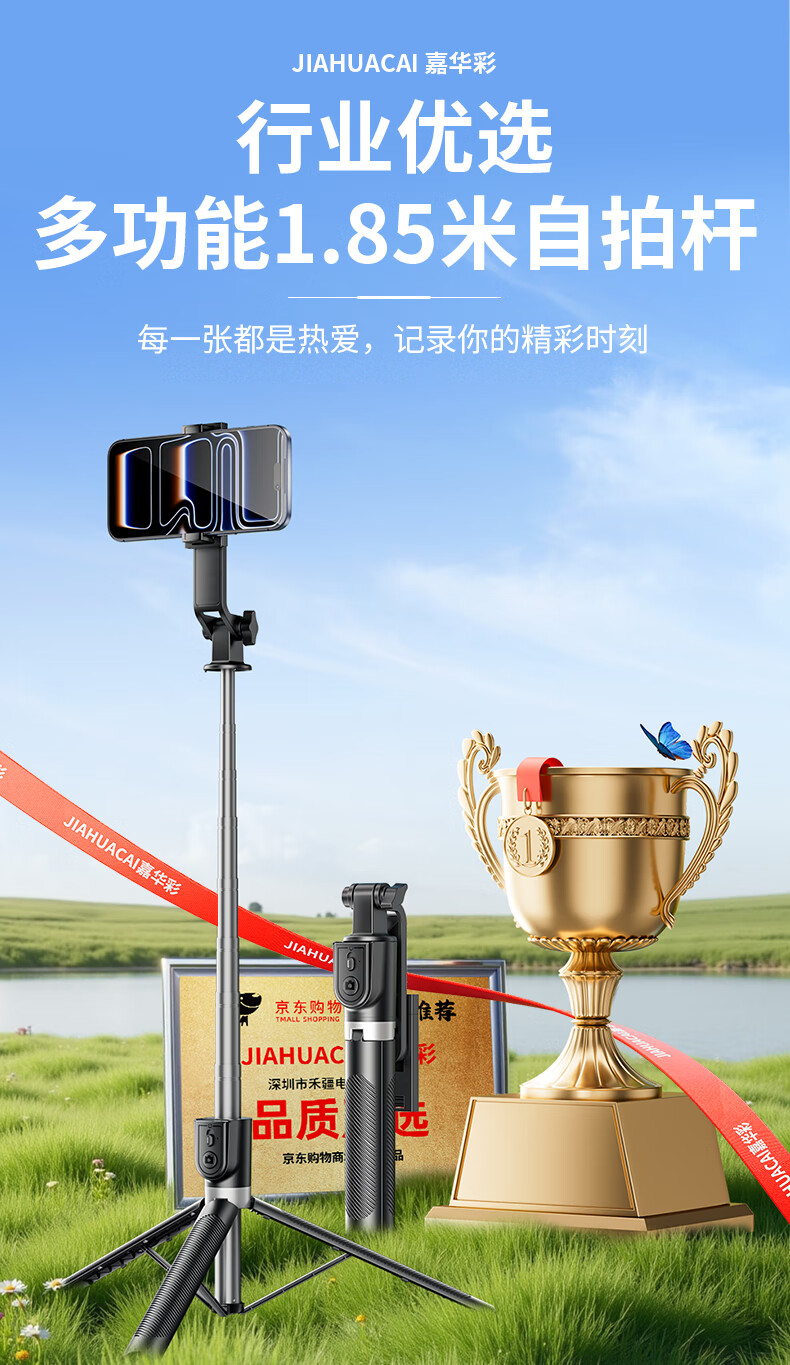嘉华彩【1.85米全景】自拍杆三脚架手机支架伸缩旅游便携360度旋转全自动多功能户外拍照拍摄落地直播架