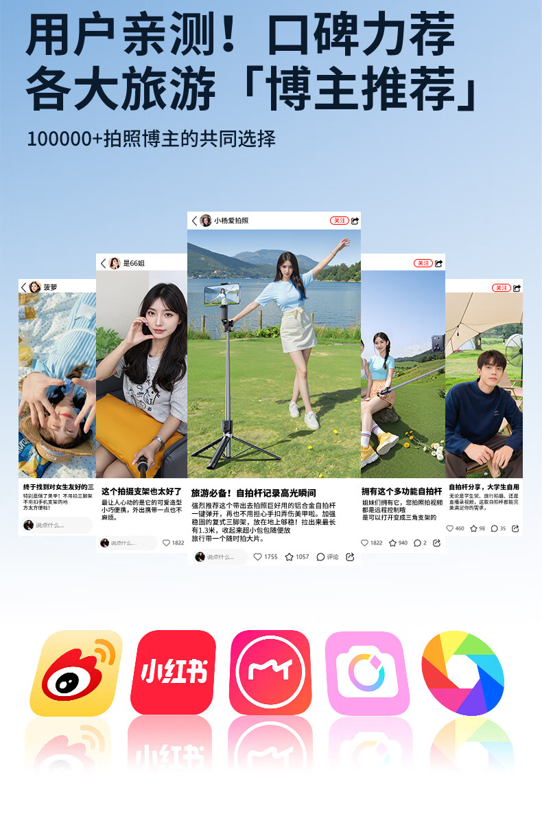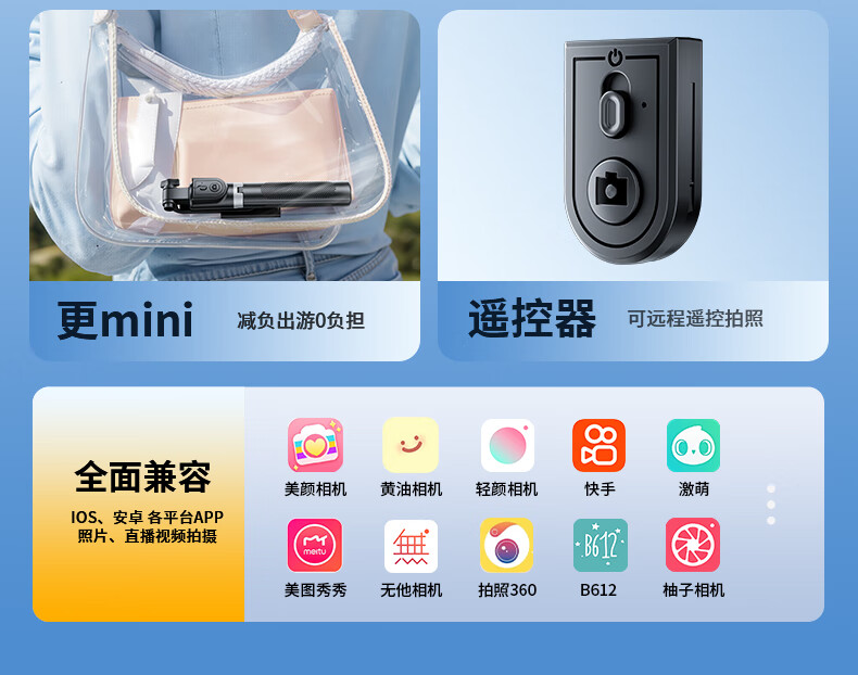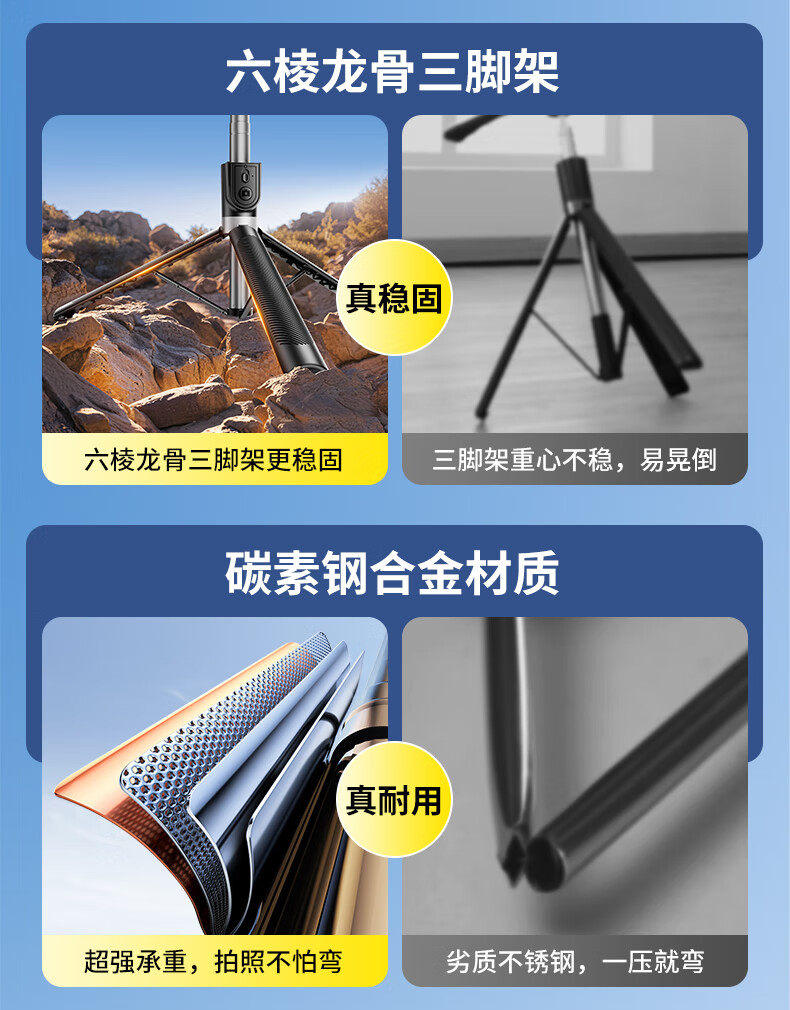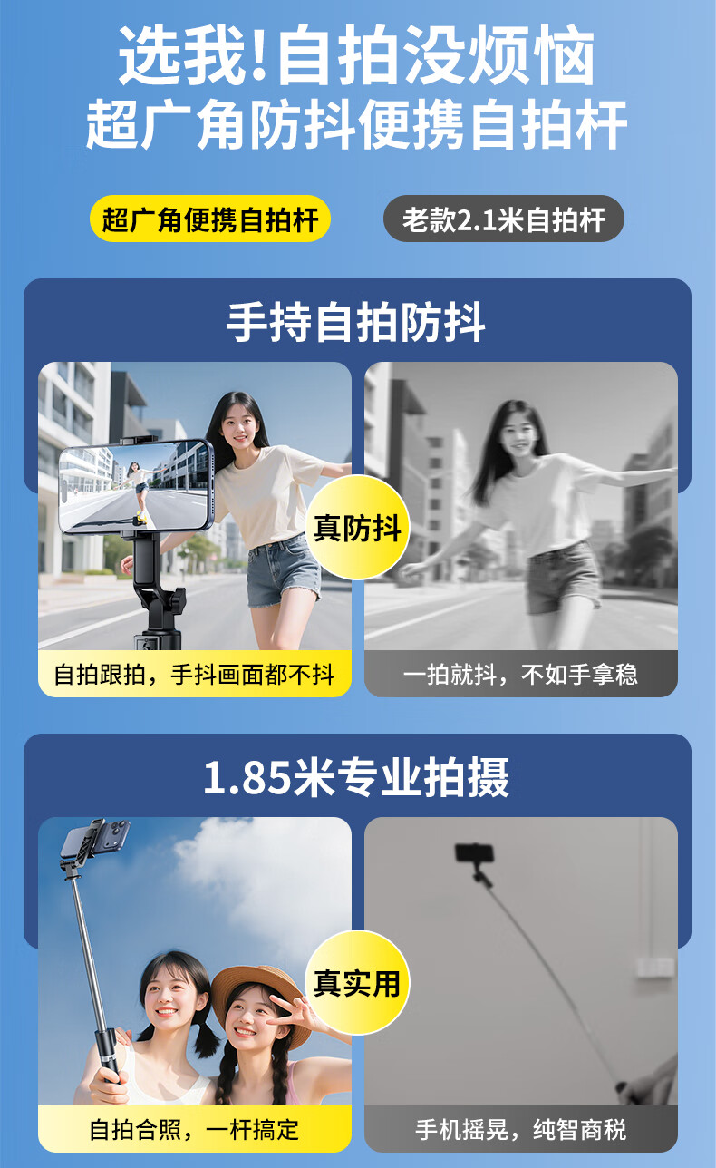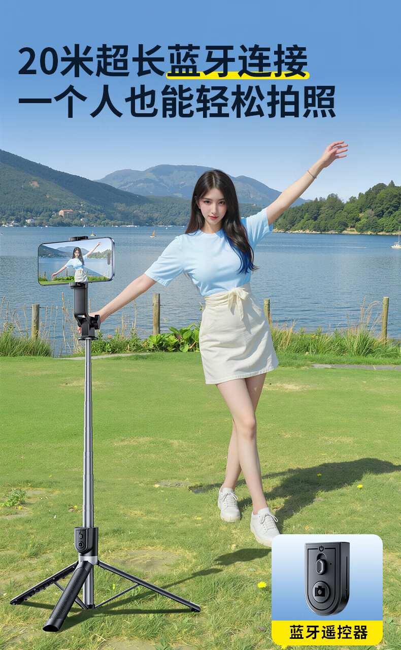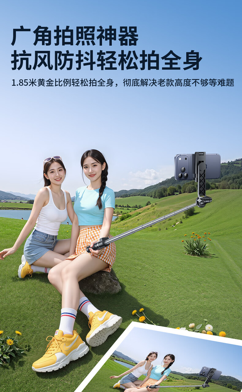 嘉华彩【1.85米全景】自拍杆三脚架手机支架伸缩旅游便携360度旋转全自动多功能户外拍照拍摄落地直播架