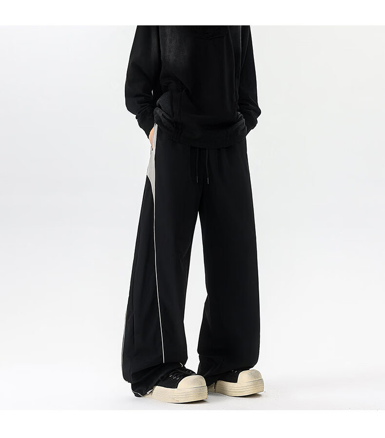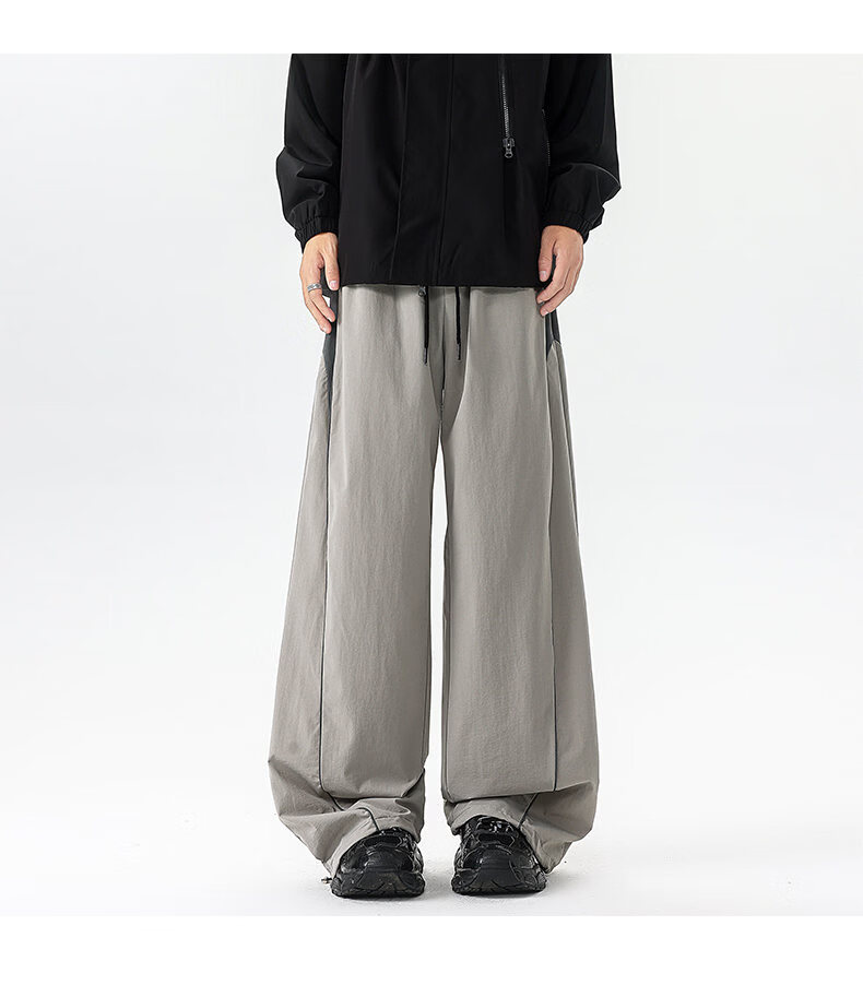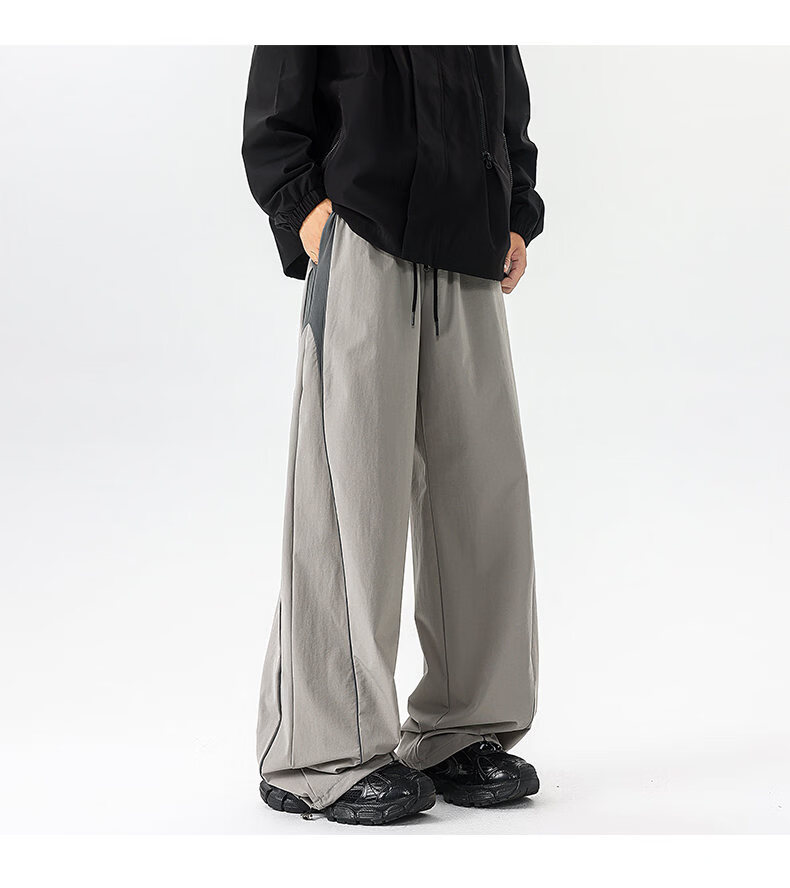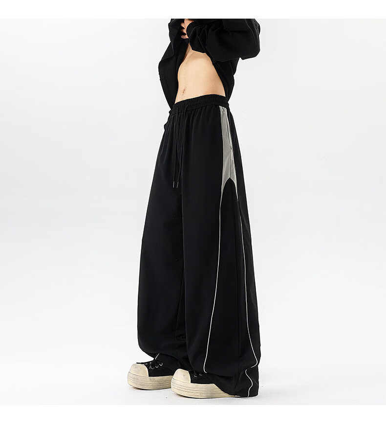 NEW OR MODE美式潮牌冲锋裤子男夏季薄款休闲运动速干长裤百搭高街显瘦阔腿裤 黑色【高品质】 M 【建议90-110斤】