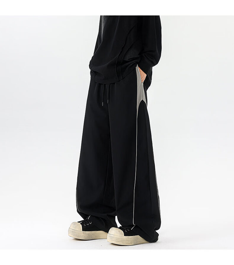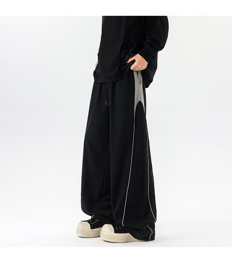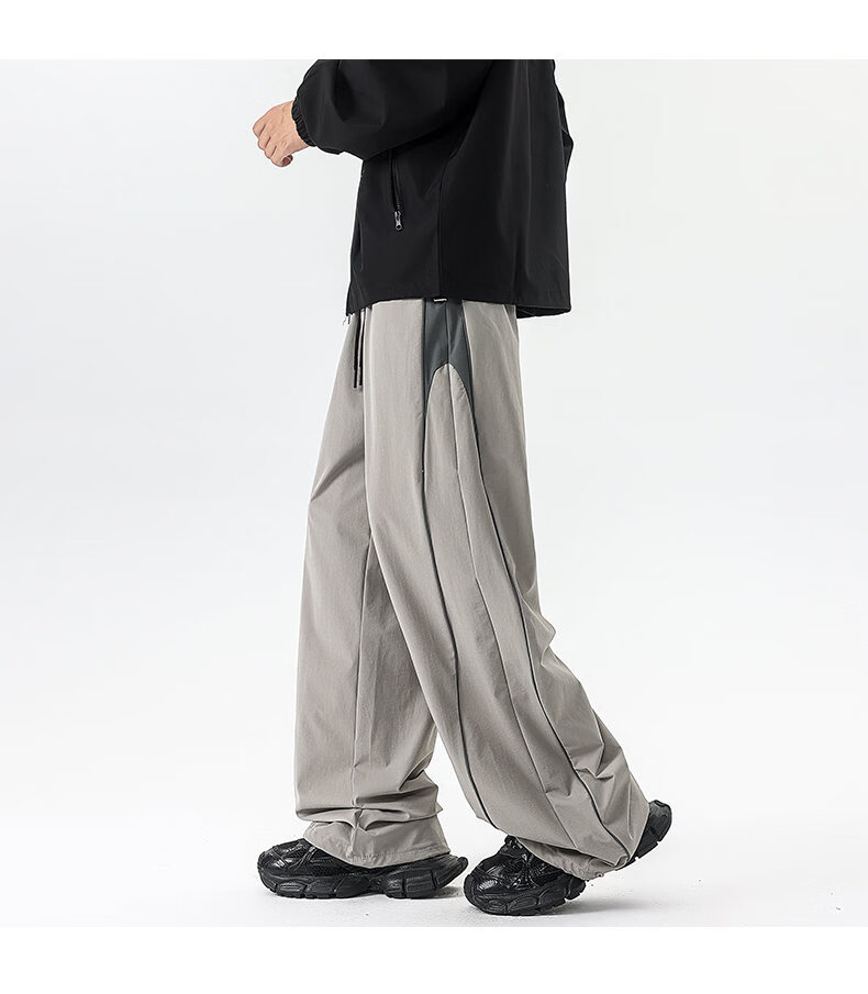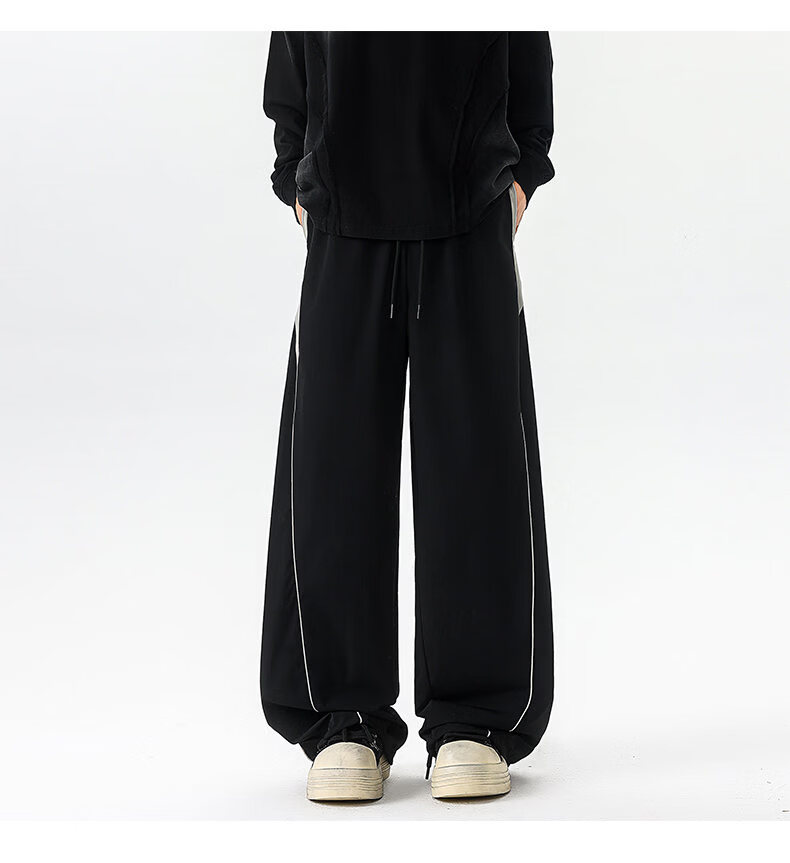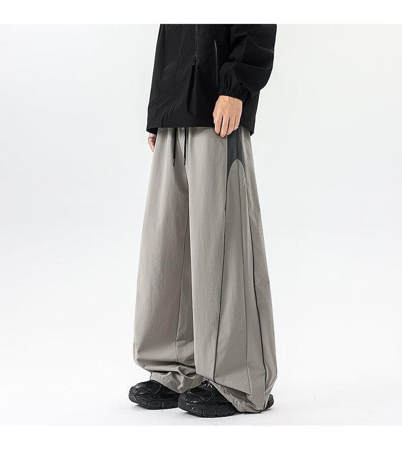 NEW OR MODE美式潮牌冲锋裤子男夏季薄款休闲运动速干长裤百搭高街显瘦阔腿裤 黑色【高品质】 M 【建议90-110斤】