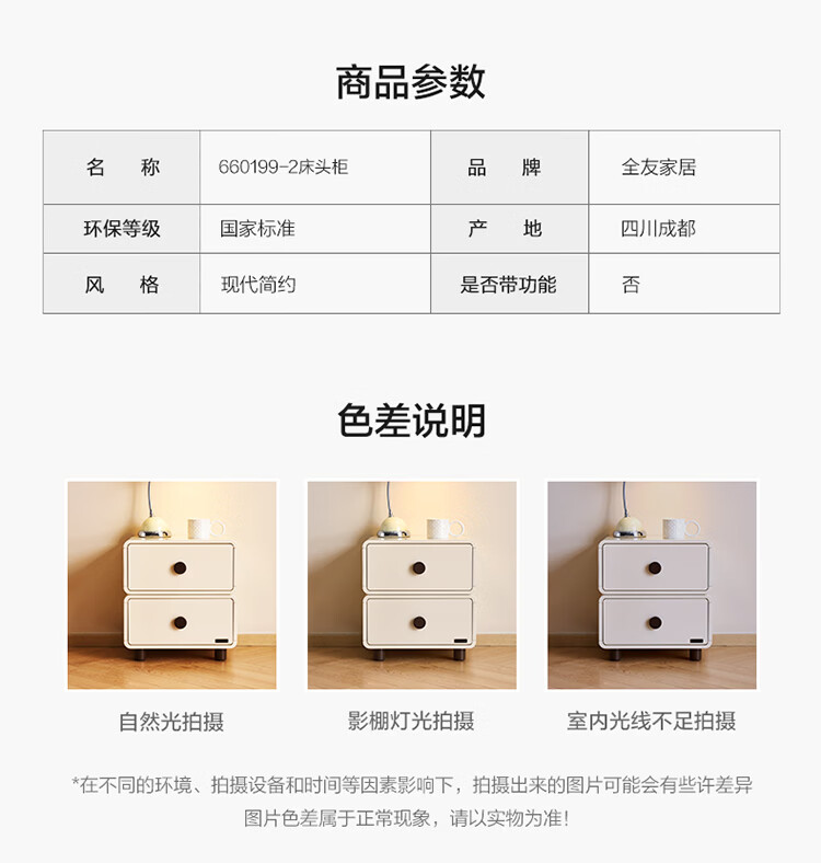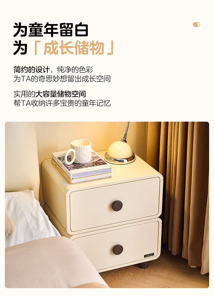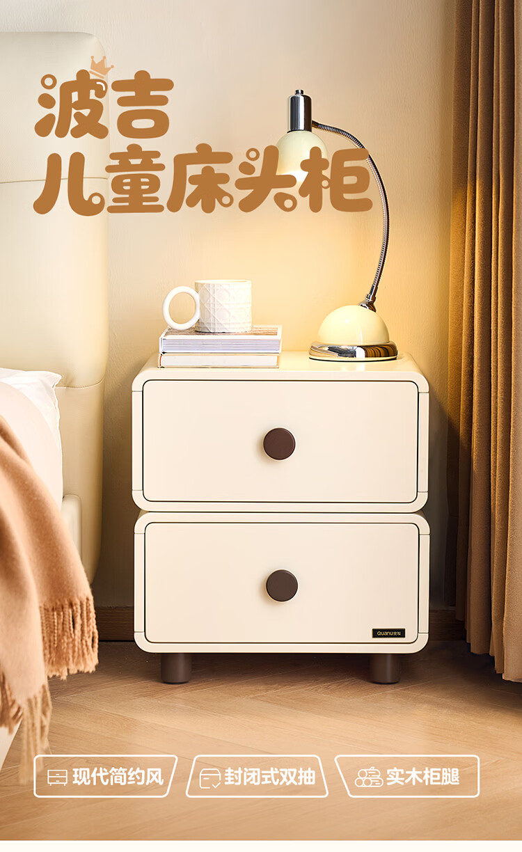 全友家居现代简约卧室家用儿童房床头柜2026新款小型床边收纳置物柜子 【米白色】儿童床头柜