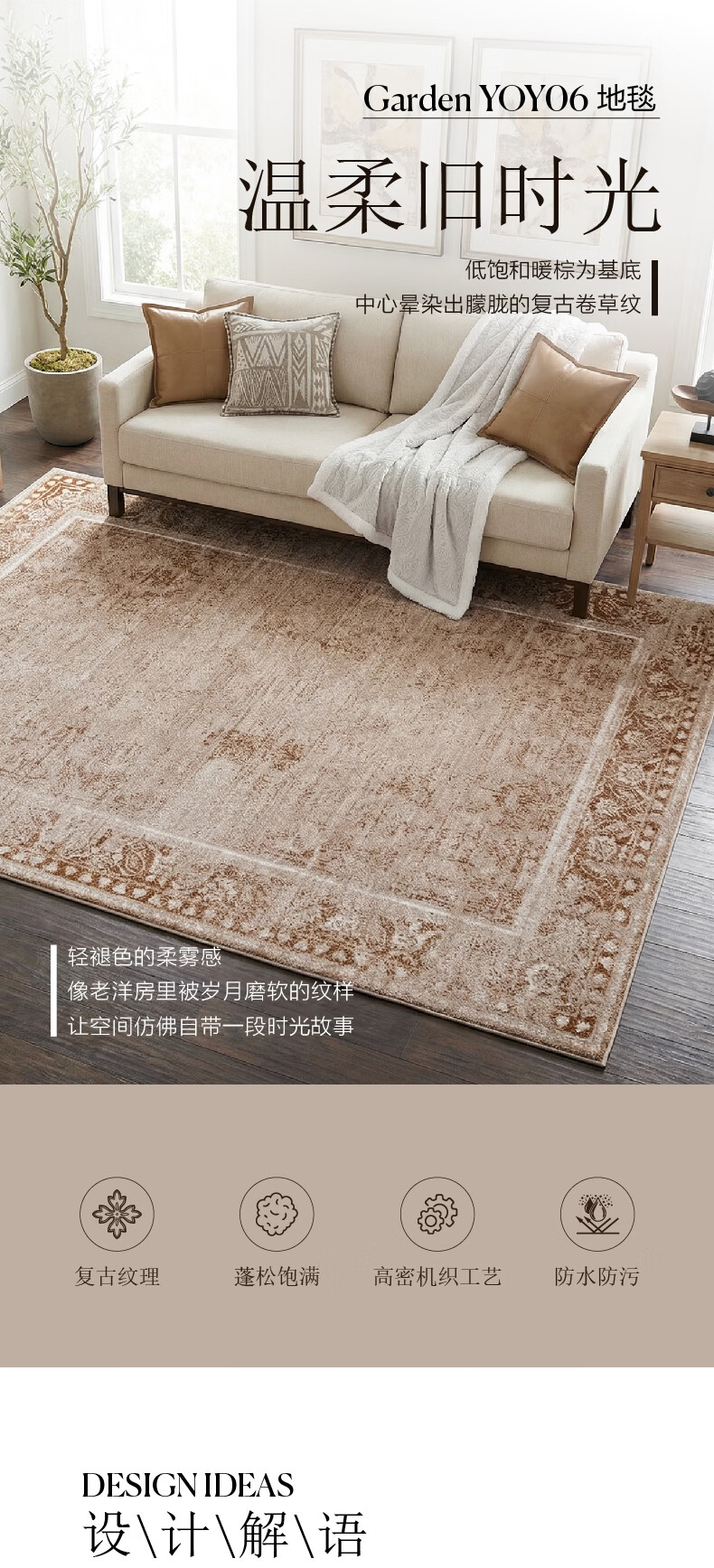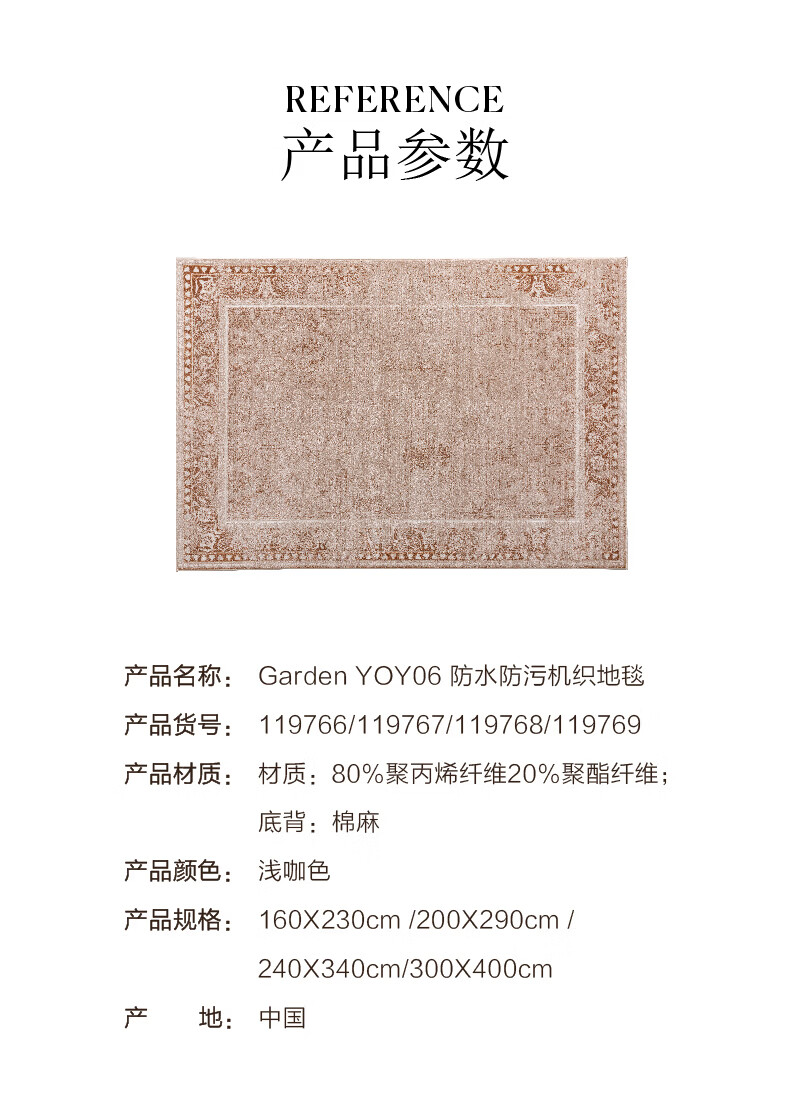Harbor House美式居家客厅沙发地毯防水防污机织卧室书房地毯免洗免打理 Garden YOY06-地毯 230cm*160cm 1件 -119766