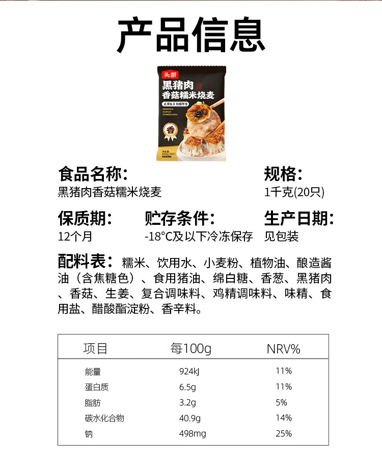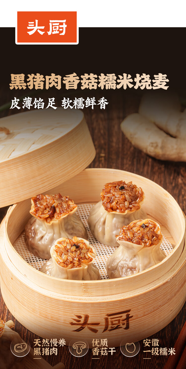头厨黑猪肉香菇糯米烧麦1kg 2斤装约20个烧卖开学季早餐食品半成品