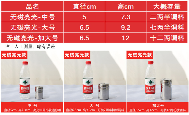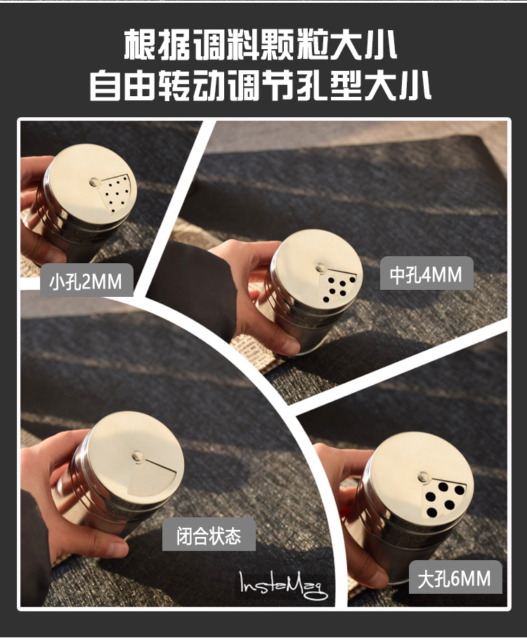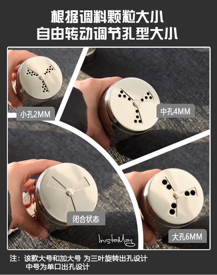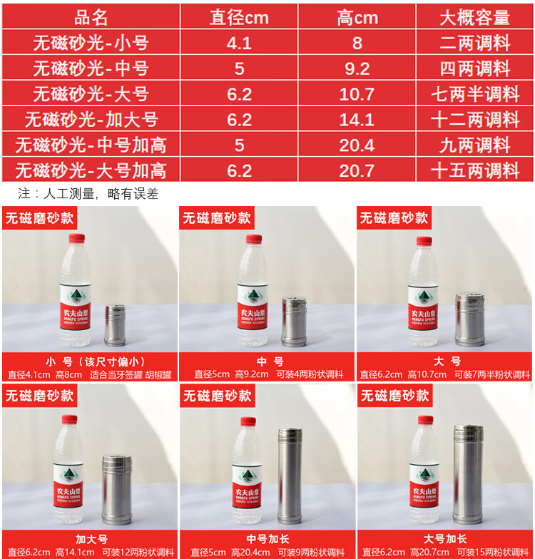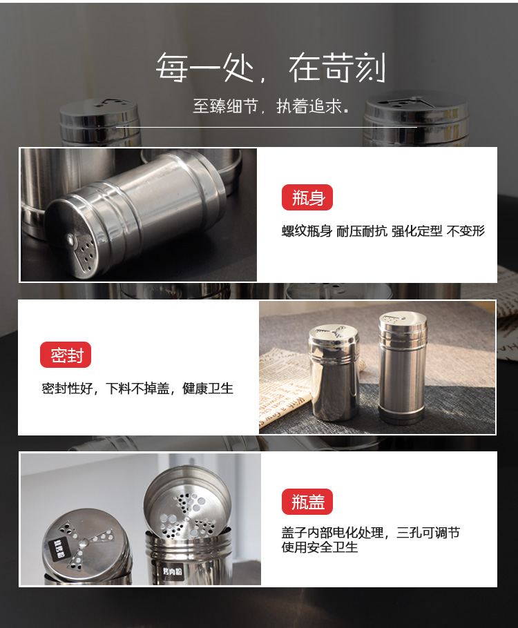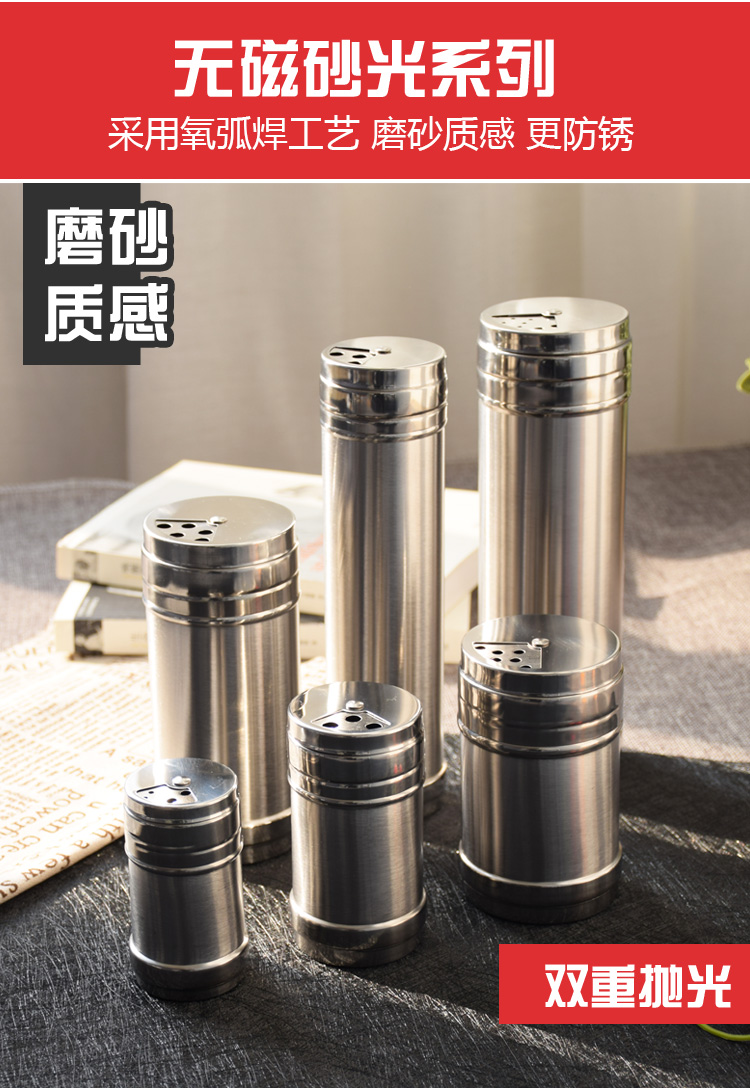 调料罐子不锈钢调味罐盒撒料撒粉芝麻佐料厨房烧烤胡椒盐罐调料瓶淘样儿淘样儿 单出口-磨砂款【加大号】 【三种大小孔径】