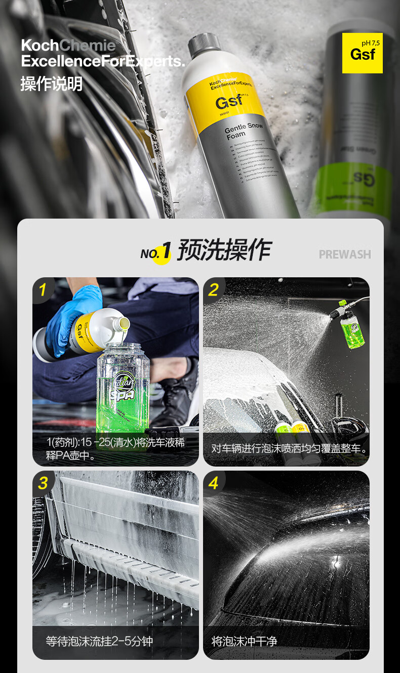 Detail Lab雪樱桃Gsf高泡沫洗车液Gs汽车预洗浓缩预洗PA强力去污考赫化学 Gsf雪樱桃高泡洗车液 1L