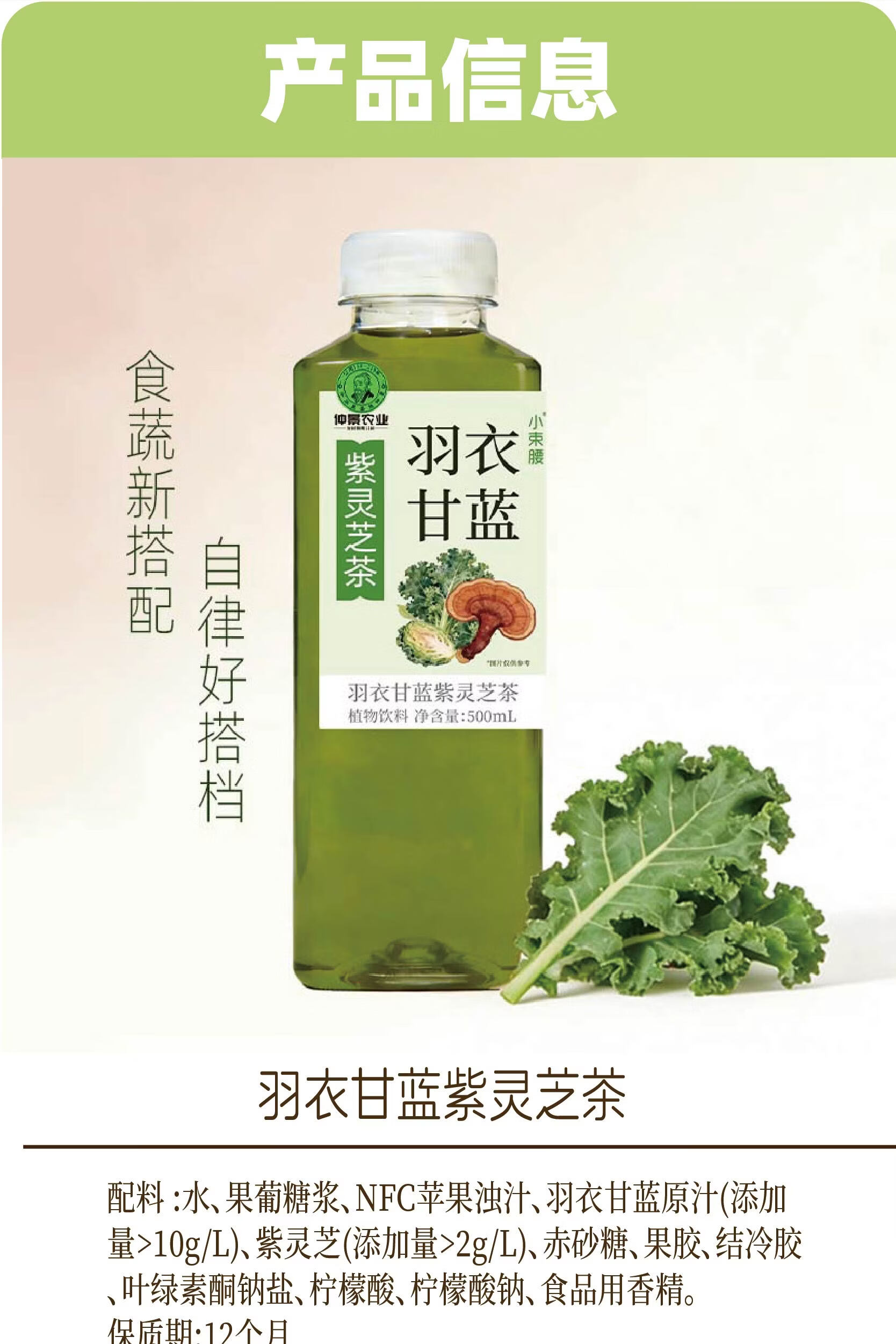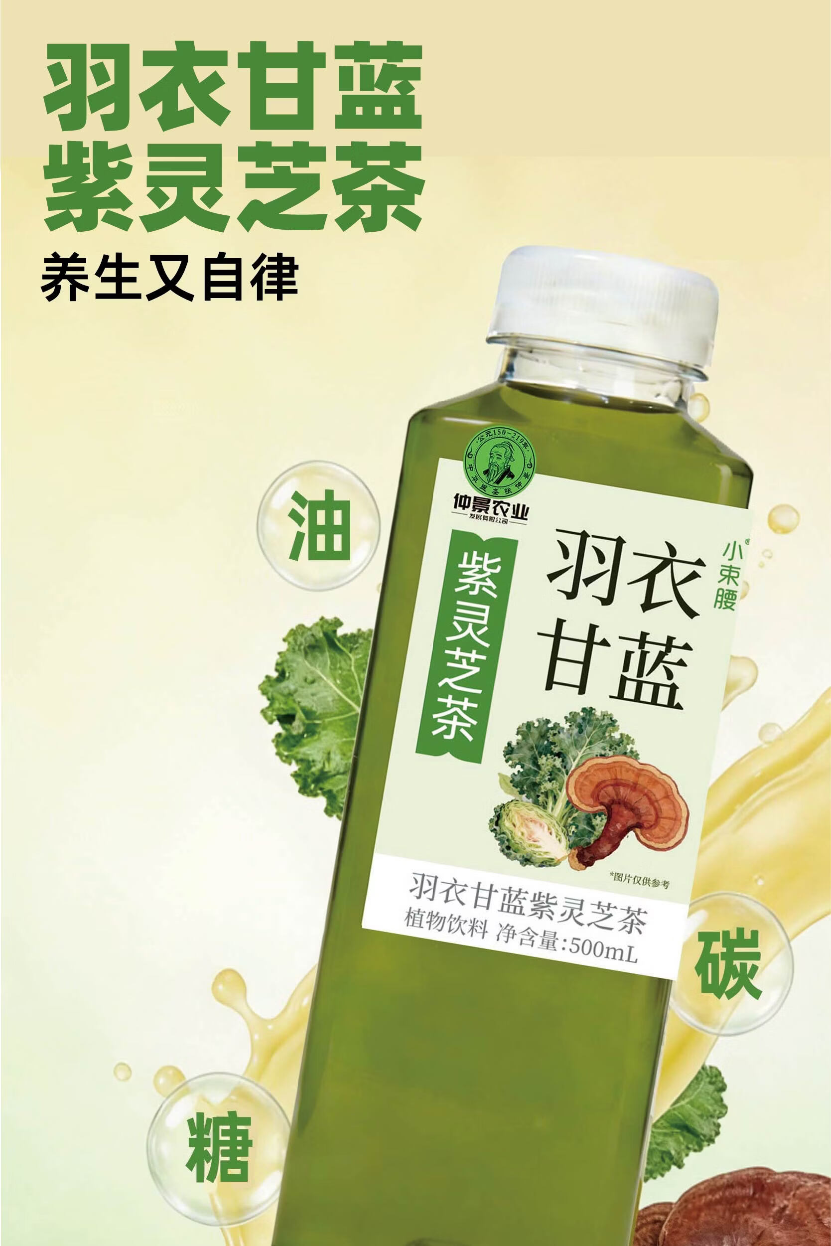 仲景小束腰羽衣甘蓝果蔬汁紫灵芝茶植物饮料500ml便携装 羽衣甘蓝 5瓶